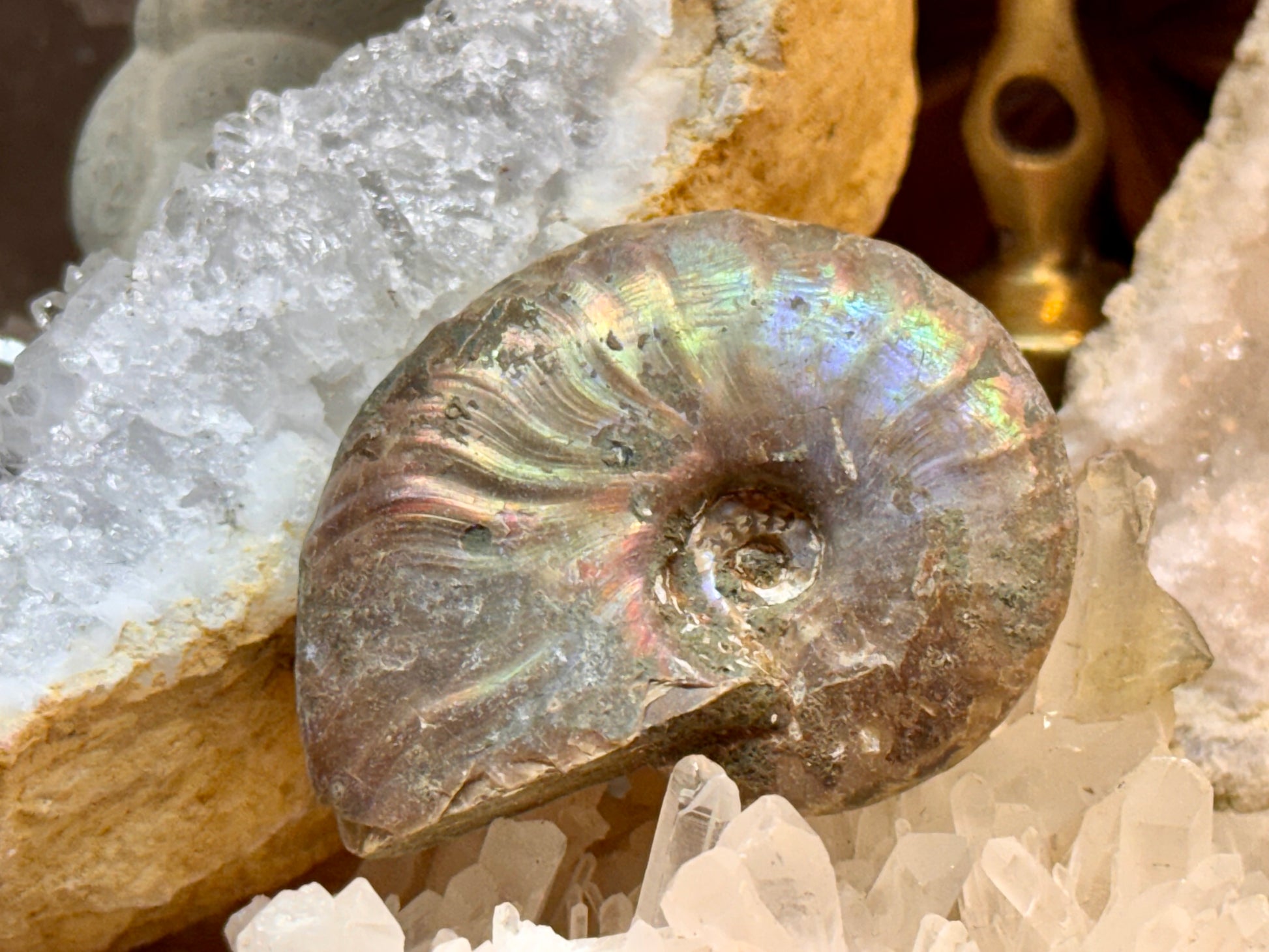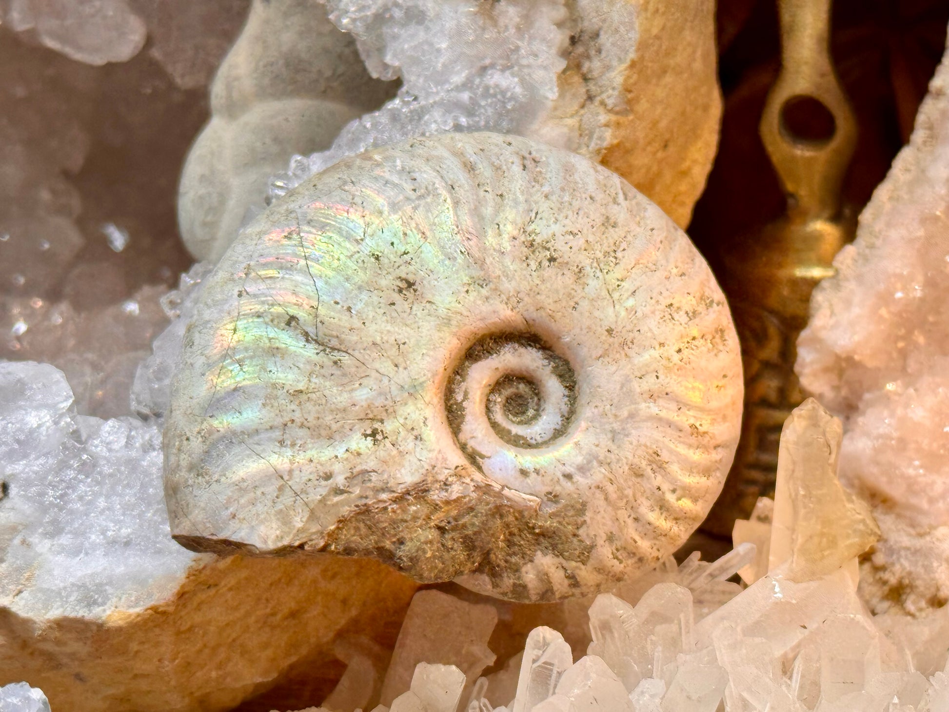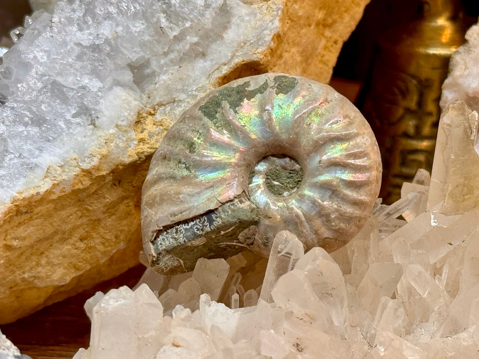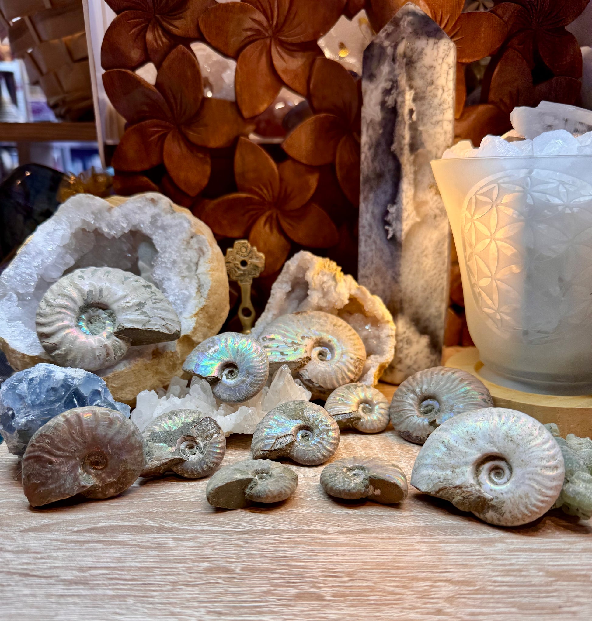 L’ammonite opalisée vous aidera à atteindre des états méditatifs très profonds. Dans le domaine de la lithothérapie, si vous utilisez ce fossile régulièrement, il améliorera également le souvenir de vos rêves et vous donnera la possibilité de faire des rêves plus prophétiques.