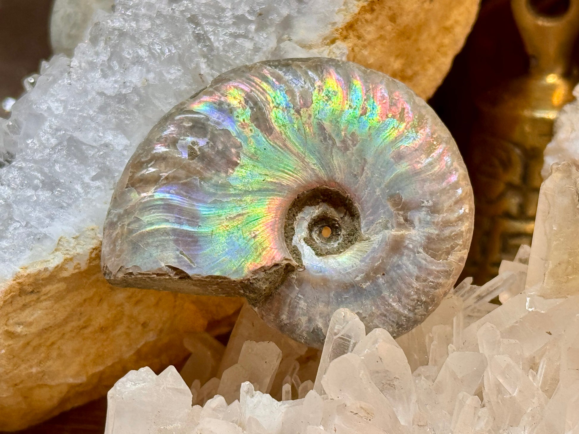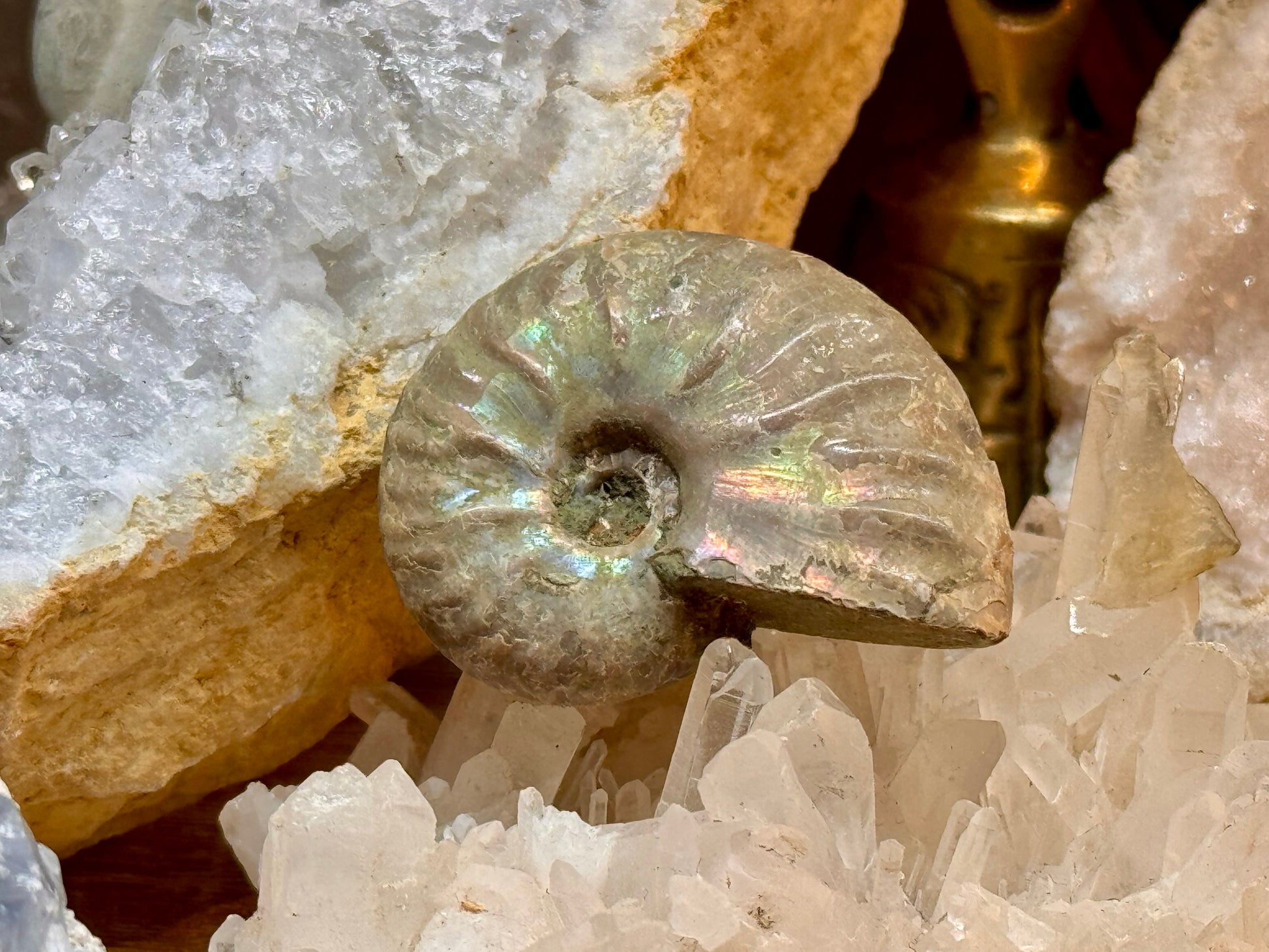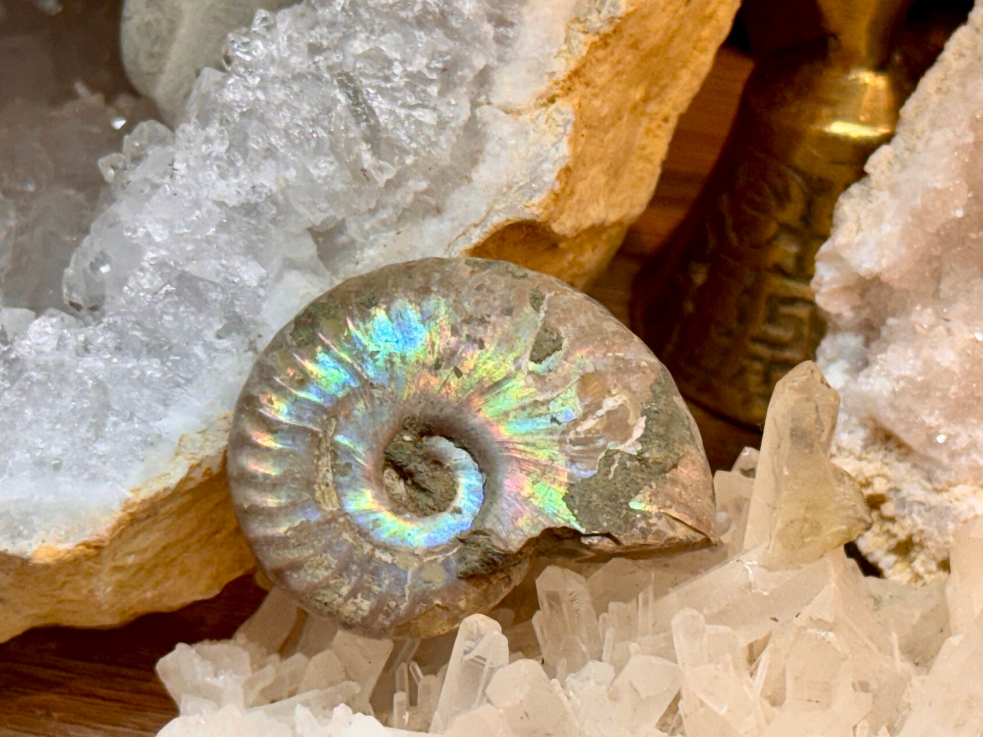 L’ammonite opalisée vous aidera à atteindre des états méditatifs très profonds. Dans le domaine de la lithothérapie, si vous utilisez ce fossile régulièrement, il améliorera également le souvenir de vos rêves et vous donnera la possibilité de faire des rêves plus prophétiques.