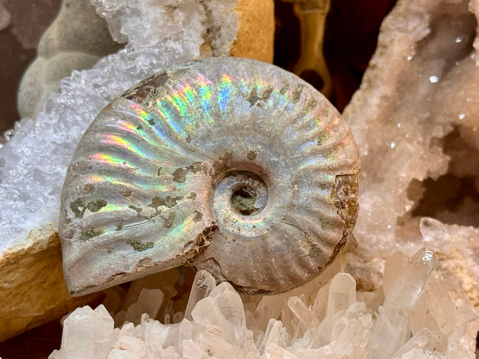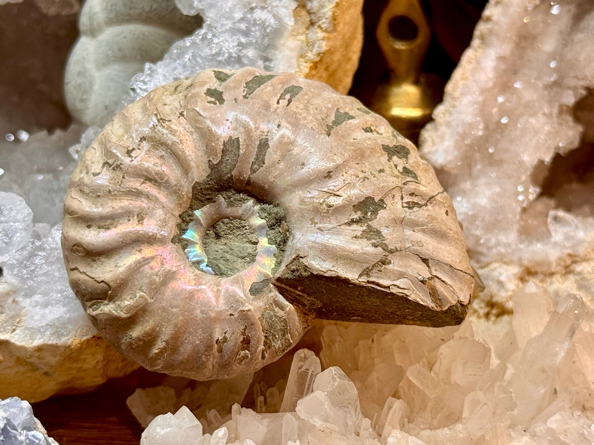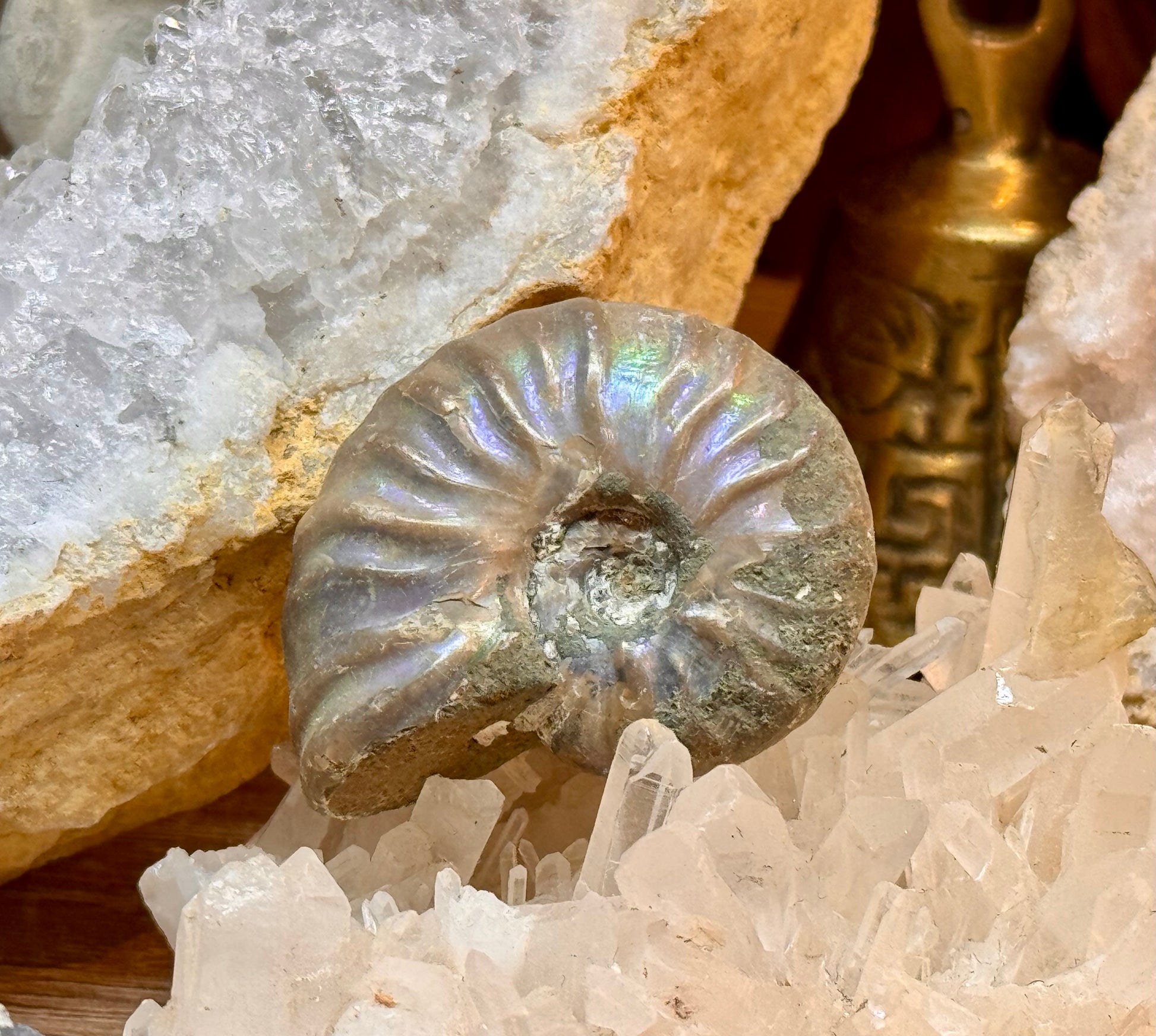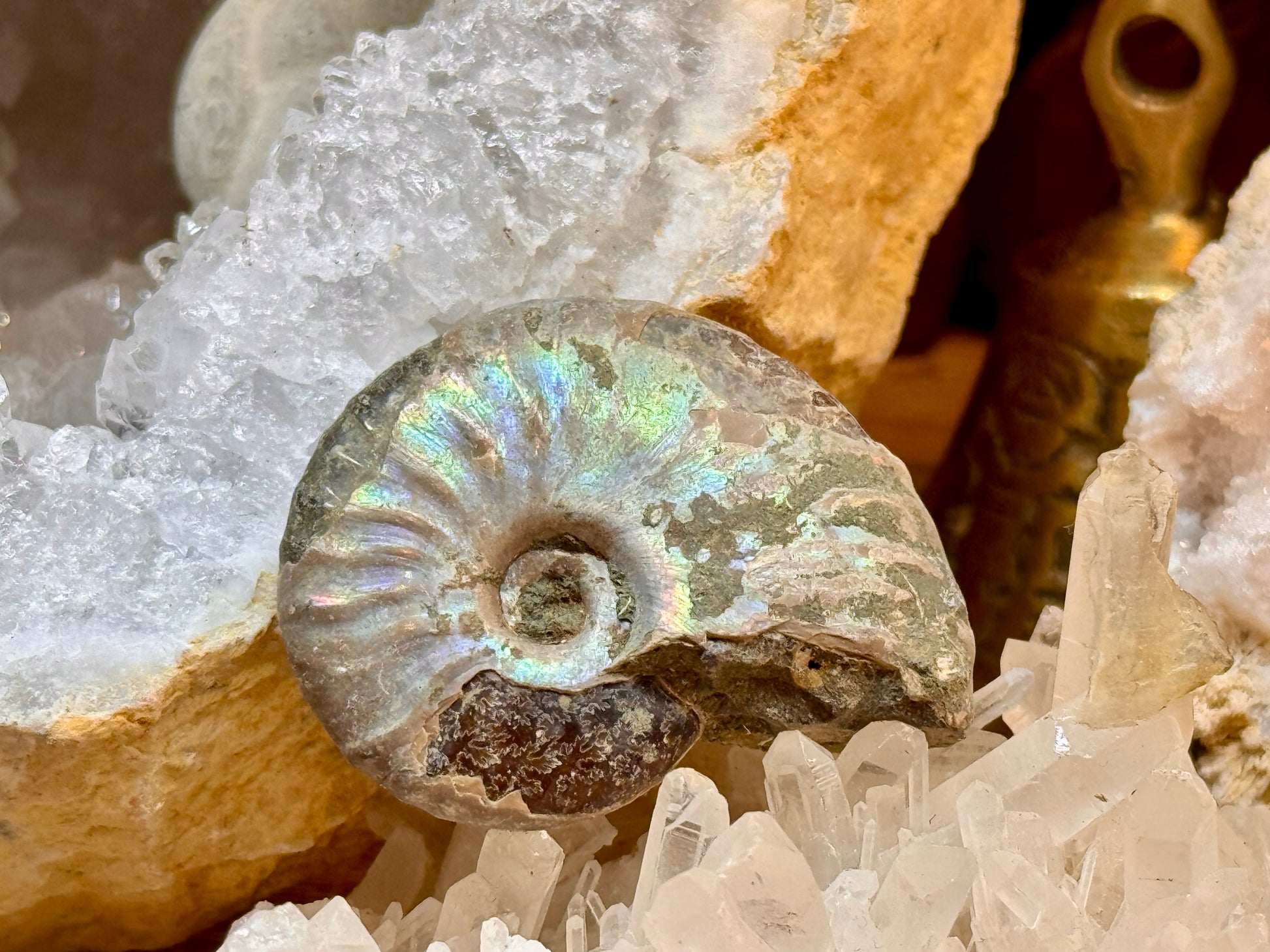 L’ammonite opalisée vous aidera à atteindre des états méditatifs très profonds. Dans le domaine de la lithothérapie, si vous utilisez ce fossile régulièrement, il améliorera également le souvenir de vos rêves et vous donnera la possibilité de faire des rêves plus prophétiques.