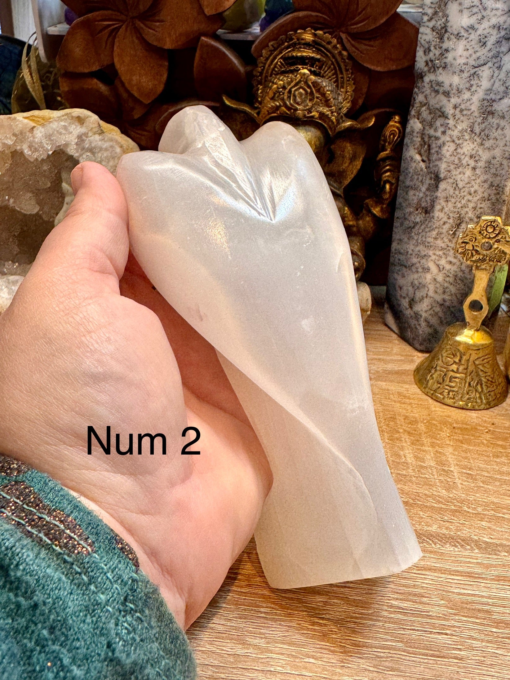 Plan spirituel : Une sélénite installée dans une maison apporte une ambiance sereine. Nettoie l’agitation et la colère dans un lieu. Placée à proximité d’un écran de télévision ou d’ordinateur elle absorbe la négativité. Elle aide à instaurer une sérénité intérieure propice à l’élévation de l’esprit et à la méditation.