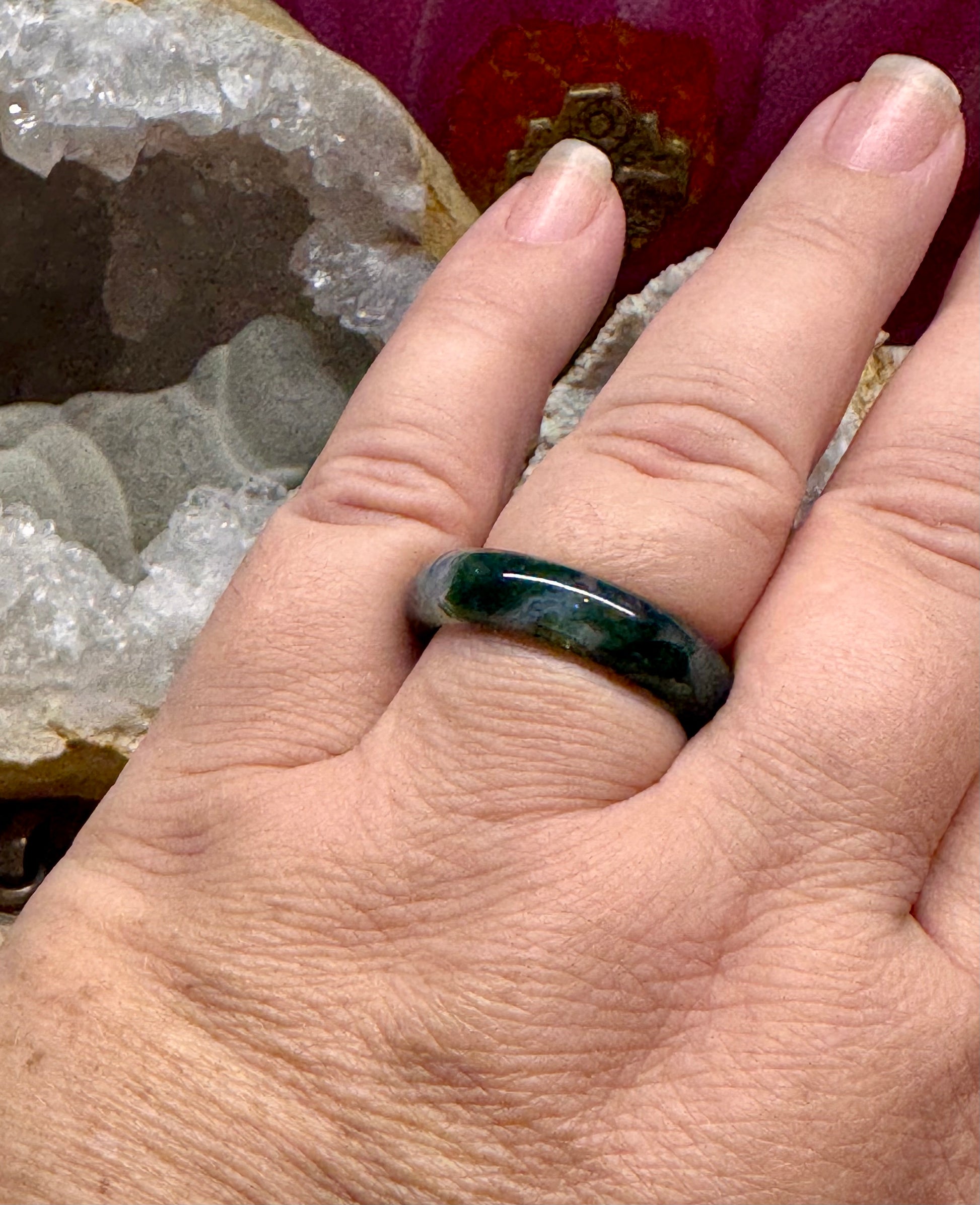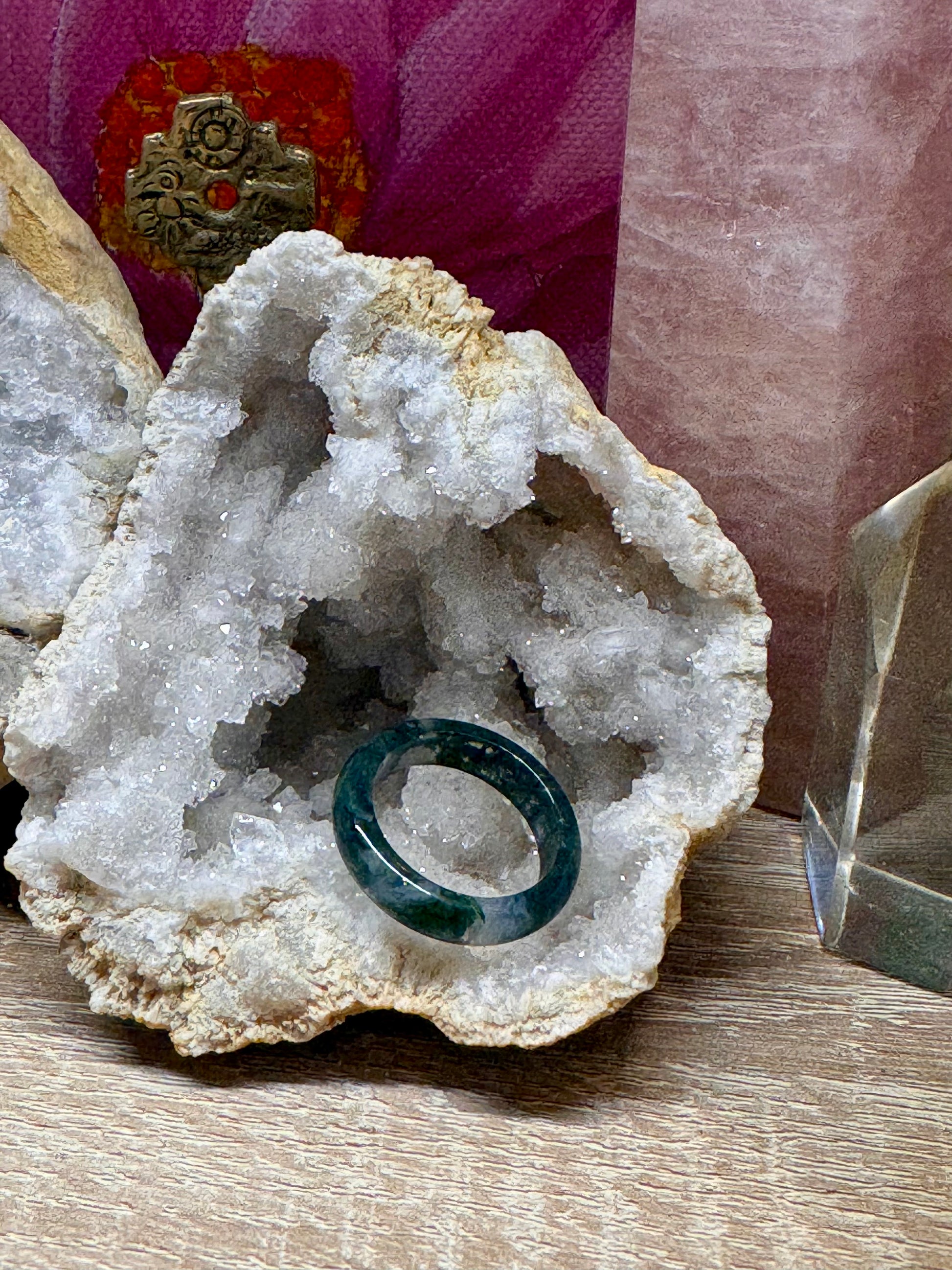 Plan spirituel : L’agate mousse est une pierre naturelle qui nous aide à développer notre 6ème sens, elle apporte calme et détente, renforce notre amour de la nature et développe la communication avec notre Terre-Mère. Elle nous permet de nous reconnecter en ses forces, mais aussi aux arbres, à l’eau.