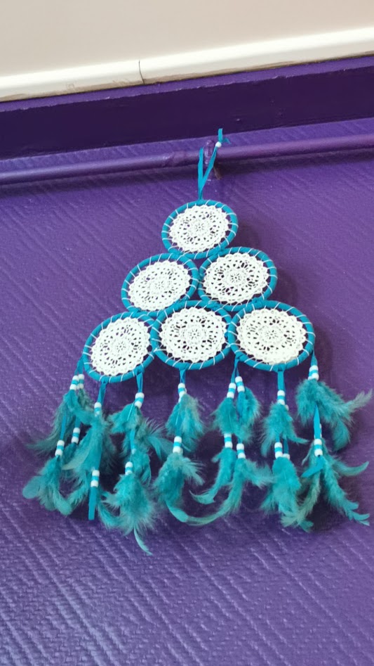 La couleur turquoise de cet attrape-rêve noir attire le regard, que ce soit dans le détail ou en arrière-plan dans un environnement rempli.