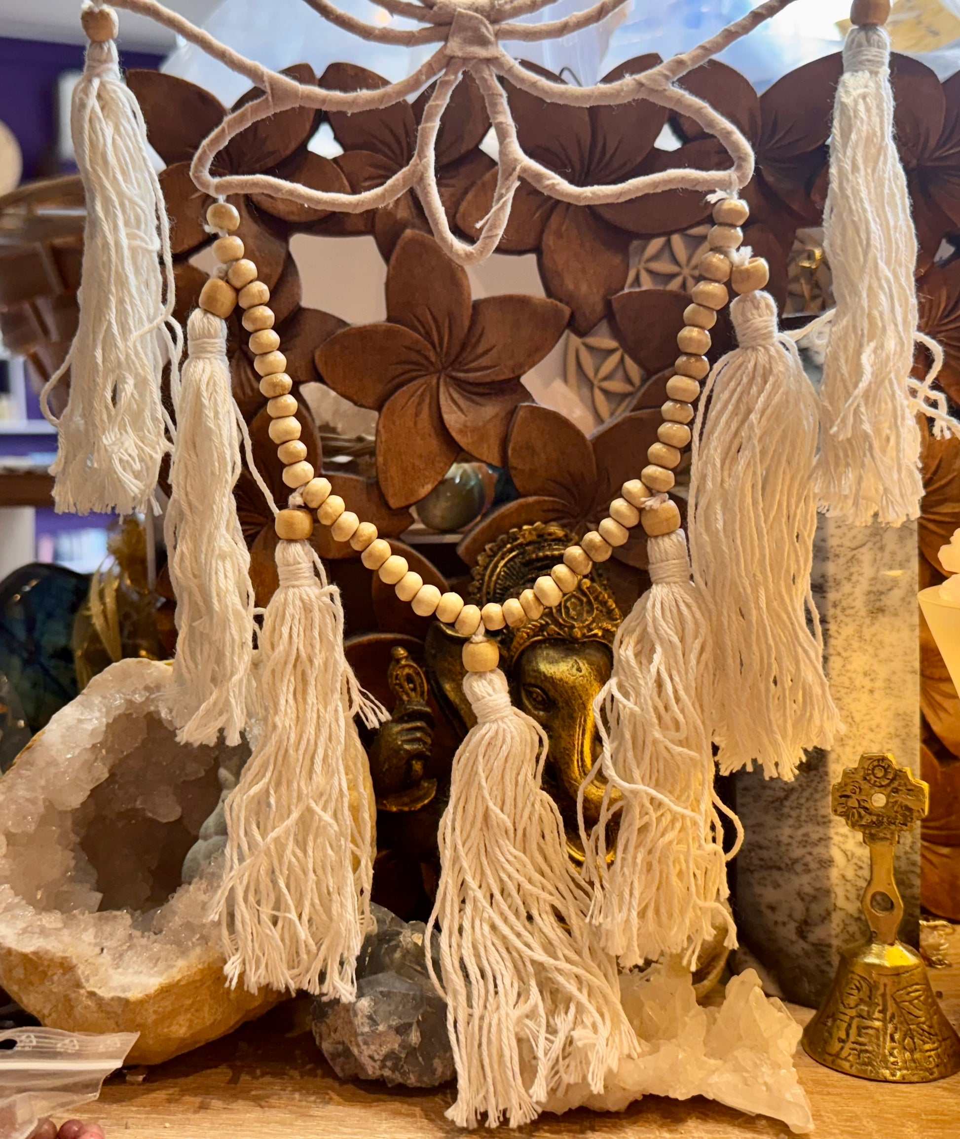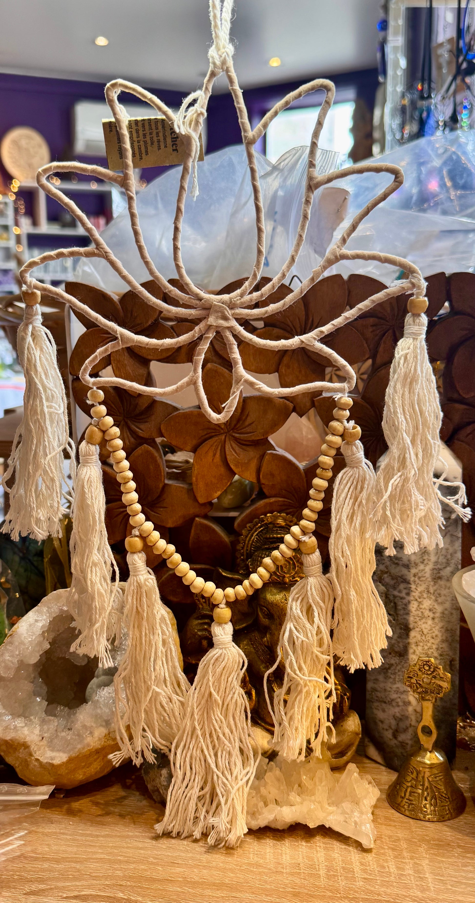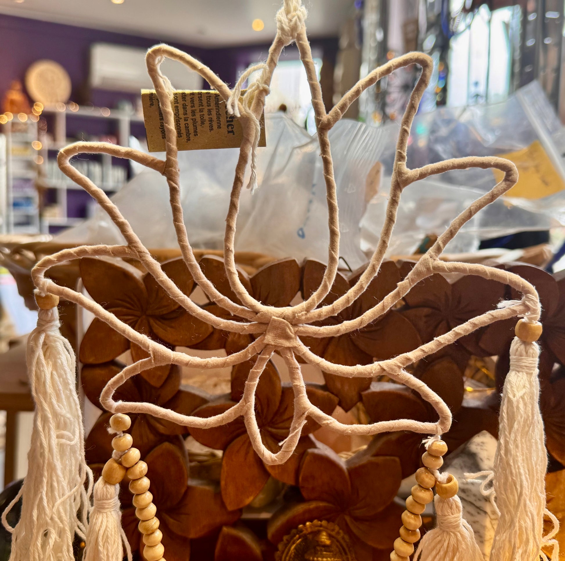 Les perles sont en bois naturel, attrape-rêves fabriqué à partir de corde macramé en coton.