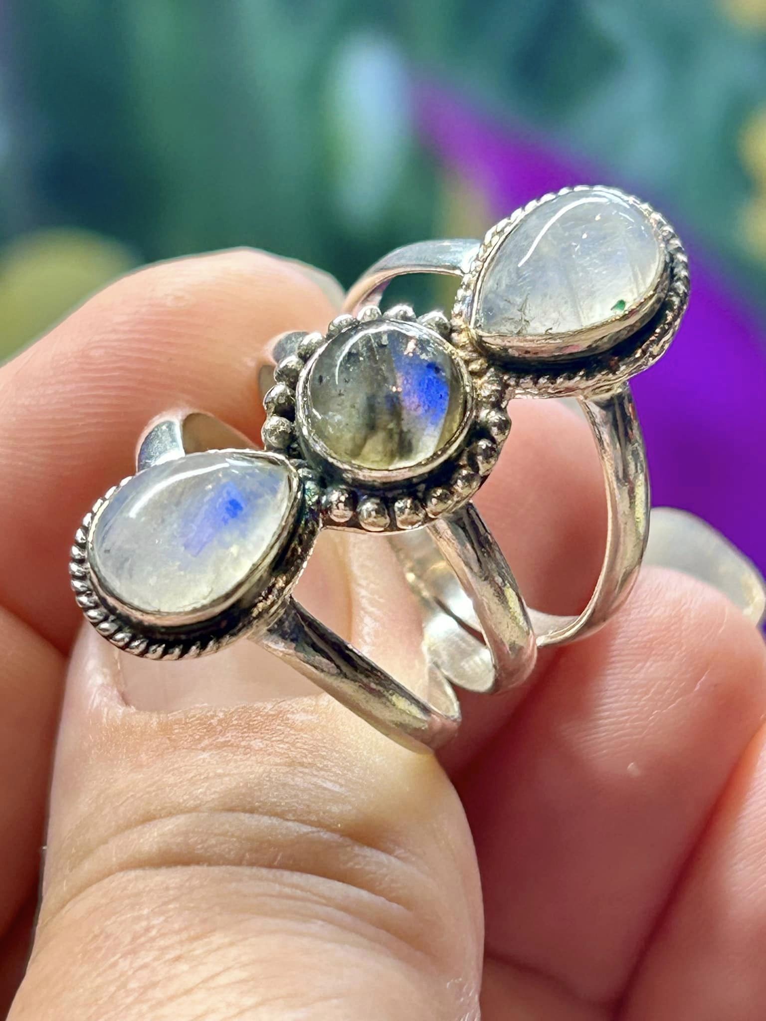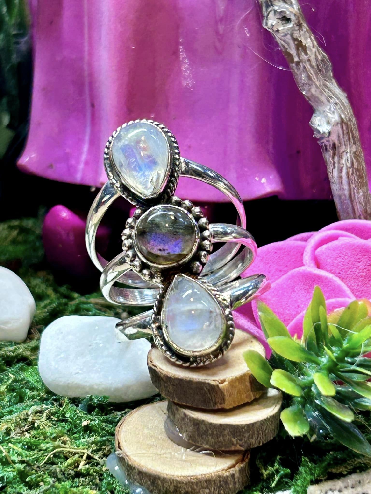 Bague 3 pierres - Pierre de lune et Labradorite