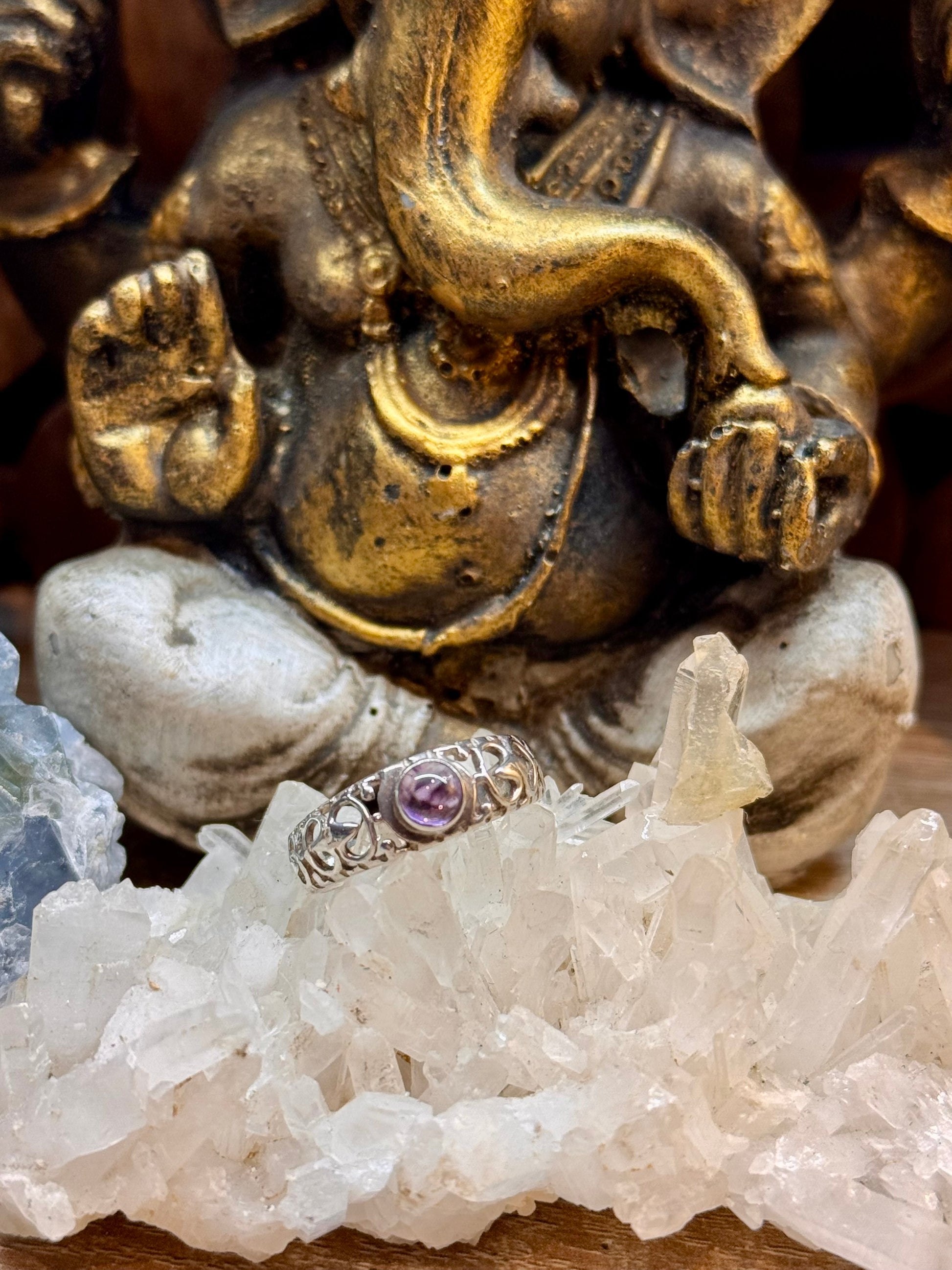 L’Améthyste, de son étymologie est la pierre qui préserve de l’ivresse, mais elle agit et nous protège de tous les excès (alcool, tabac, drogues, mais aussi dépendances psychologiques, obsessionelles, sexuelles). C’est une pierre qui a de nombreux bienfaits sur les problèmes d’addictions en général. Elle est un allié pour en sortir.