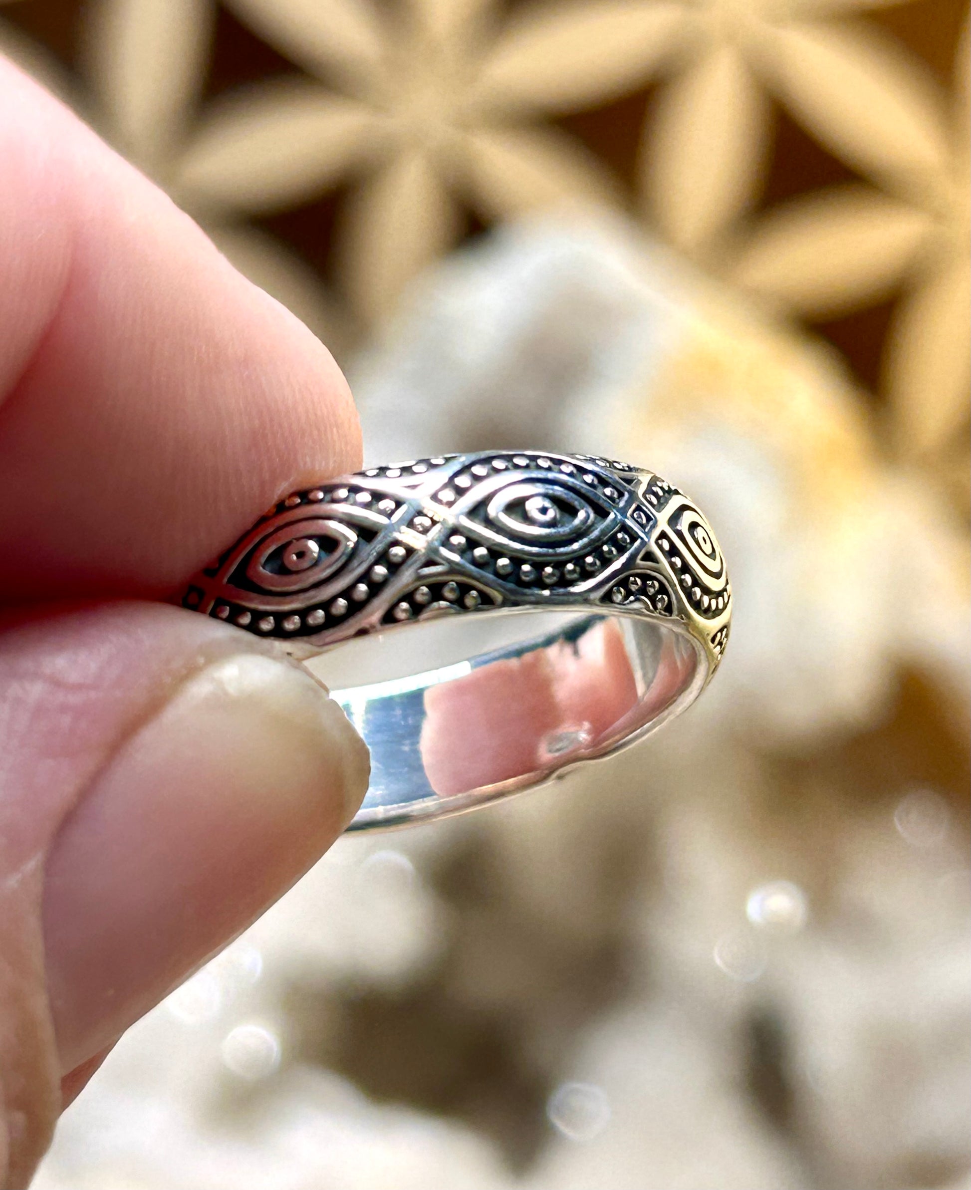 Appelé “œil d’Horus” en Egypte, ce symbole protecteur, représentant un œil mi-humain mi-faucon, représente la victoire du bien sur le mal. Il rappelle la victoire du dieu Horus, le dieu à la tête de faucon, sur son oncle Seth qui avait assassiné son père pour s’approprier le trône d’Egypte. Victoire durant laquelle il aurait perdu son œil.