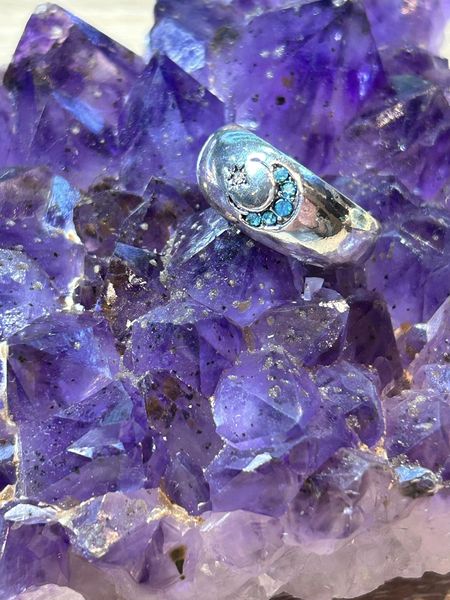 Bague en argent 925 agrémenté de pierres synthétiques bleues claires