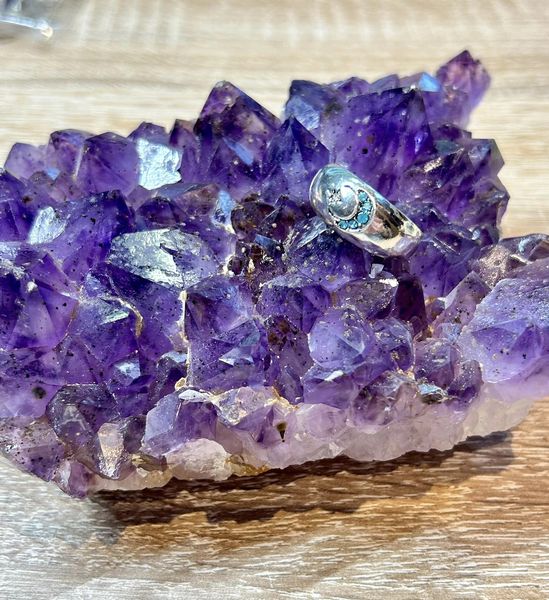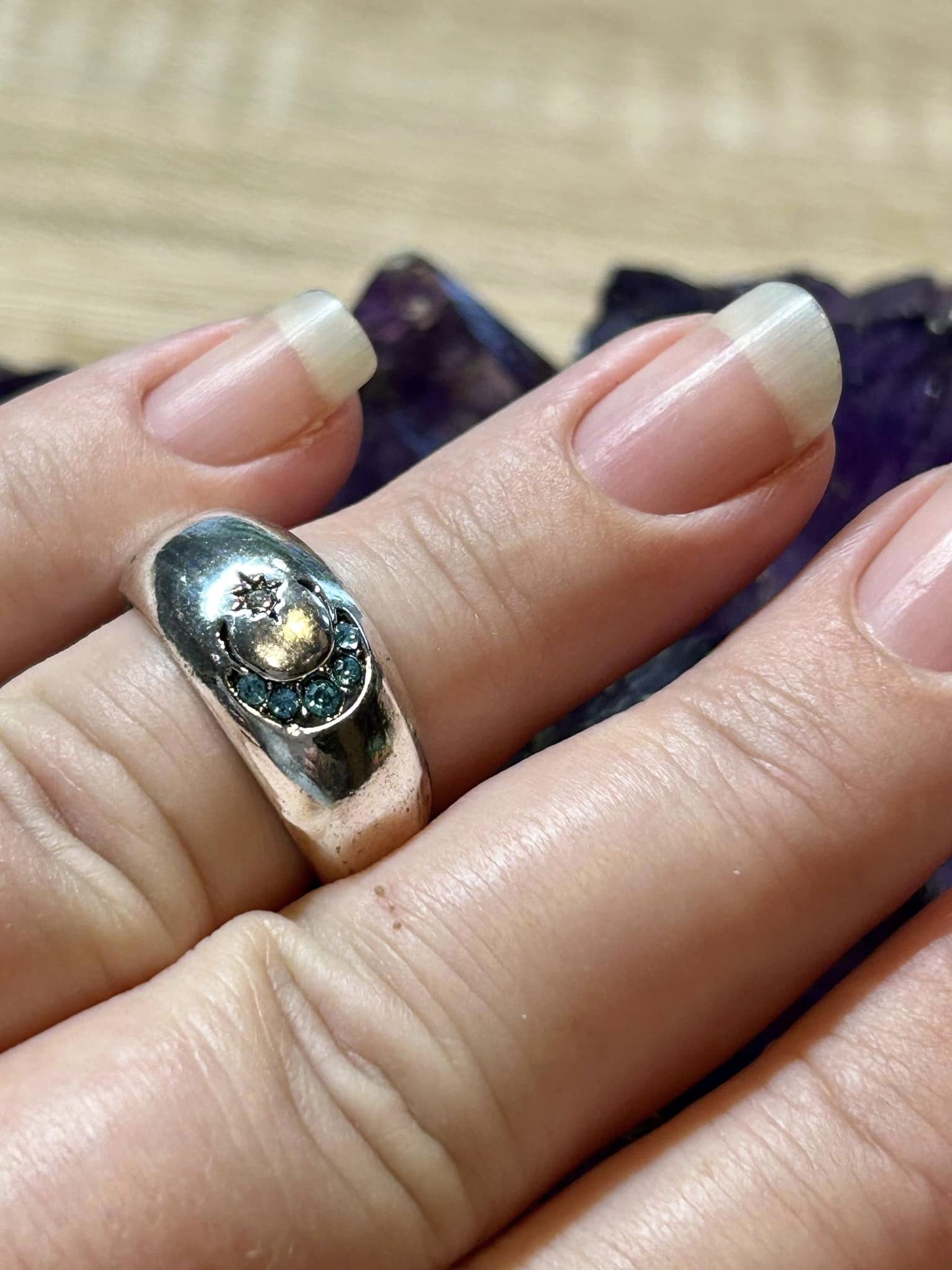 Bague en argent 925 et pierres synthétiques bleues claires.