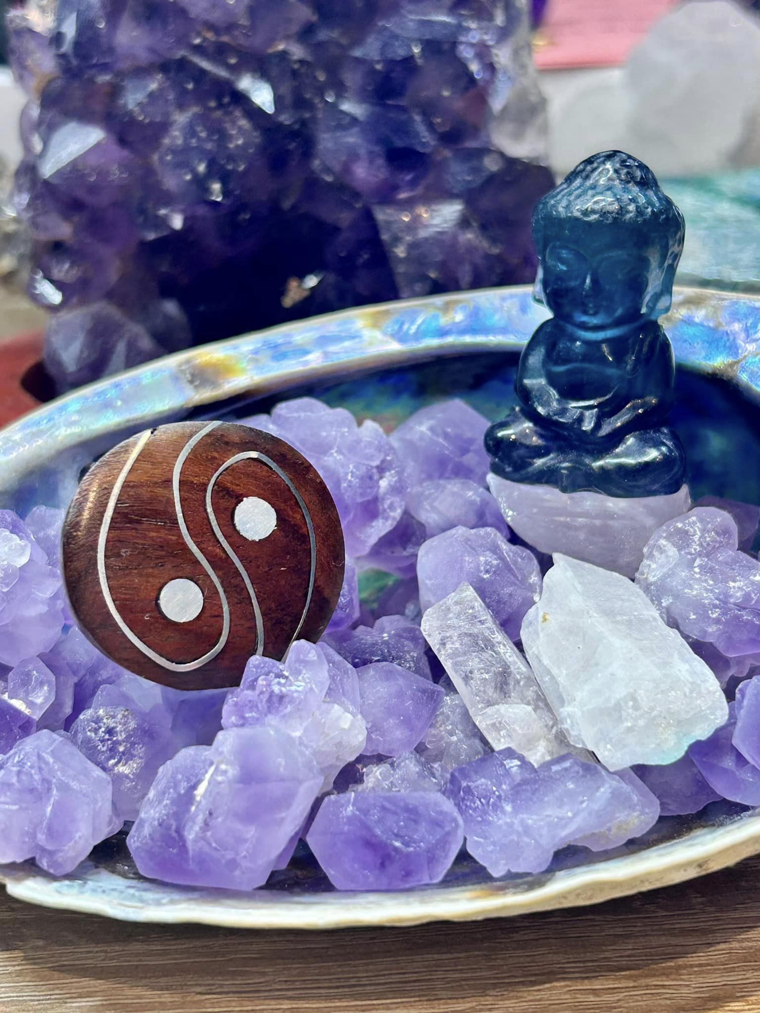 Nous avons tous en nous une part sombre mais avec un point lumineux, pour ne pas oublier que dans toute situation il y a de la Lumière aussi petite soit-elle. Mais nous avons aussi une belle part lumineuse mais dans laquelle il y a un point d’ombre, afin de nous rappeler notre nature humaine.