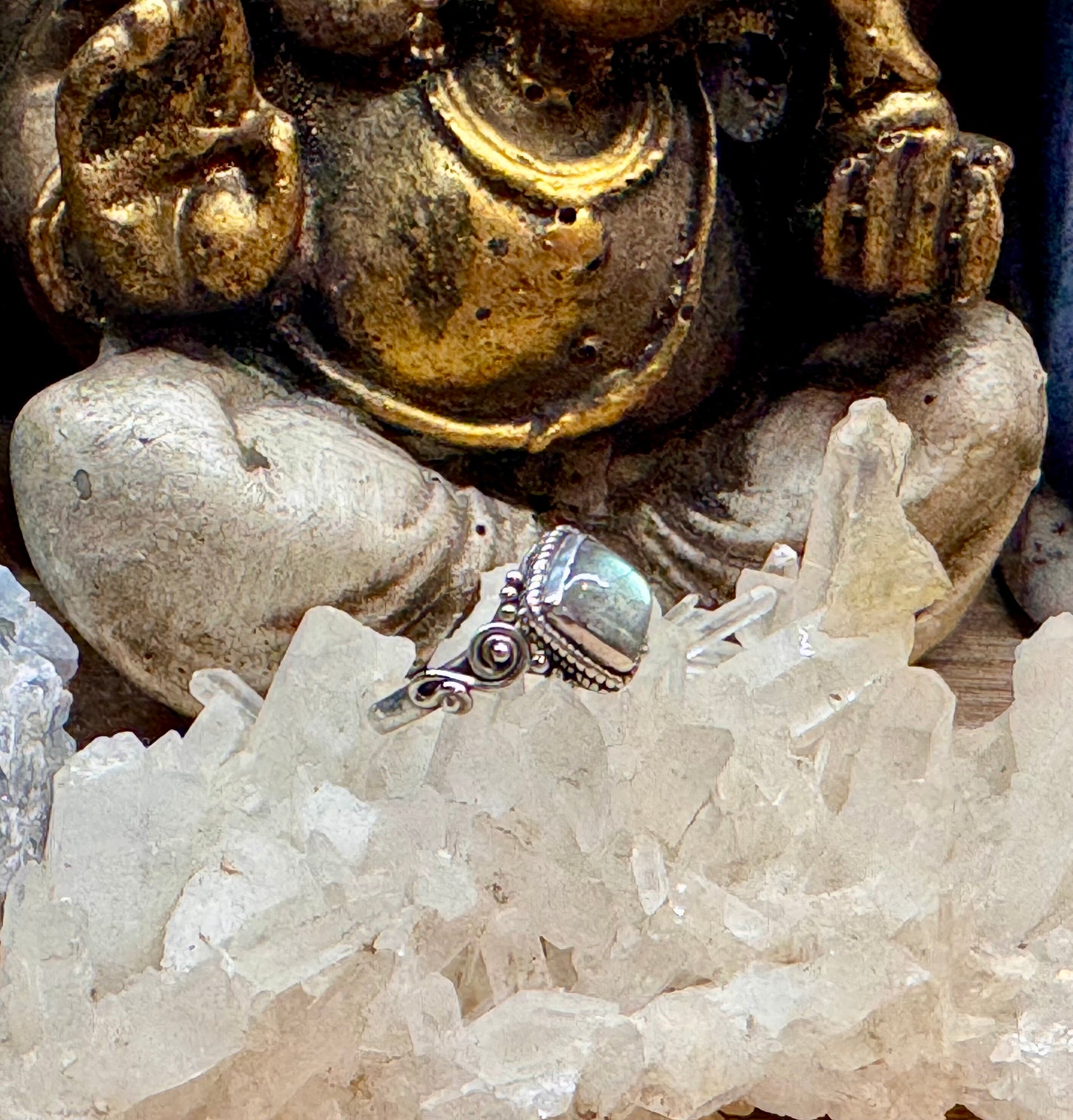 Plan spirituel : La labradorite purifie et ouvre le chakra couronne, ouvrant le passage aux énergies cosmiques. Sur le troisième œil, elle éloigne toutes pensées négatives. Supprime les blocages énergétiques et équilibre le corps et l’esprit. Développe la clairvoyance et la concentration.