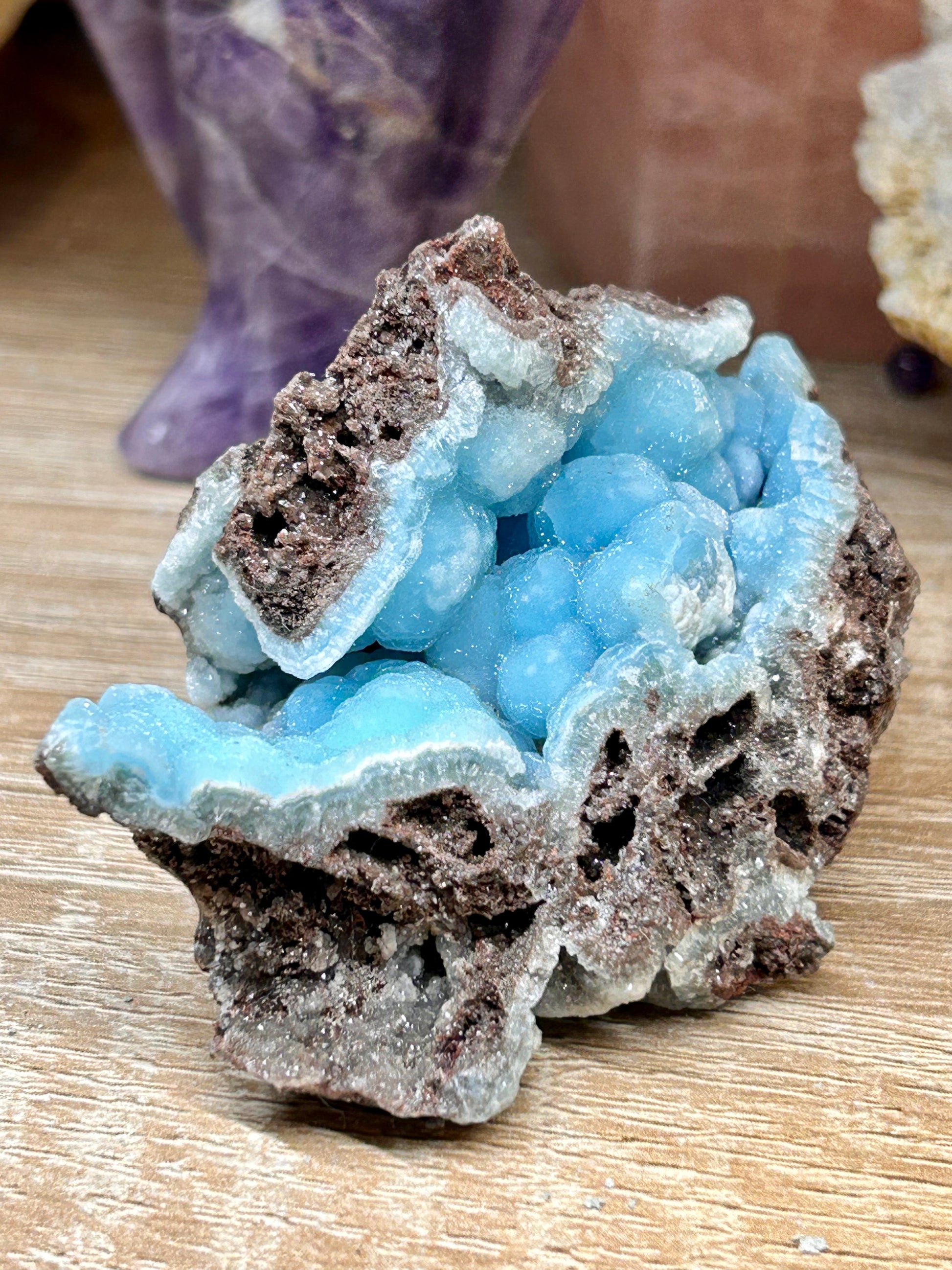 Plan psychique : L’hémimorphite est une pierre d’harmonie, qui procure calme et sérénité. Elle développe le discernement, permet de mieux analyser les situations et de mieux se connaître. Elle engendre du recul par rapport aux événements. Elle procure un grand réconfort sur le plan psychologique. Elle encourage à développer un comportement serein et guide vers une vie paisible.