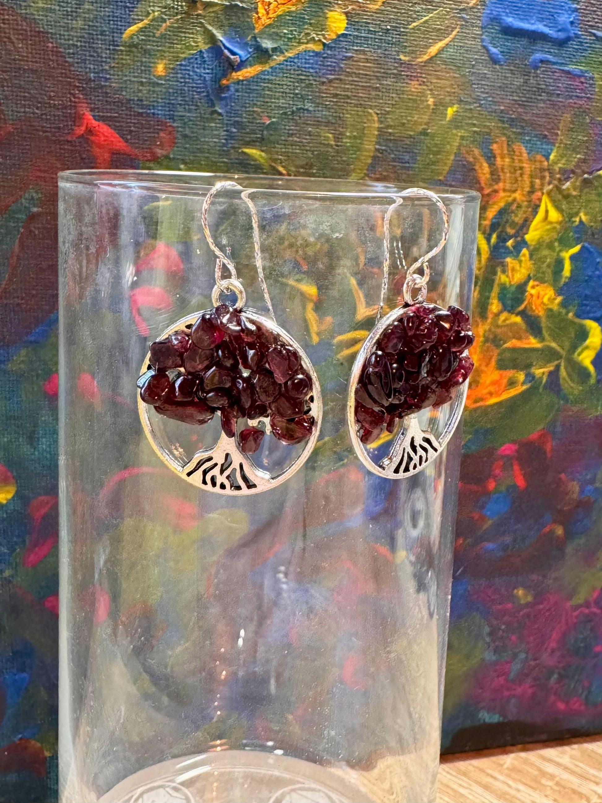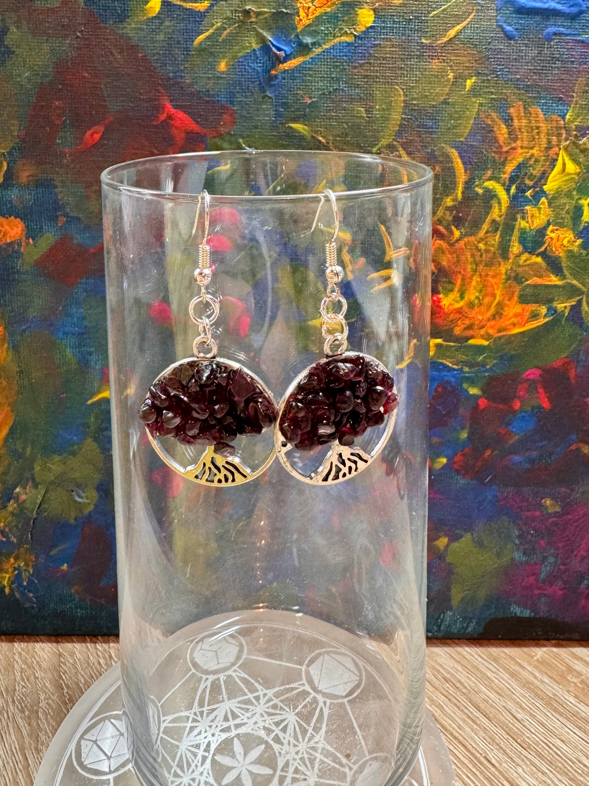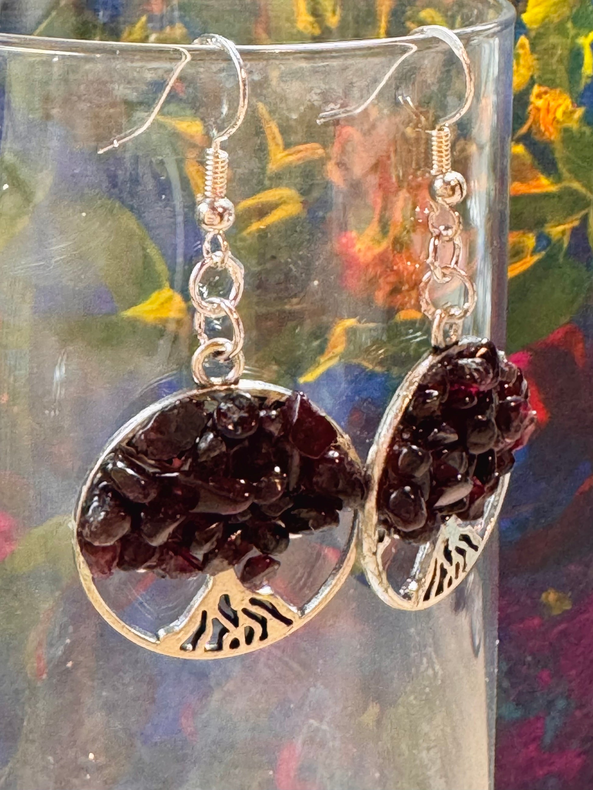 Boucles d’oreilles argent arbre de vie en grenat