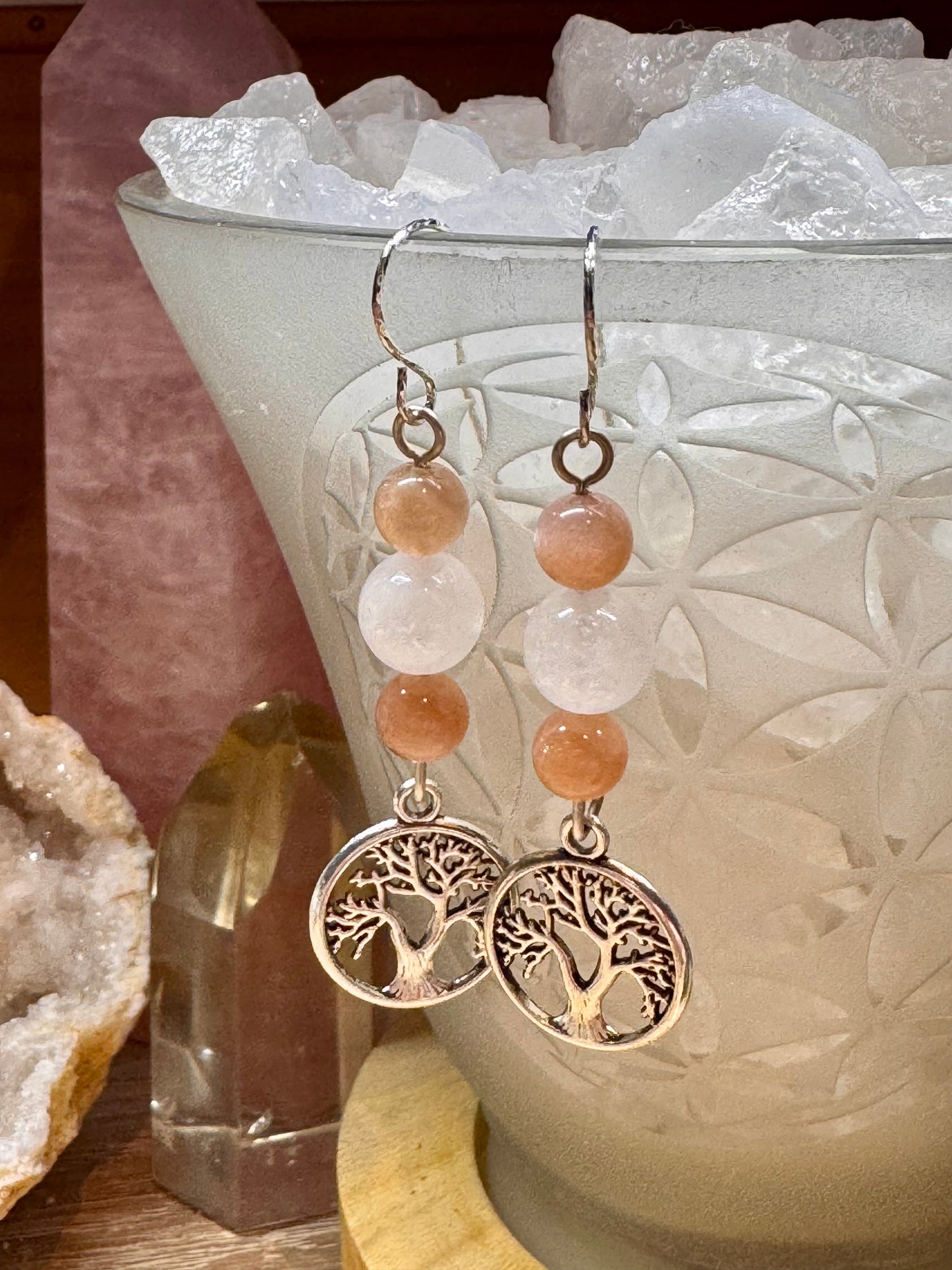 Boucles d’oreilles en argent avec Péristérite et Pierre de lune