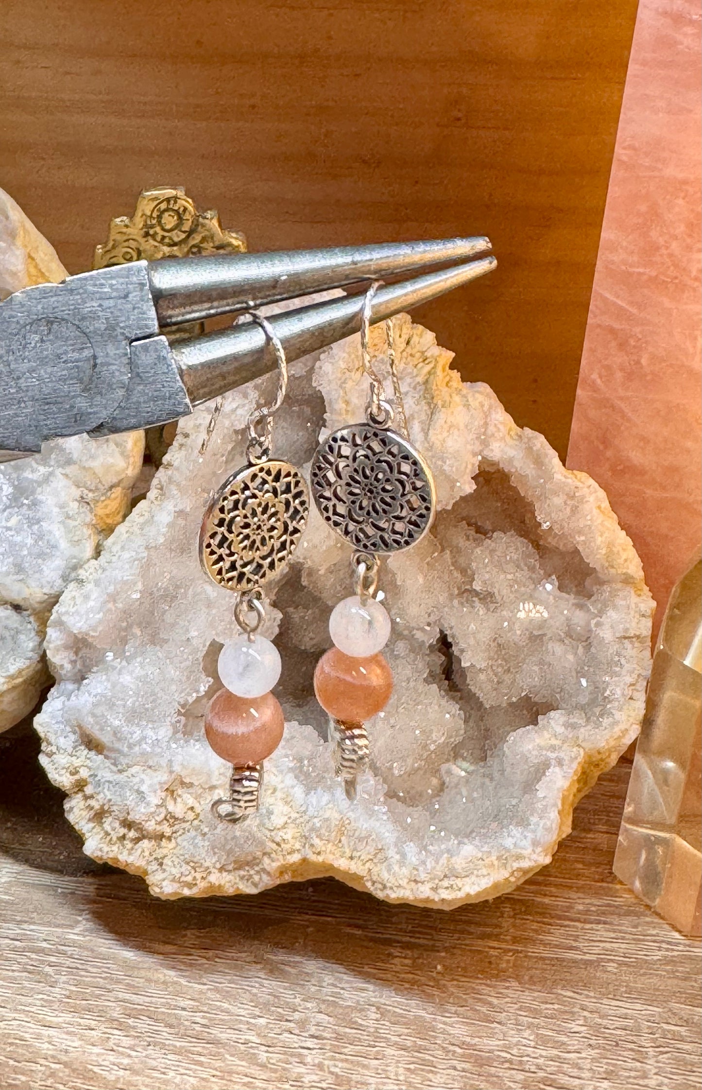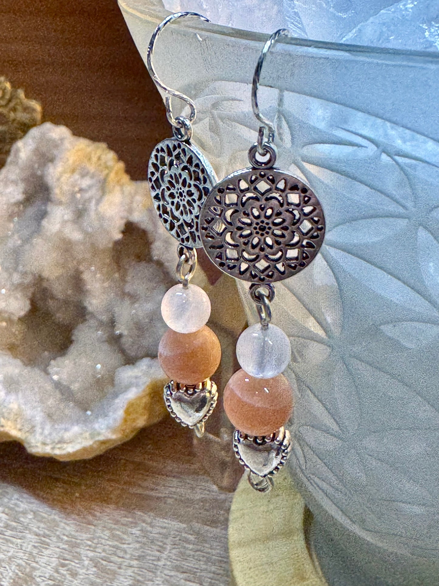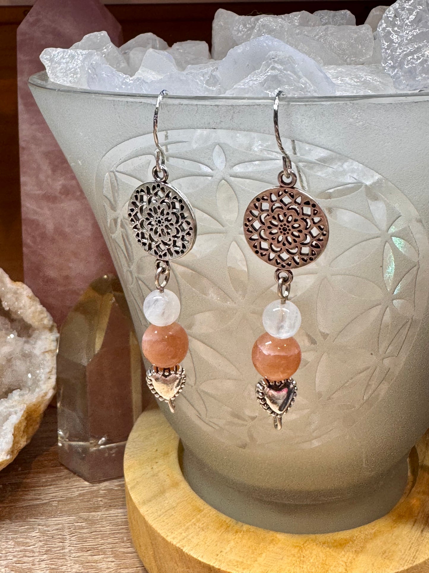 Boucles d’oreilles en argent Péristérite et Pierre de lune