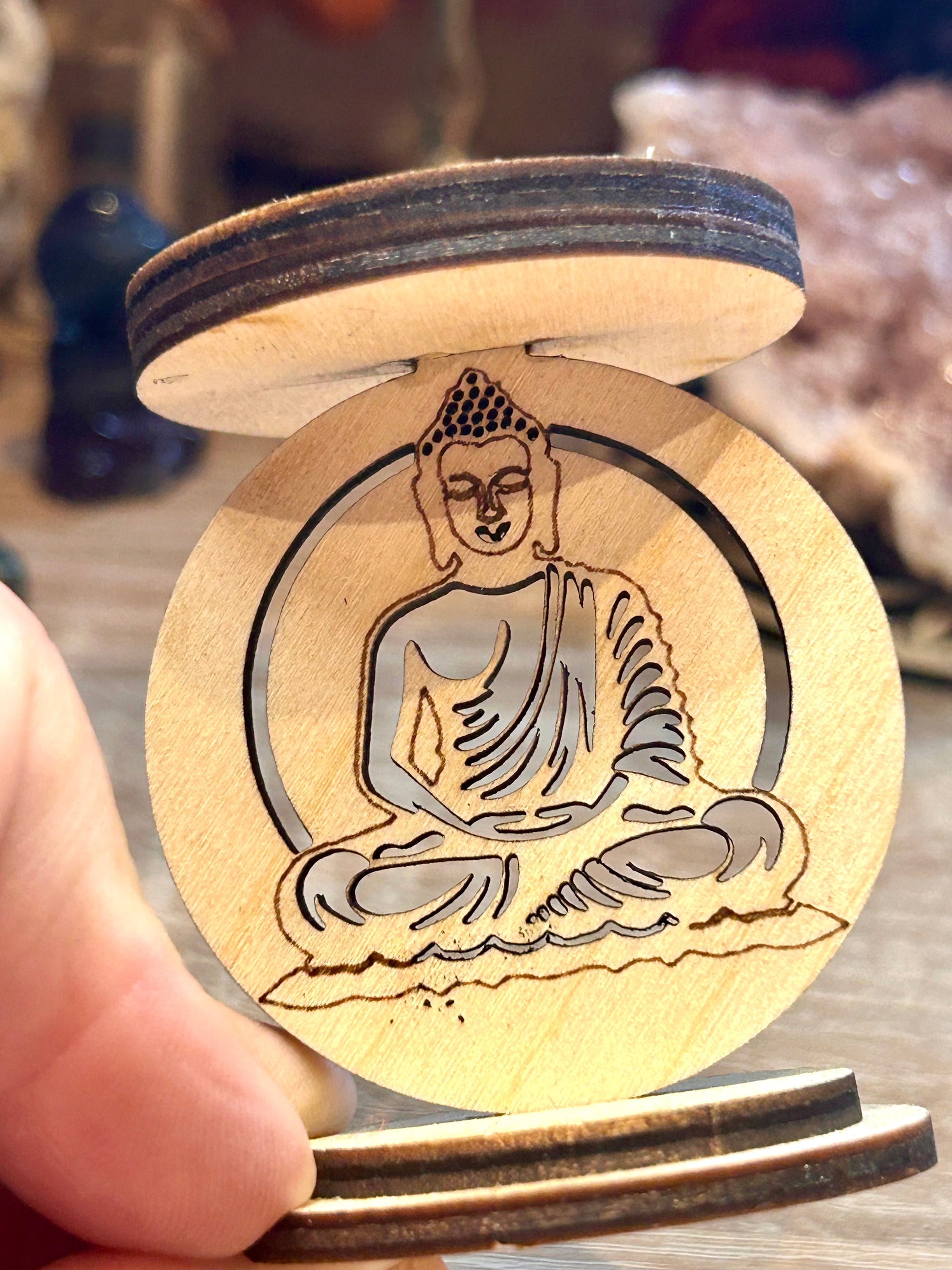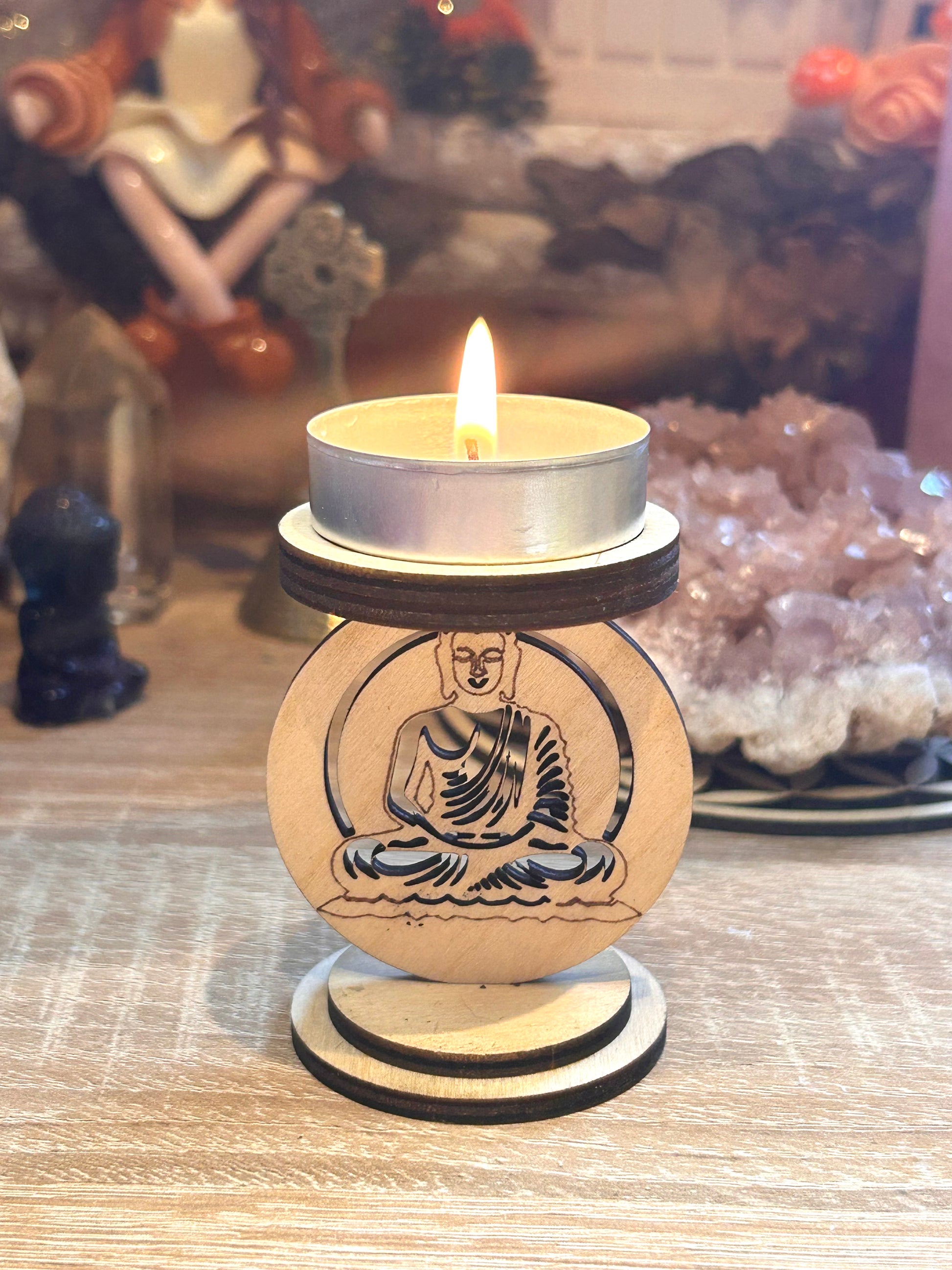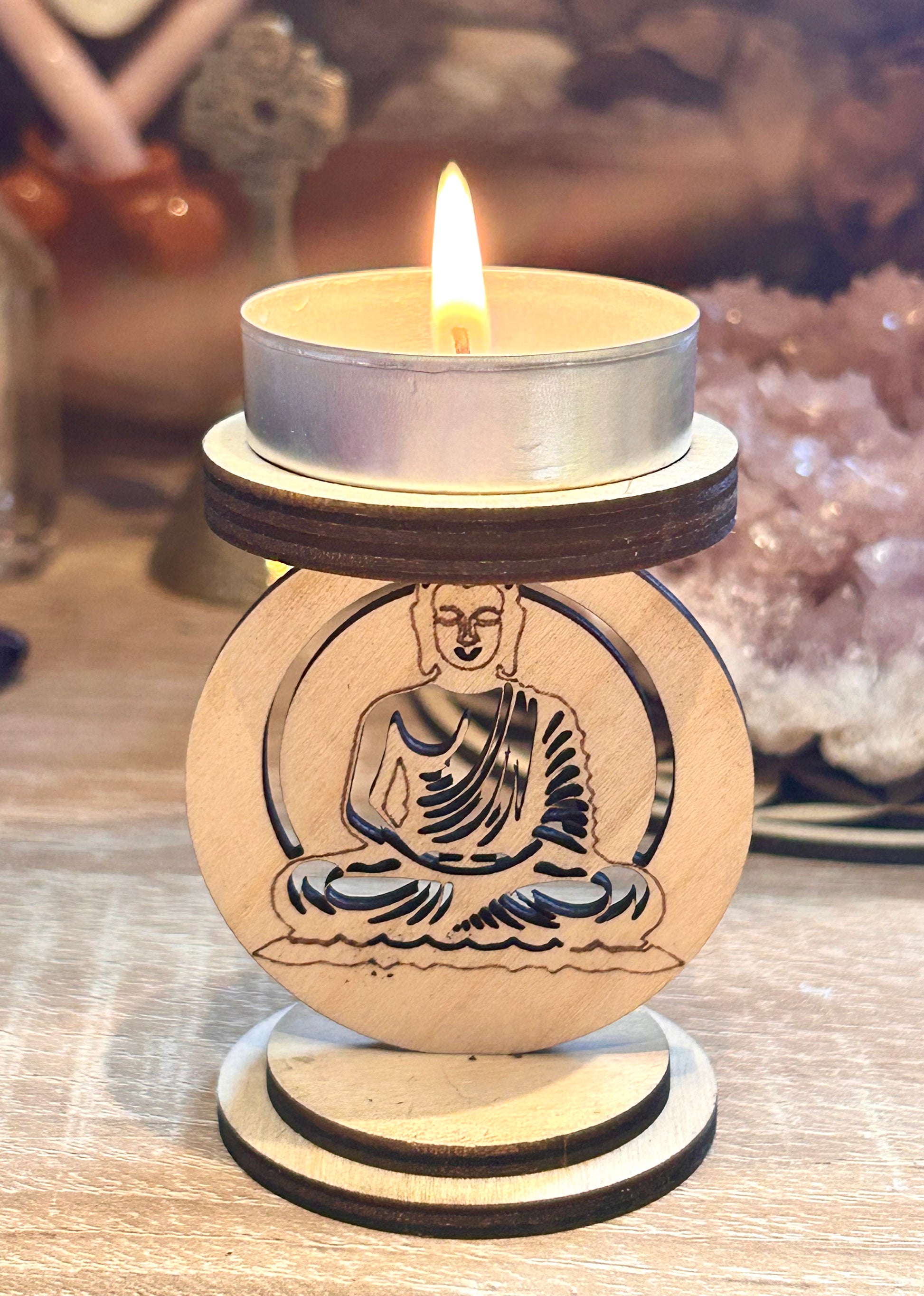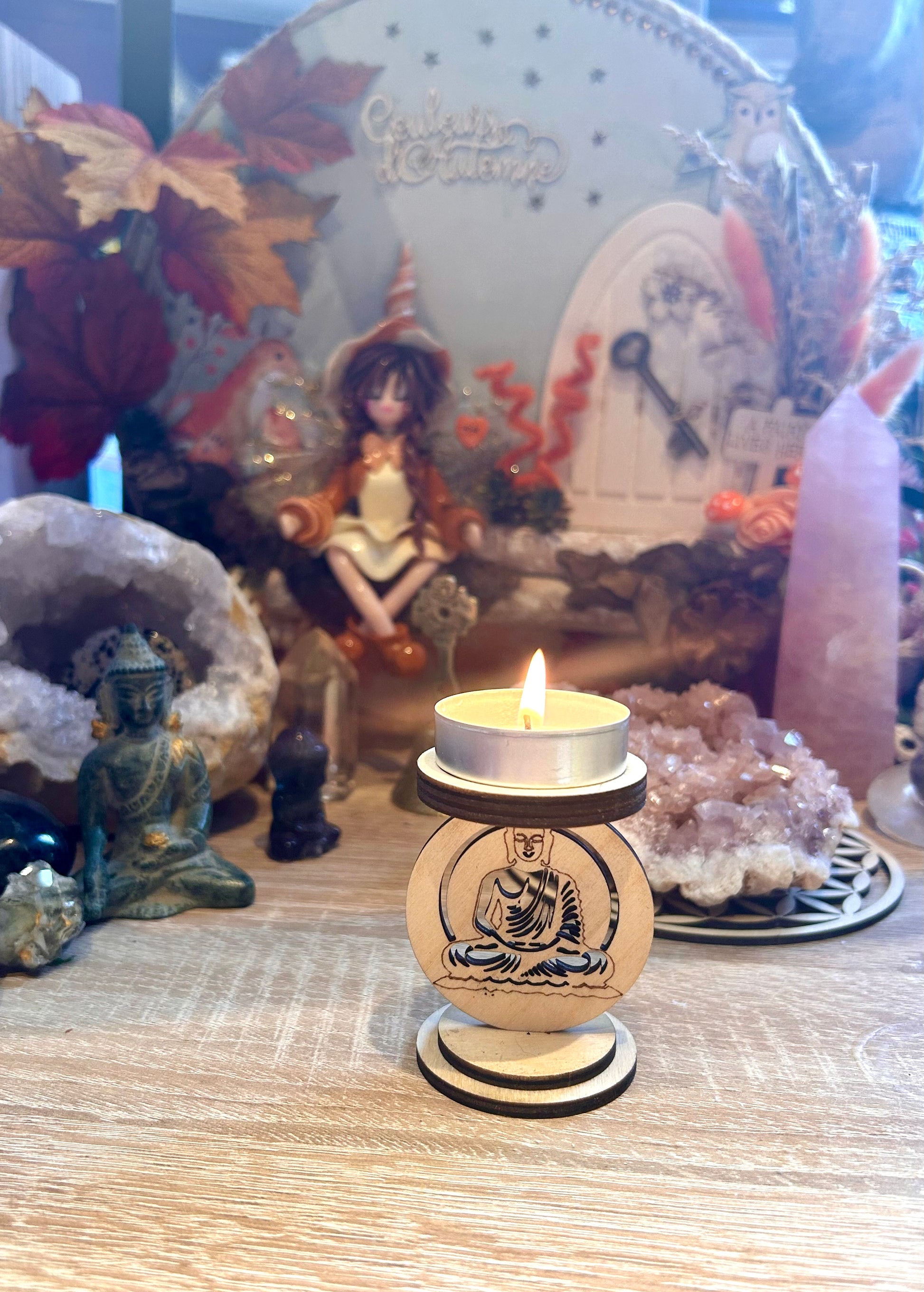 Bougeoir chauffe-plat en bois - Bouddha en relief
