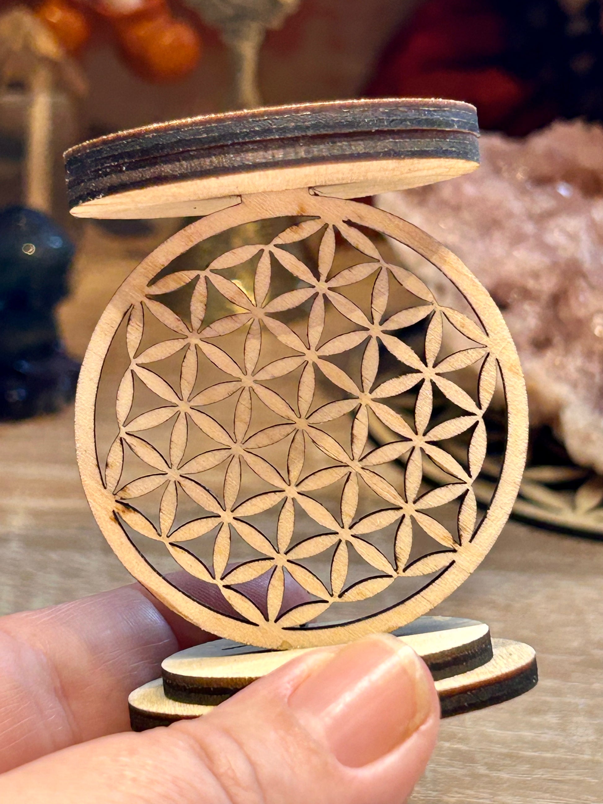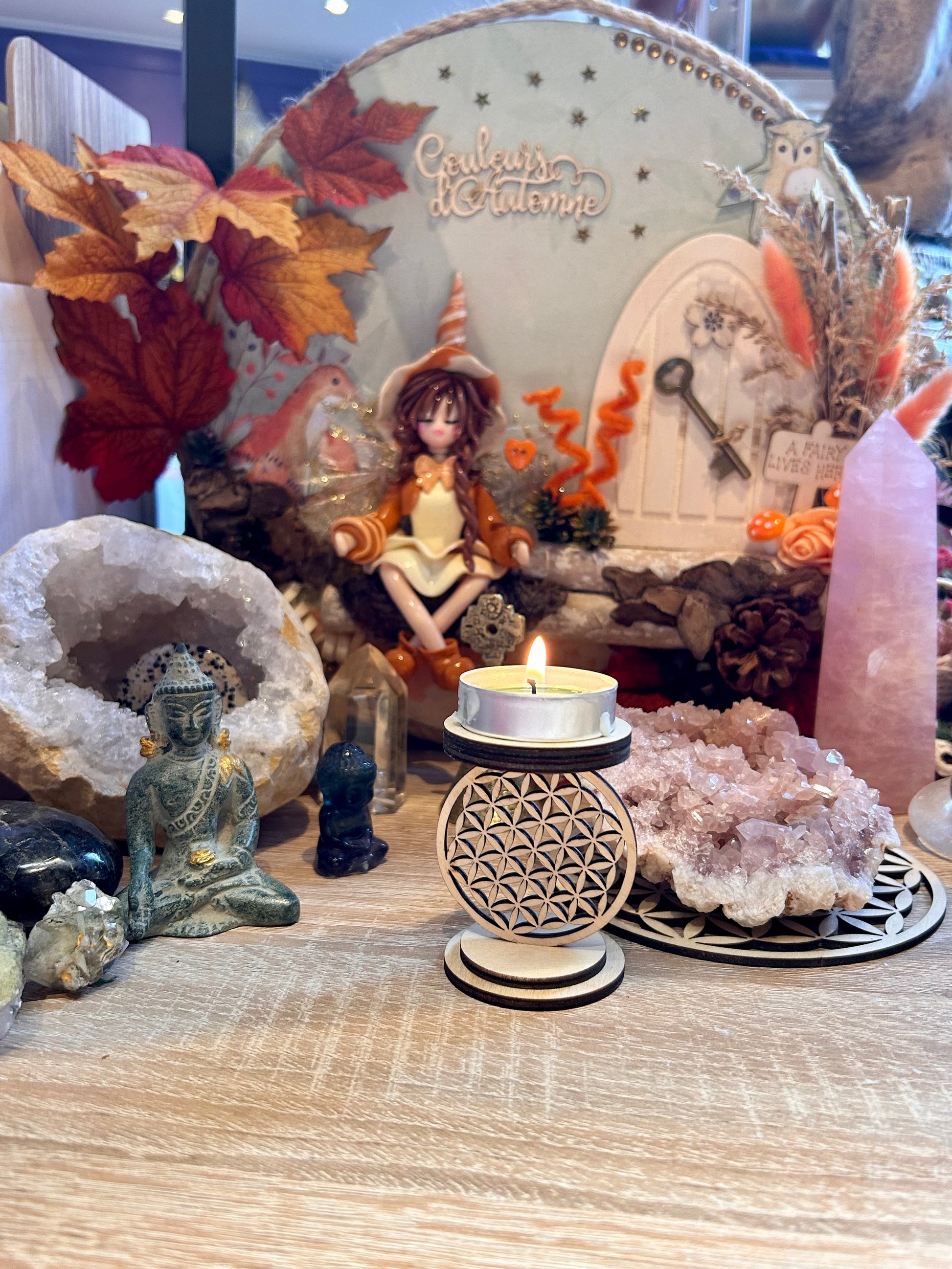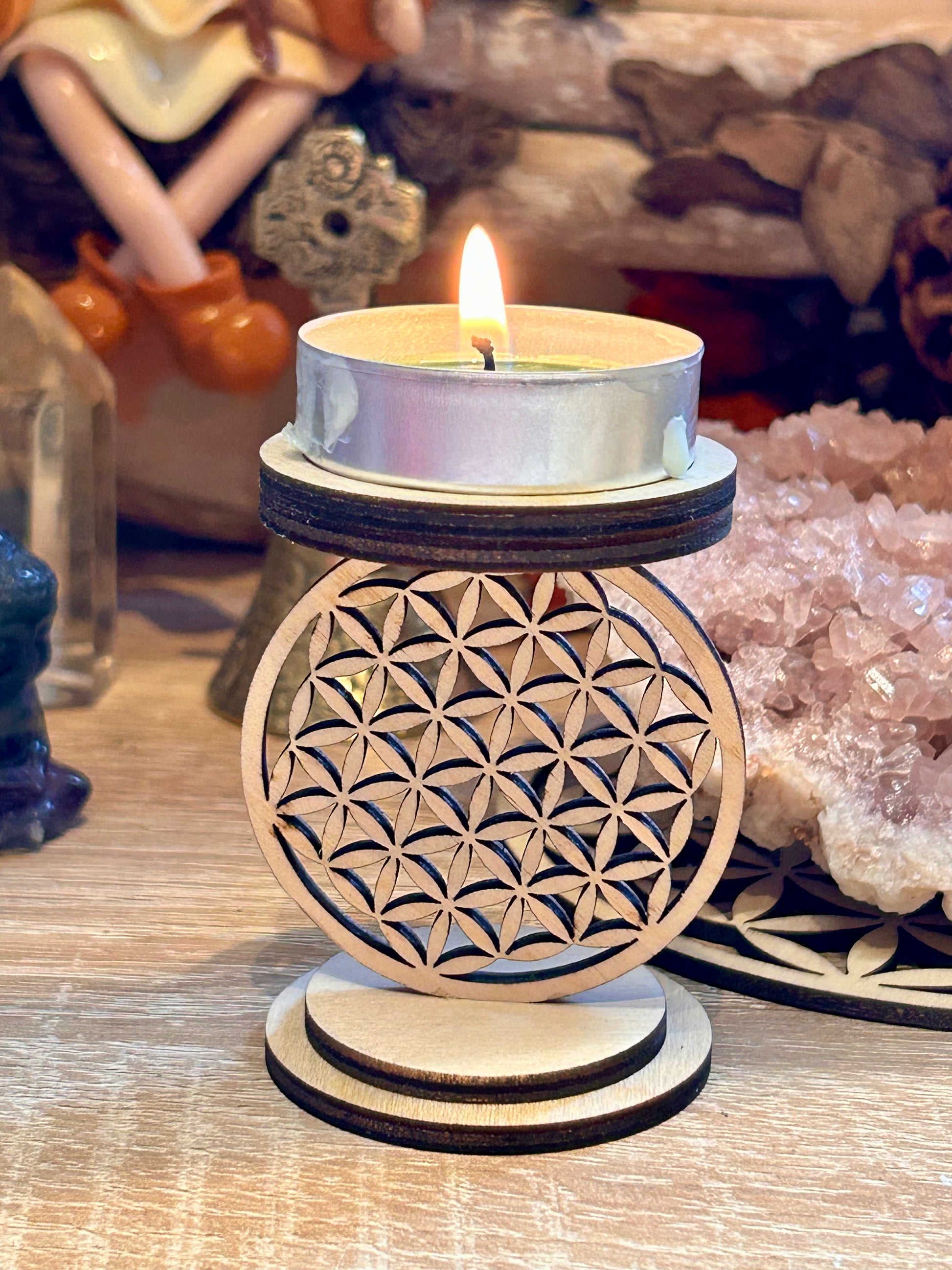 Bougeoir en bois - fleur de vie