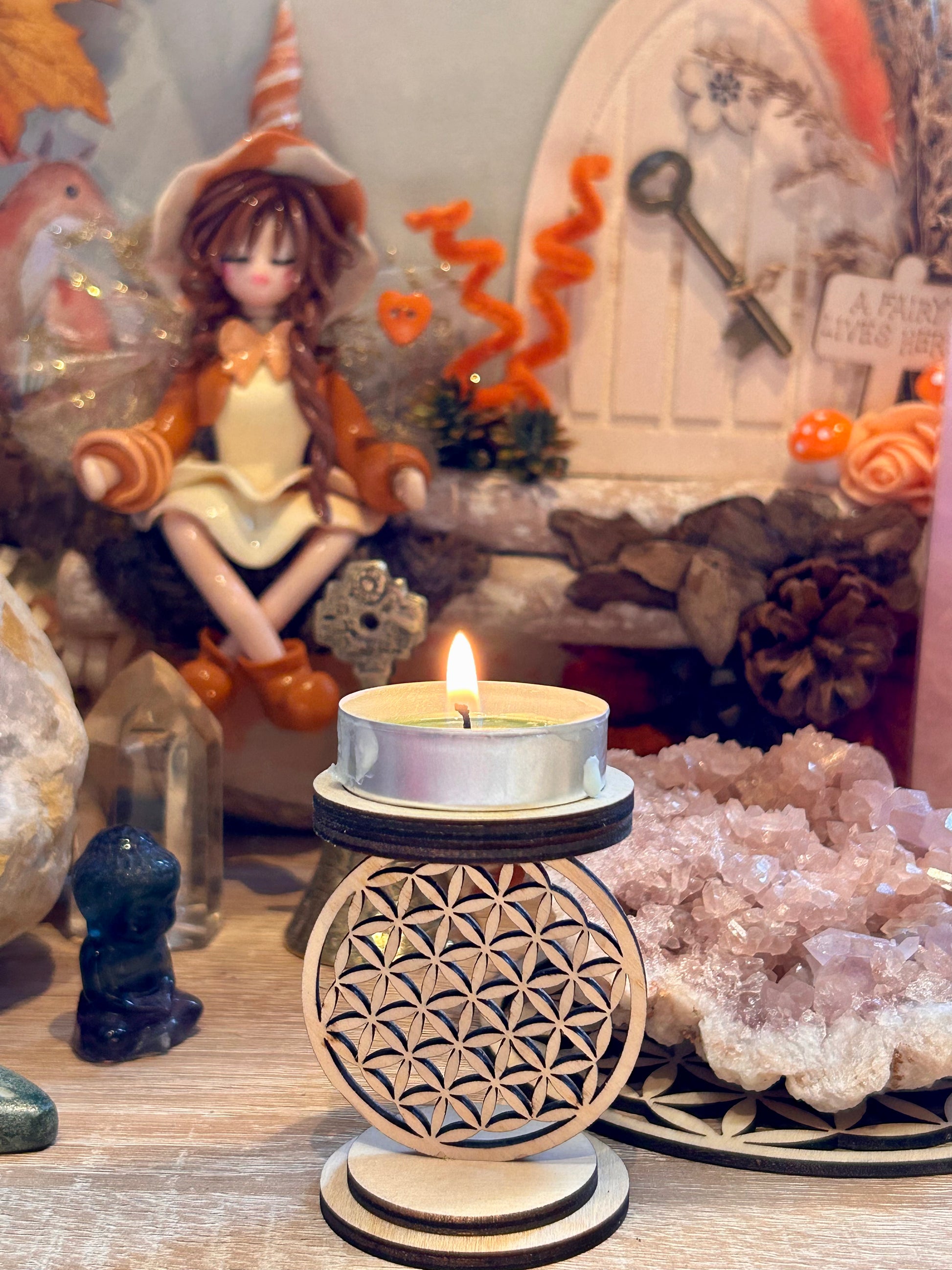 Bougeoir chauffe-plat en bois - fleur de vie