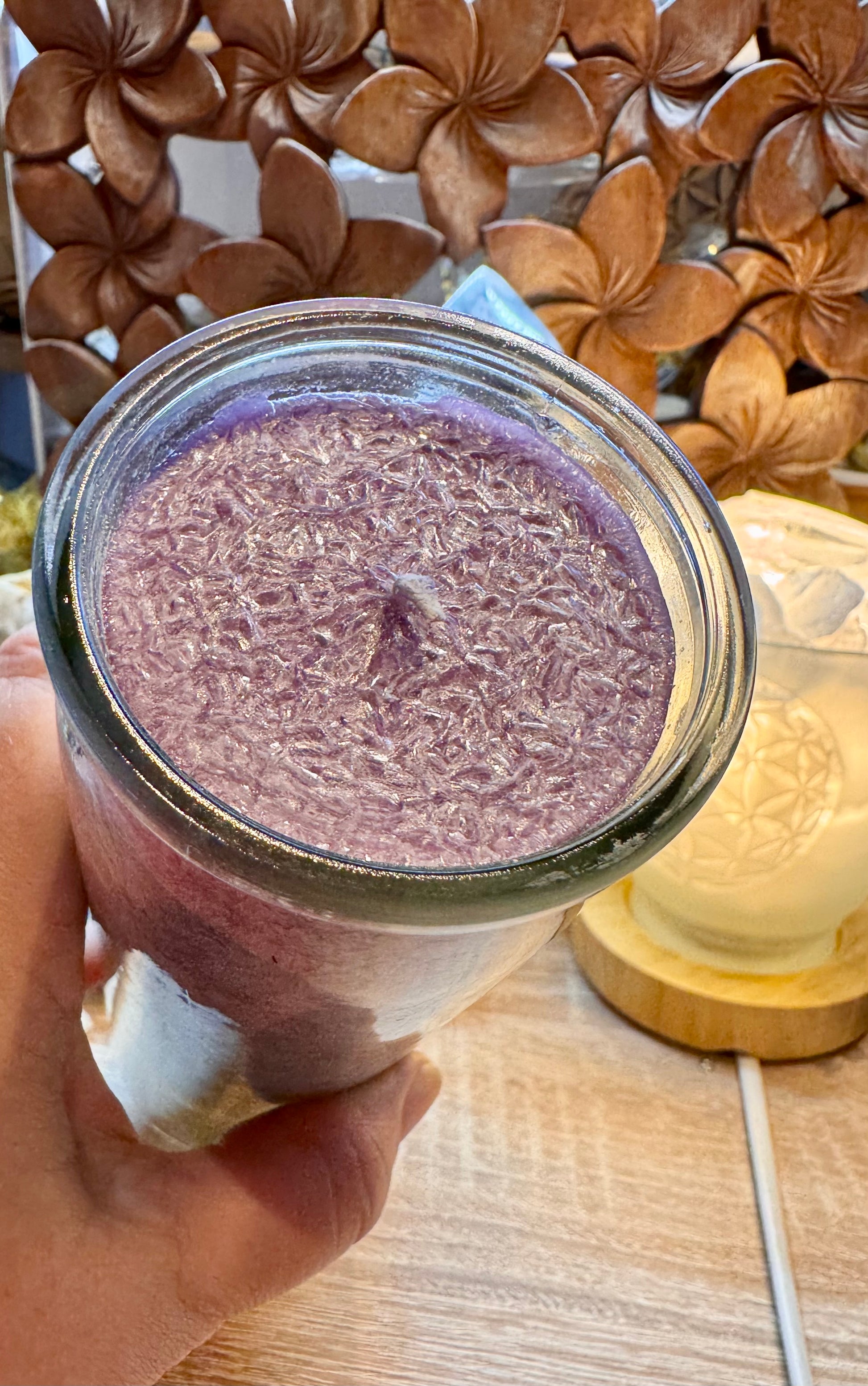 Bougie stéarine 100% naturelle en verre recyclé.