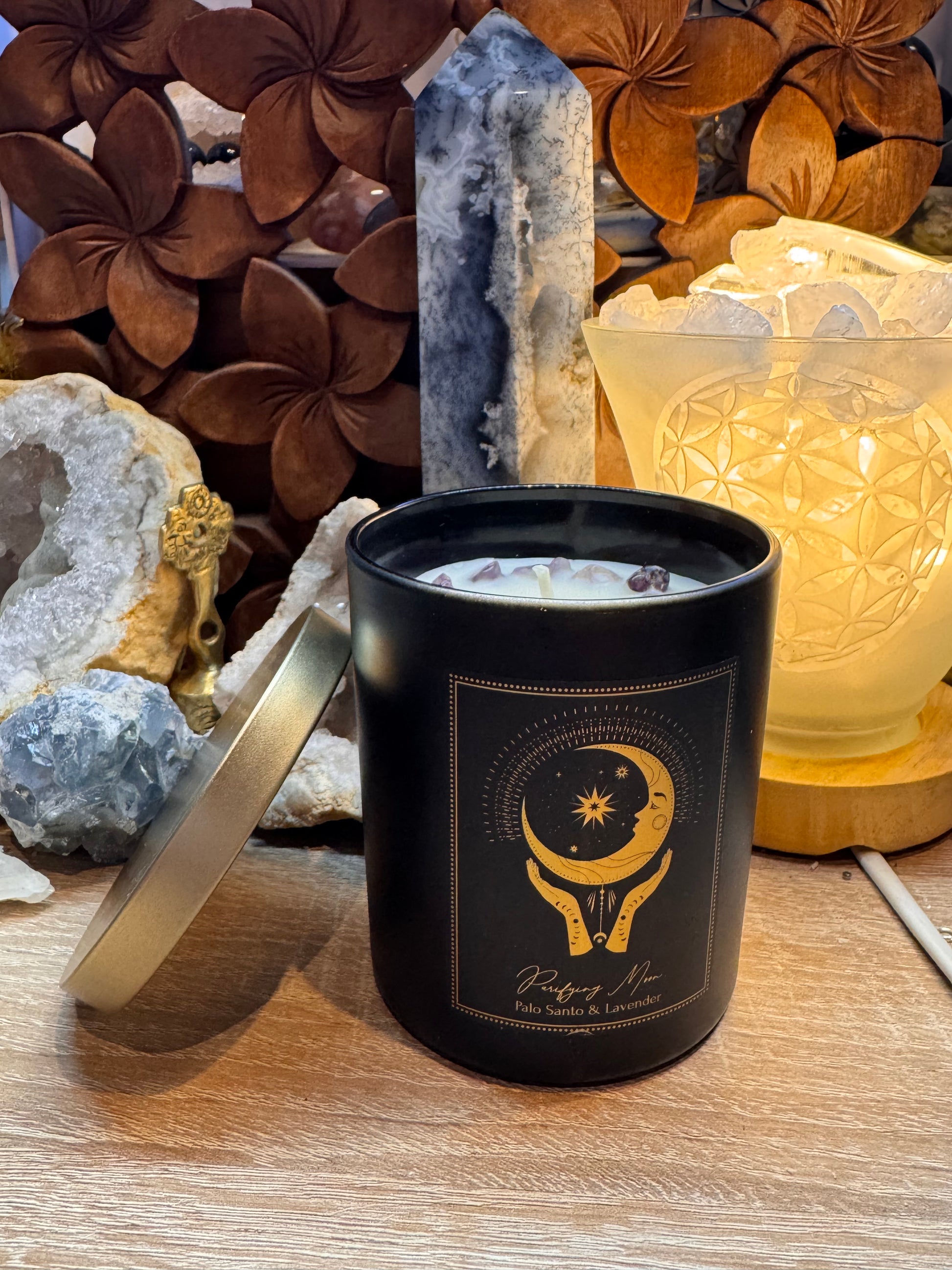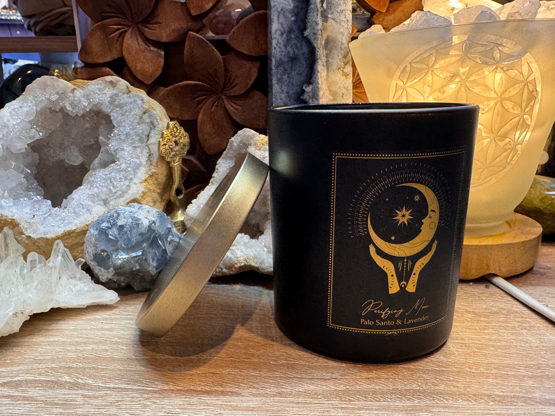 Profil olfactif : Arôme apaisant de palo santo et de lavande, à utiliser avec vos rituels lunaires mensuels pour vous déconnecter de l'agitation de la vie quotidienne et vous remettre en phase avec l'énergie naturelle de la lune.