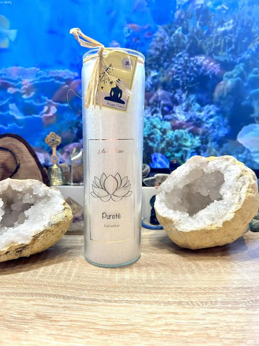 Cette bougie favorise la méditation. Hauteur 20,5 cm - Diamètre : 6 cm. Environ 100 heures de combustion