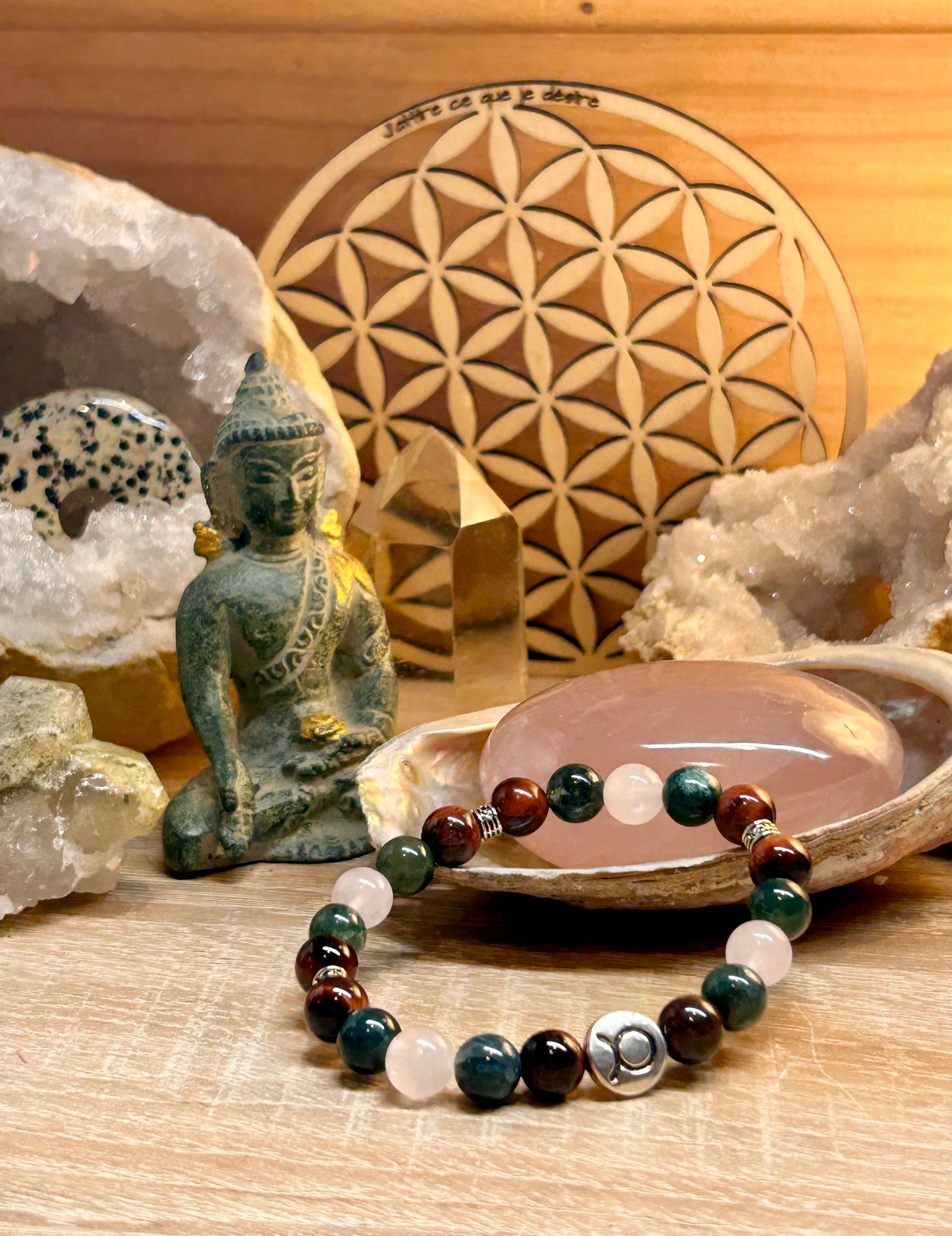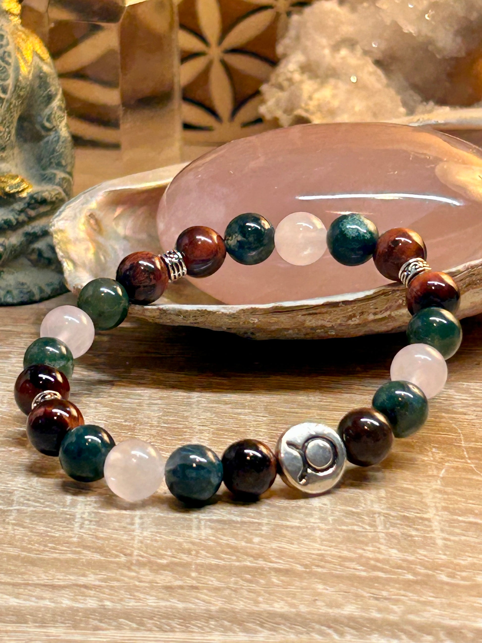 Perles correspondantes au taureau : quartz rose, agate mousse et œil de taureau