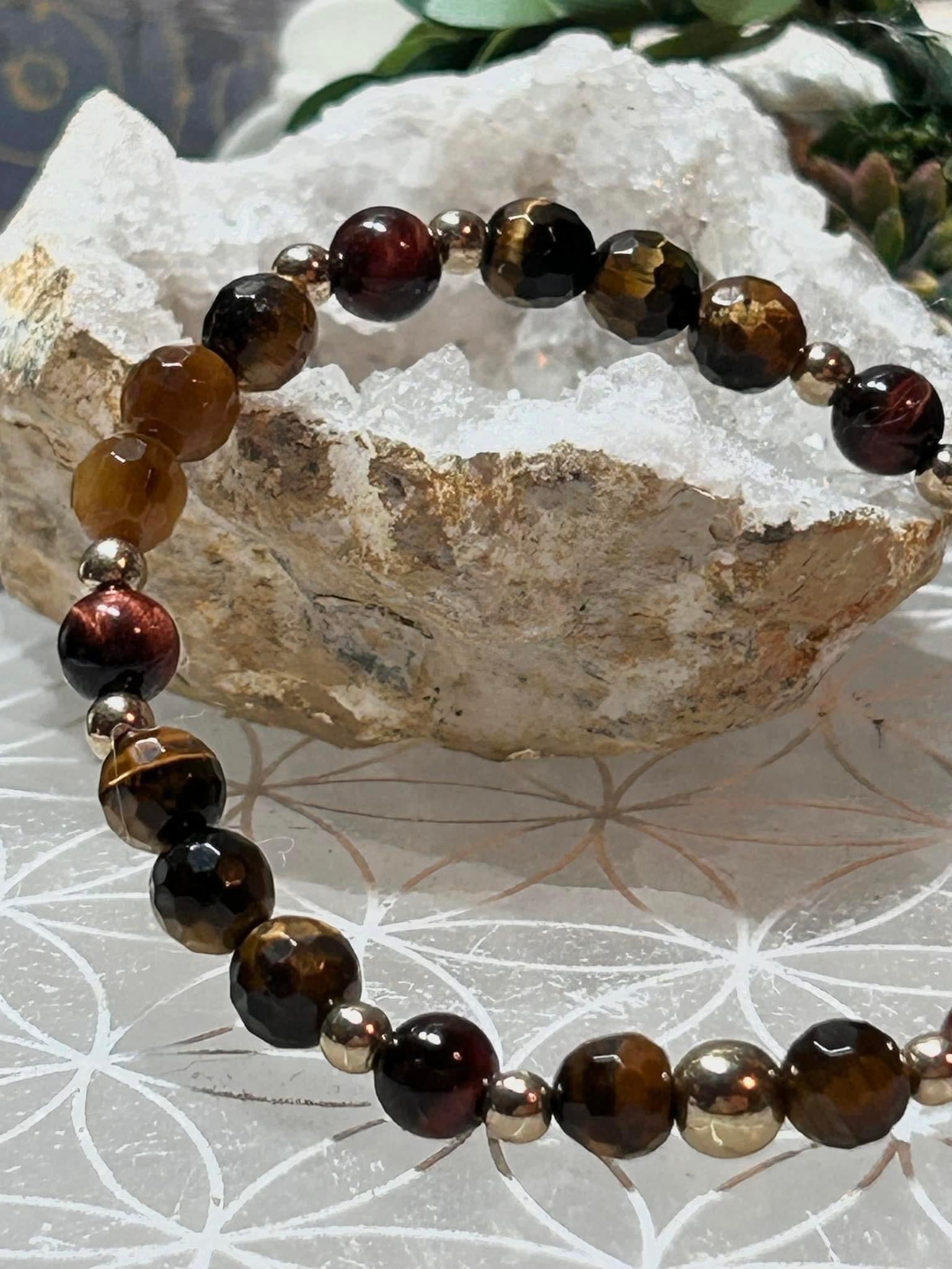 Plan spirituel : Elle a un effet miroir, elle renvoie les énergies négatives à son emmeteur et lui fait prendre conscience du mal qu’il fait subir à autrui. Pour les hypersensibles ou les personnes qui débordent d’empathie, l’œil de tigre aide à dissocier ses propres émotions de celles de son entourage.