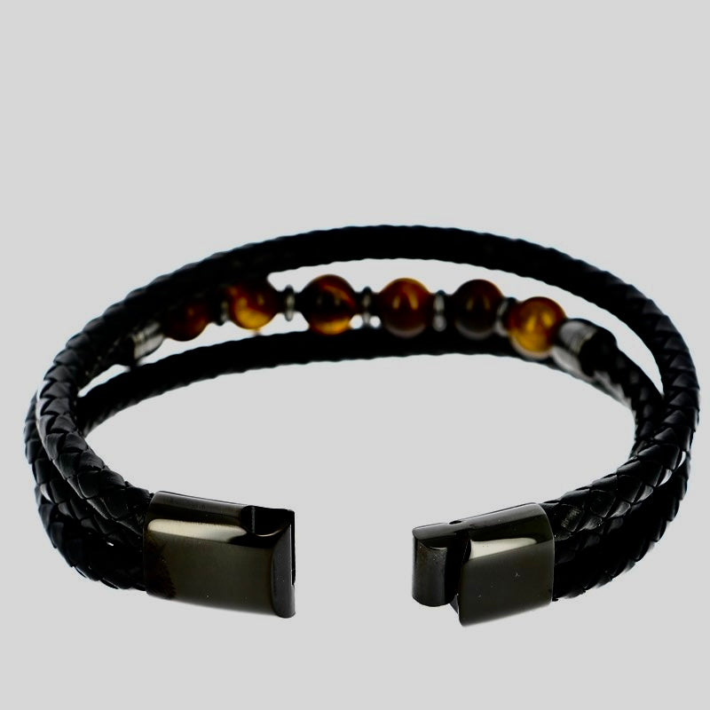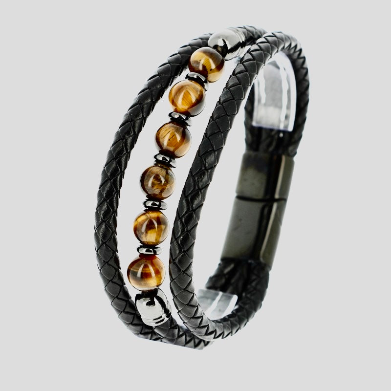 CUIR ET PERLES, FERMOIR EN ACIER INOXYDABLE BRACELET HOMME