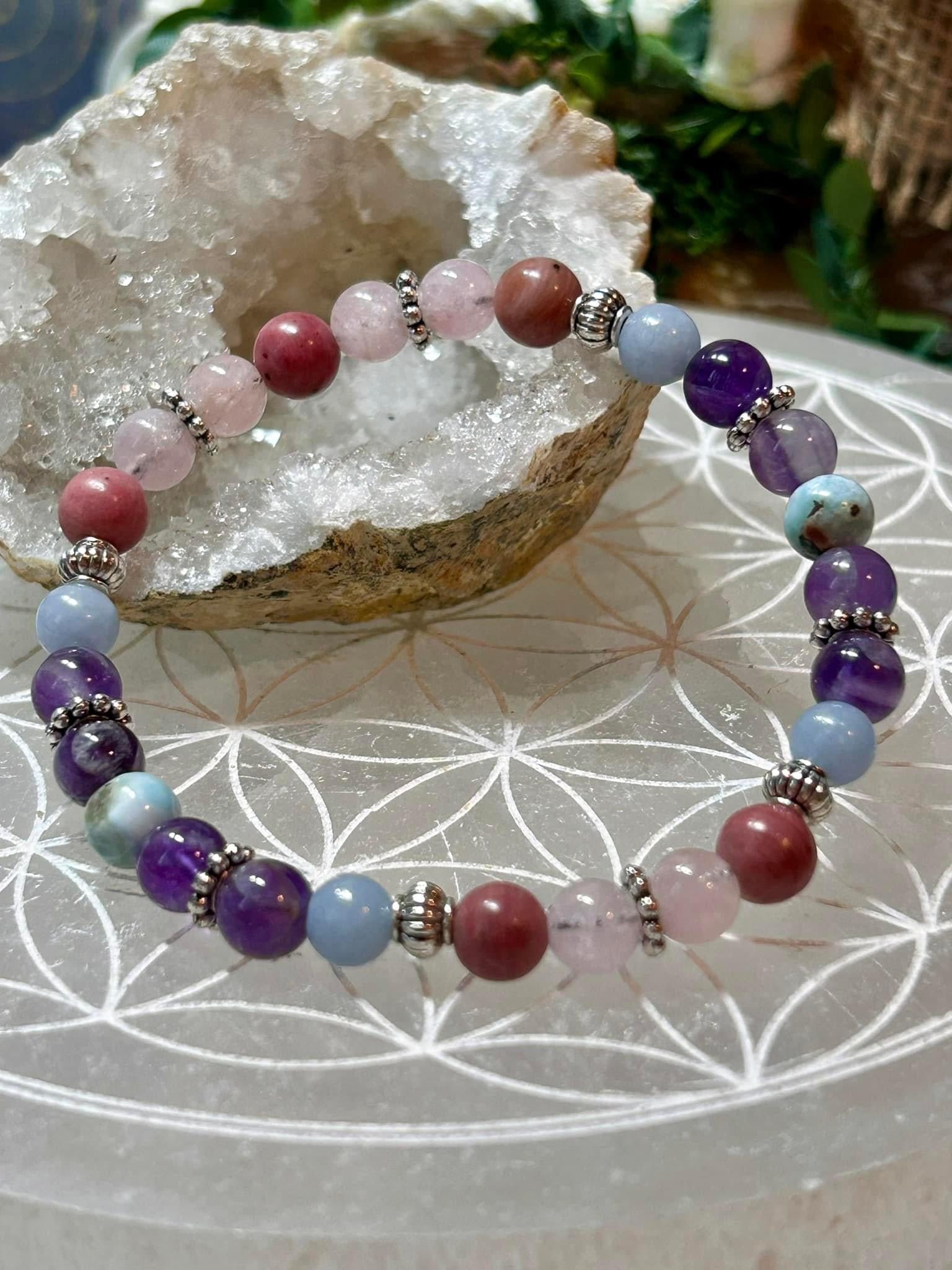 Morganite, Rhodonite, Angélite, Améthyste et Larimar