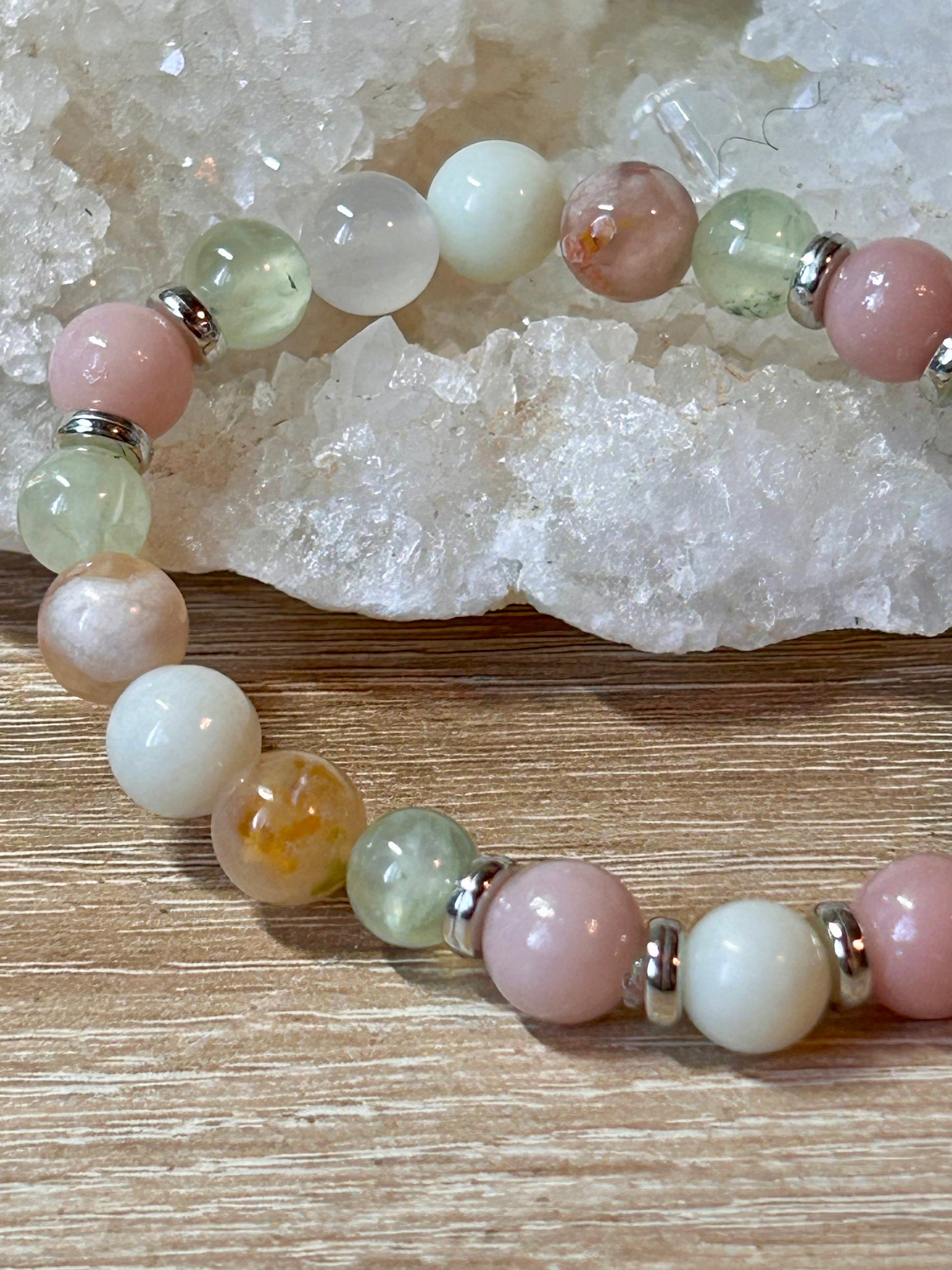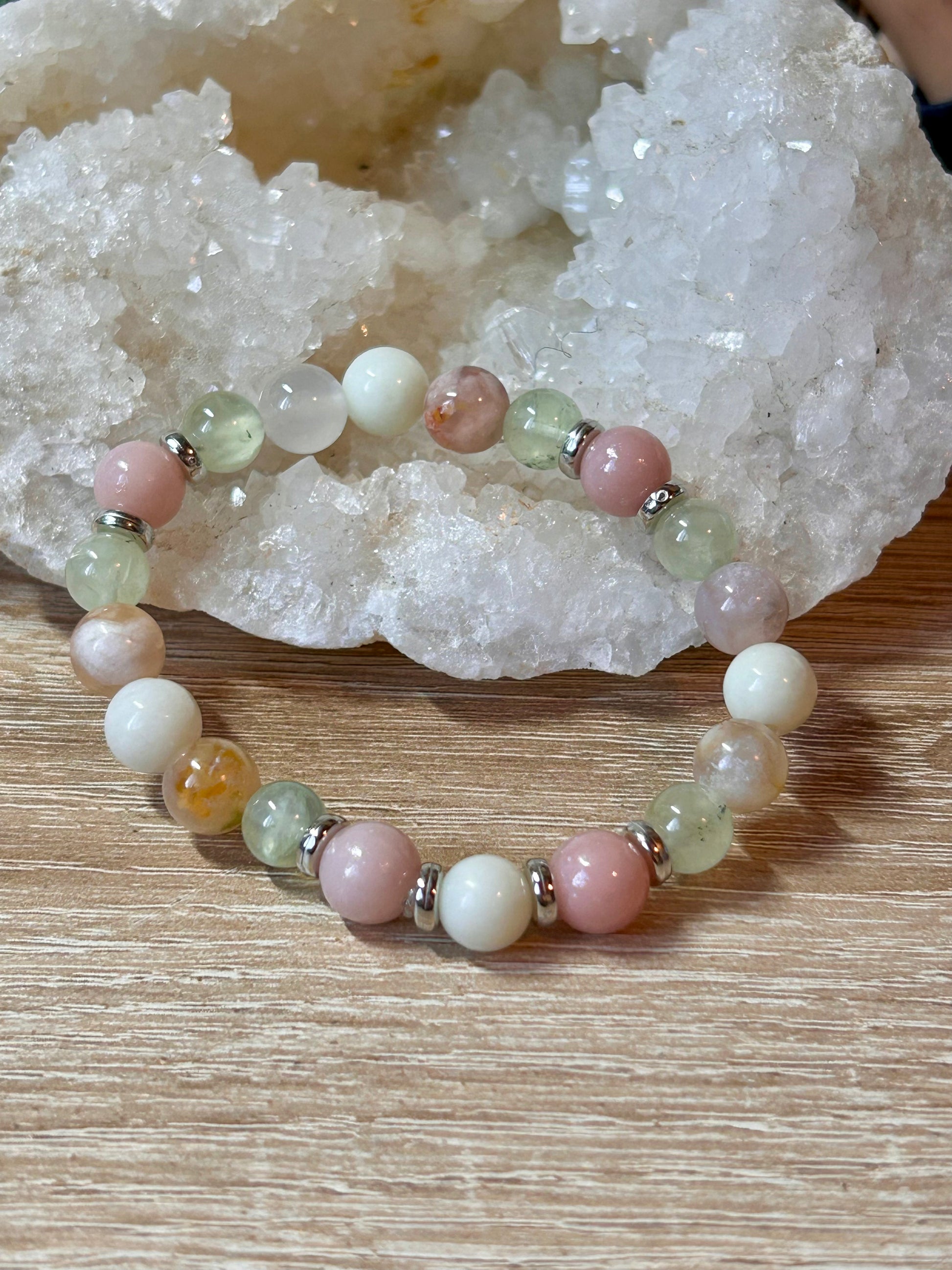 Agate fleur de cerisier, Jade, Préhnite, Opale rose