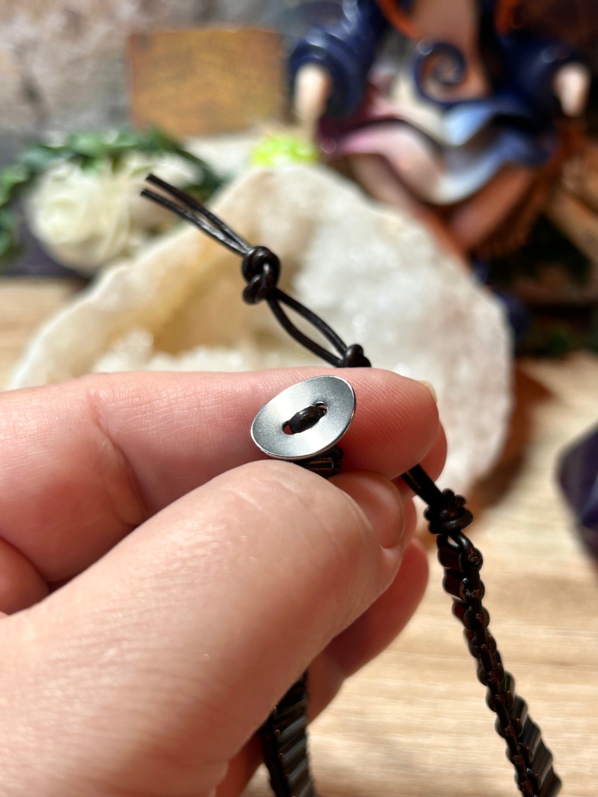 Plan spirituel : L’hématite est particulièrement efficace pour ancrer et protéger. Cette pierre harmonise le mental, le corps et l’esprit, et dissipe la négativité. l’Hématite est une pierre d’ancrage, profondément reliée à la terre et aux énergies Yang, elle apporte force, équilibre et affirmation de soi. Du fer elle transmet résistance, inflexibilité et détermination.