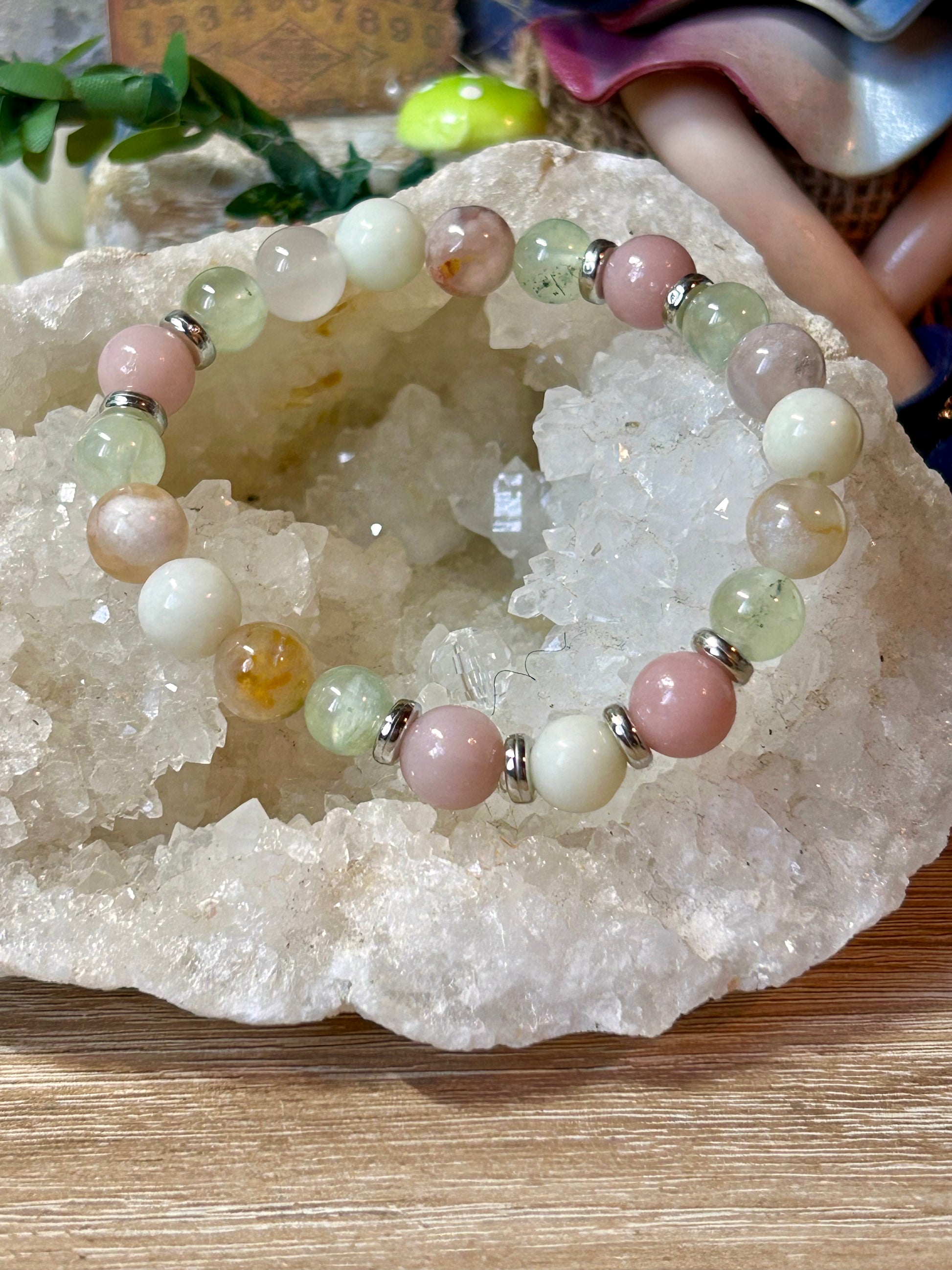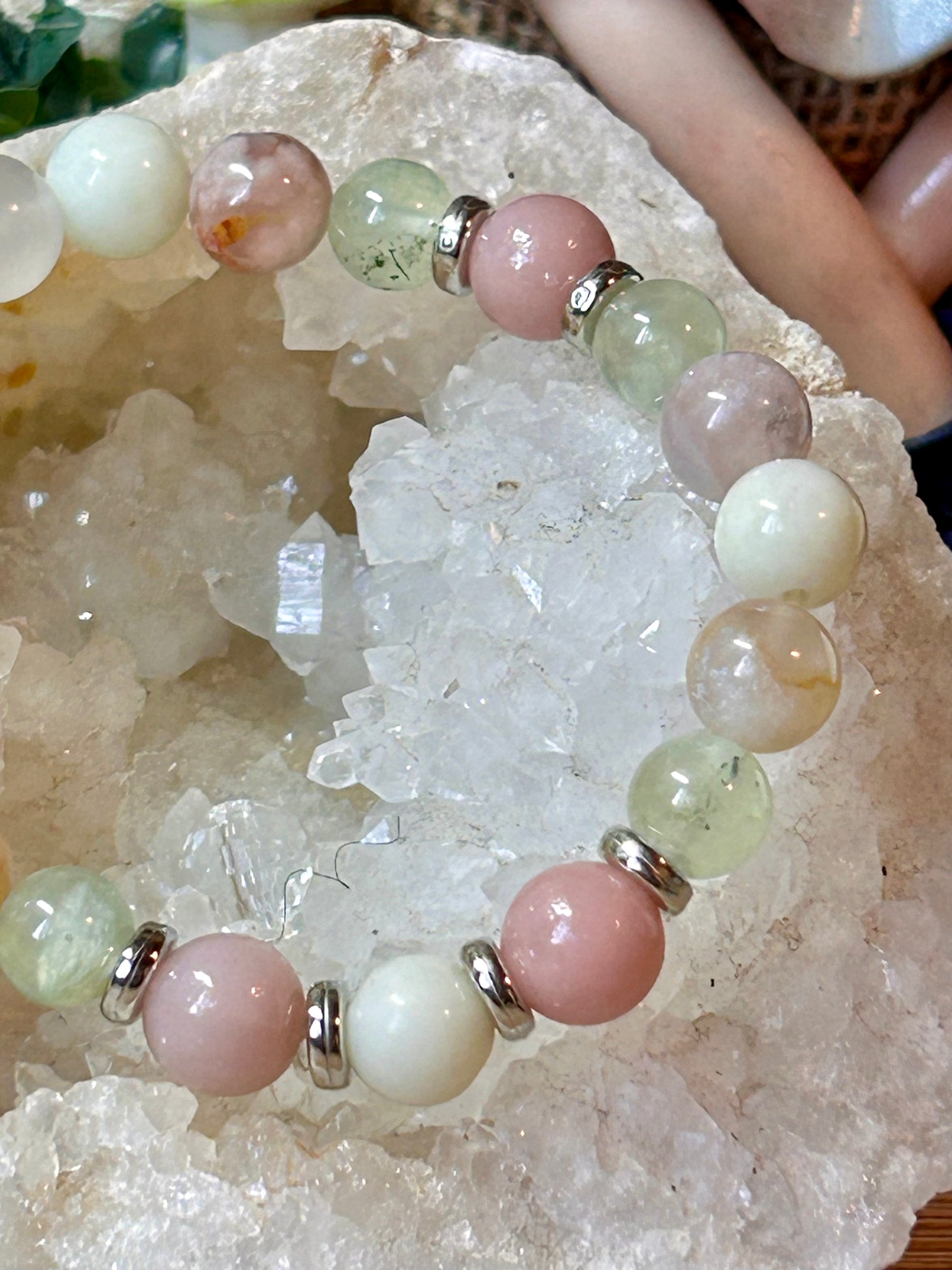 Agate fleur de cerisier, Jade, Préhnite, Opale rose