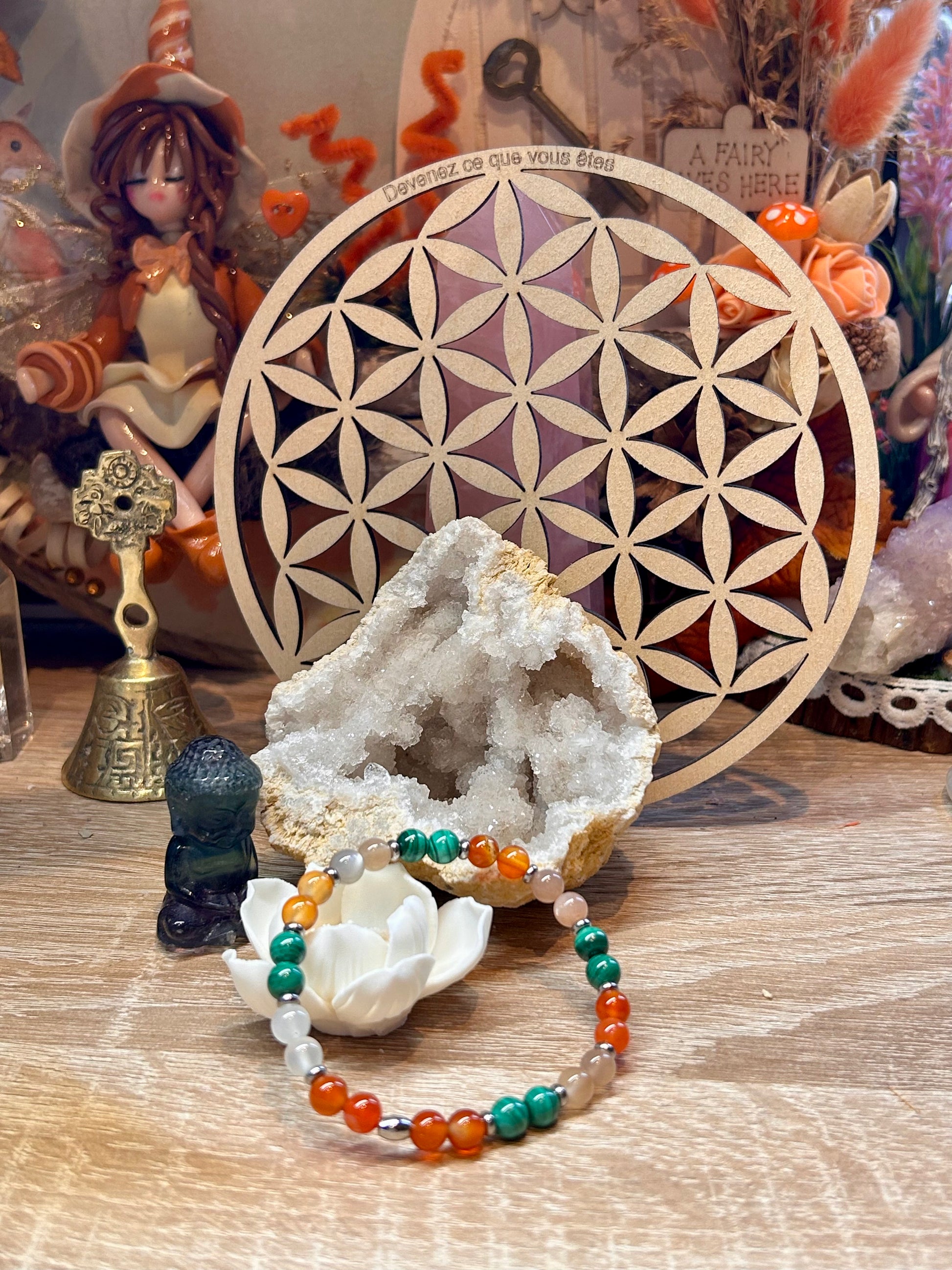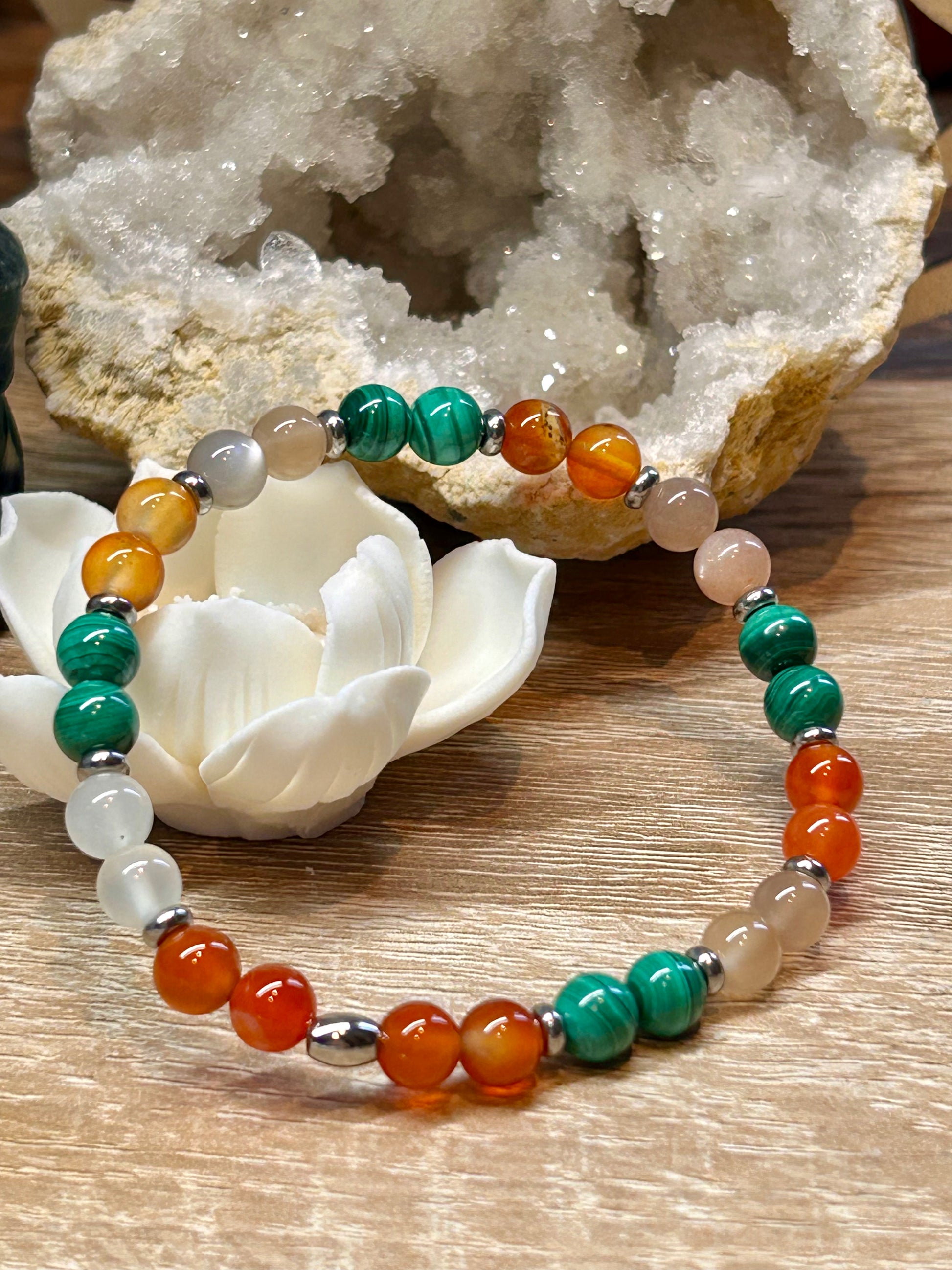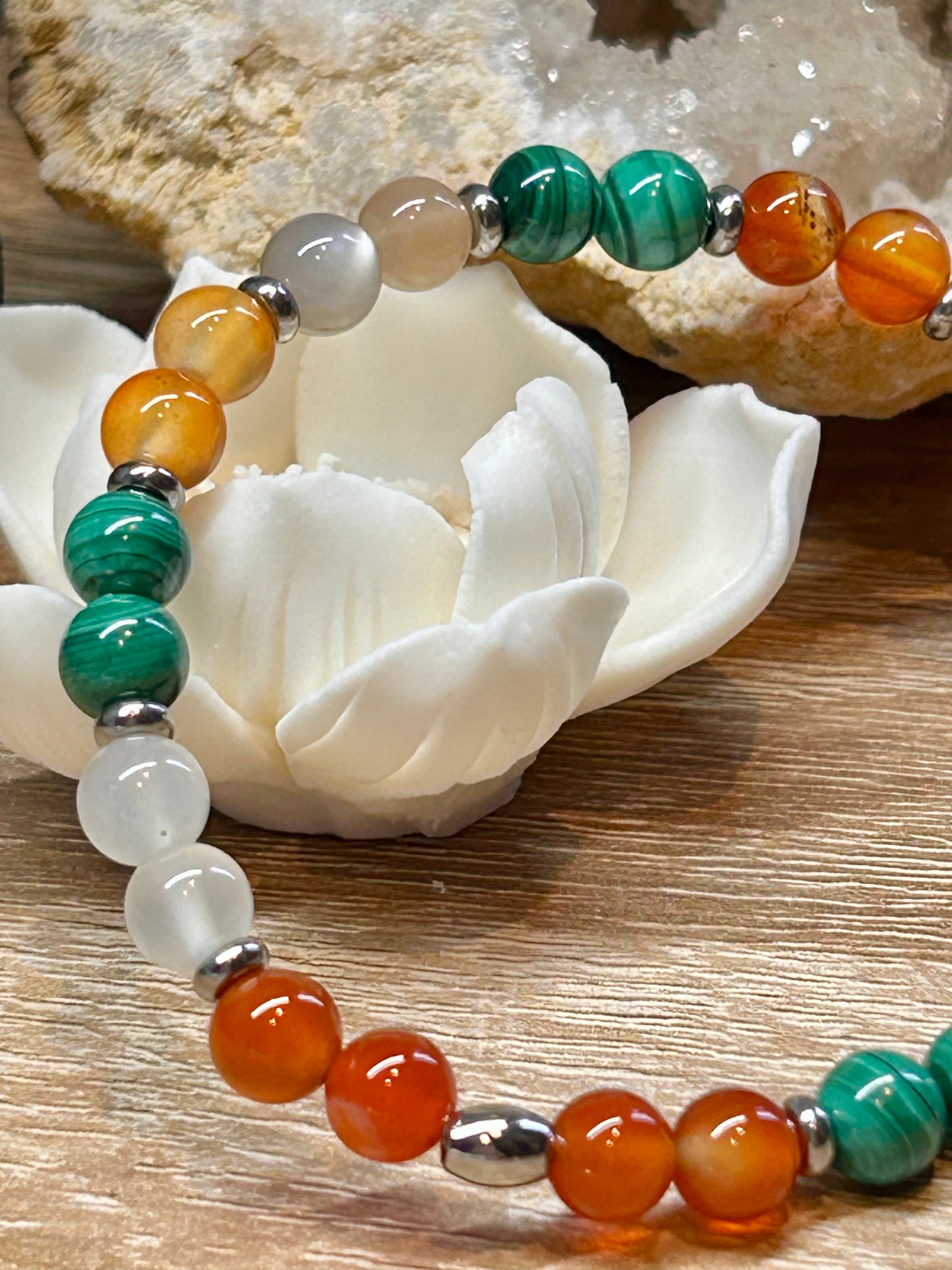 Malachite, Cornaline, Pierre de lune