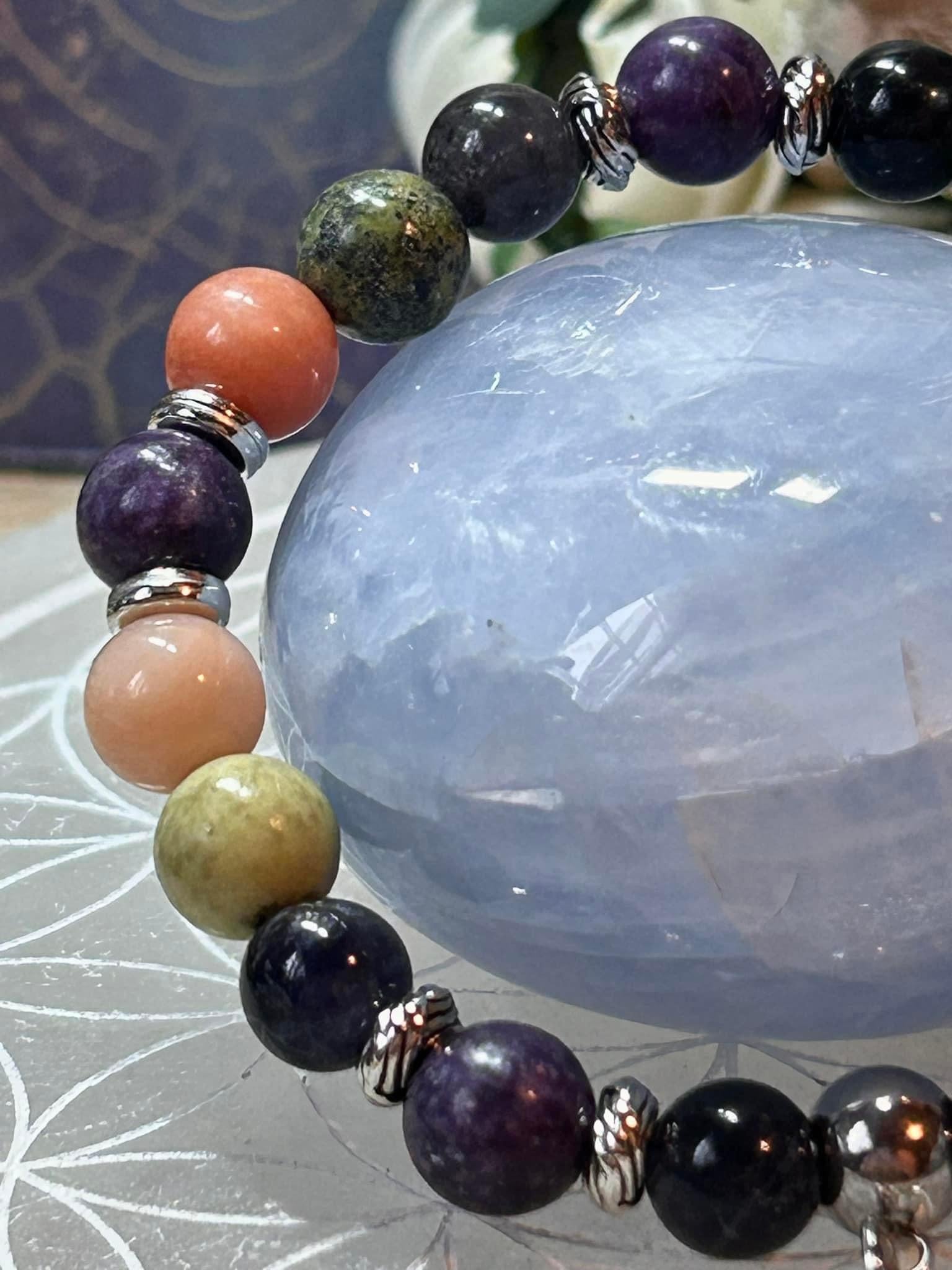 Elle favorise la visualisation et facilite les voyages astraux. Elle aide à prendre des décisions et développe clarté d’esprit et intuition.