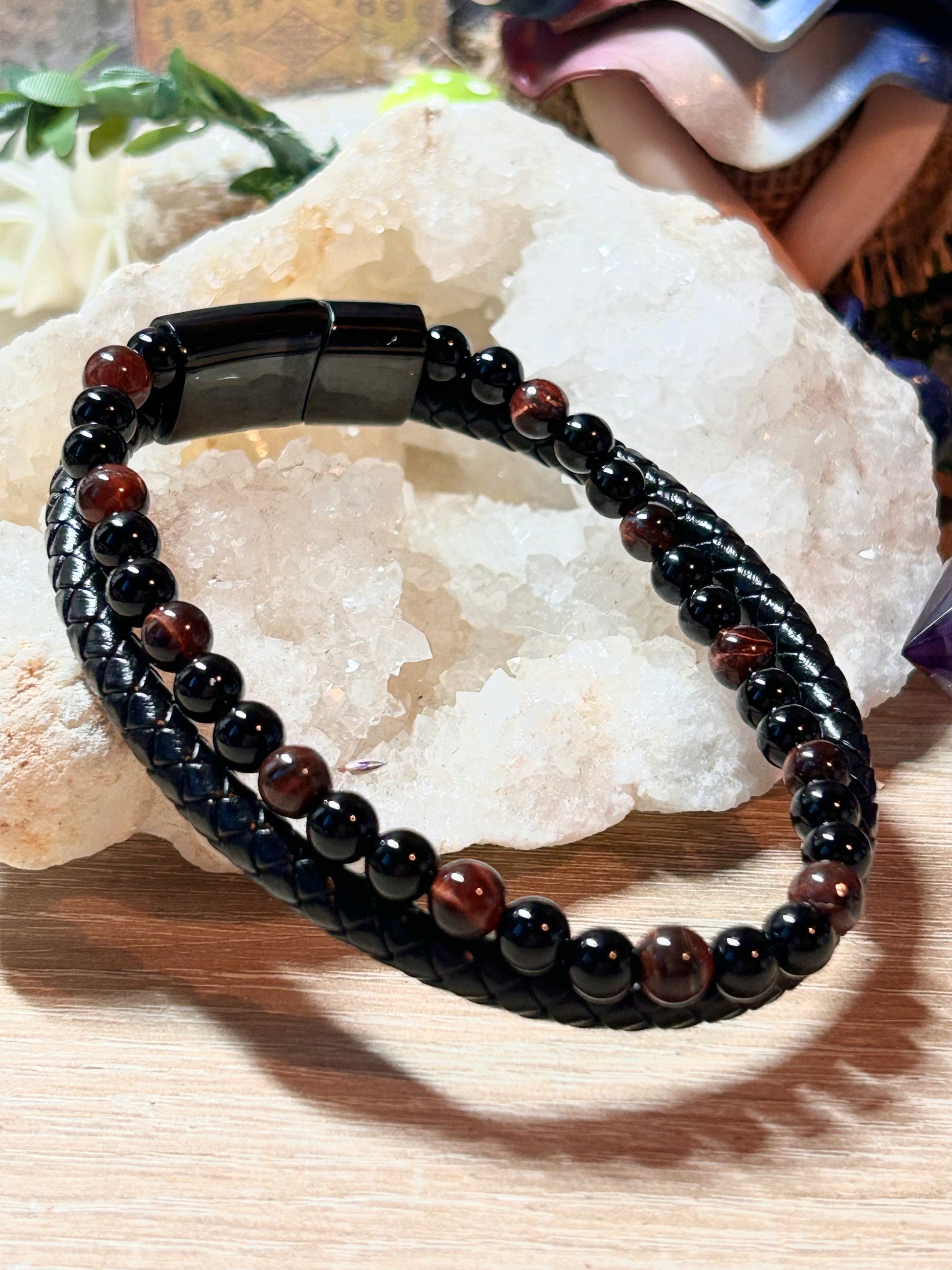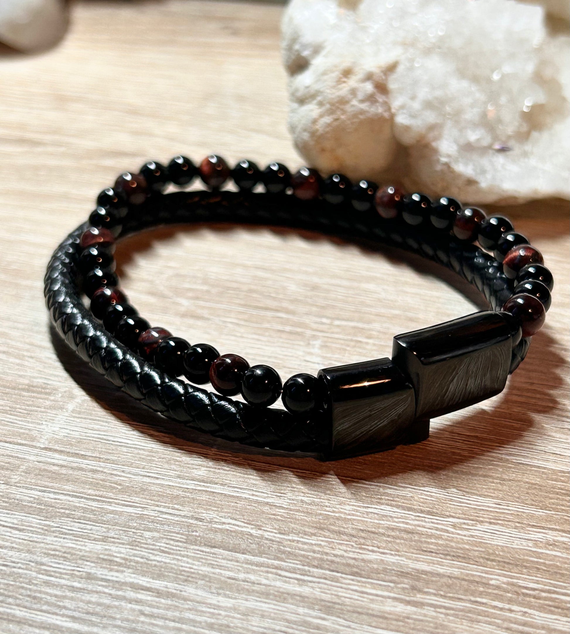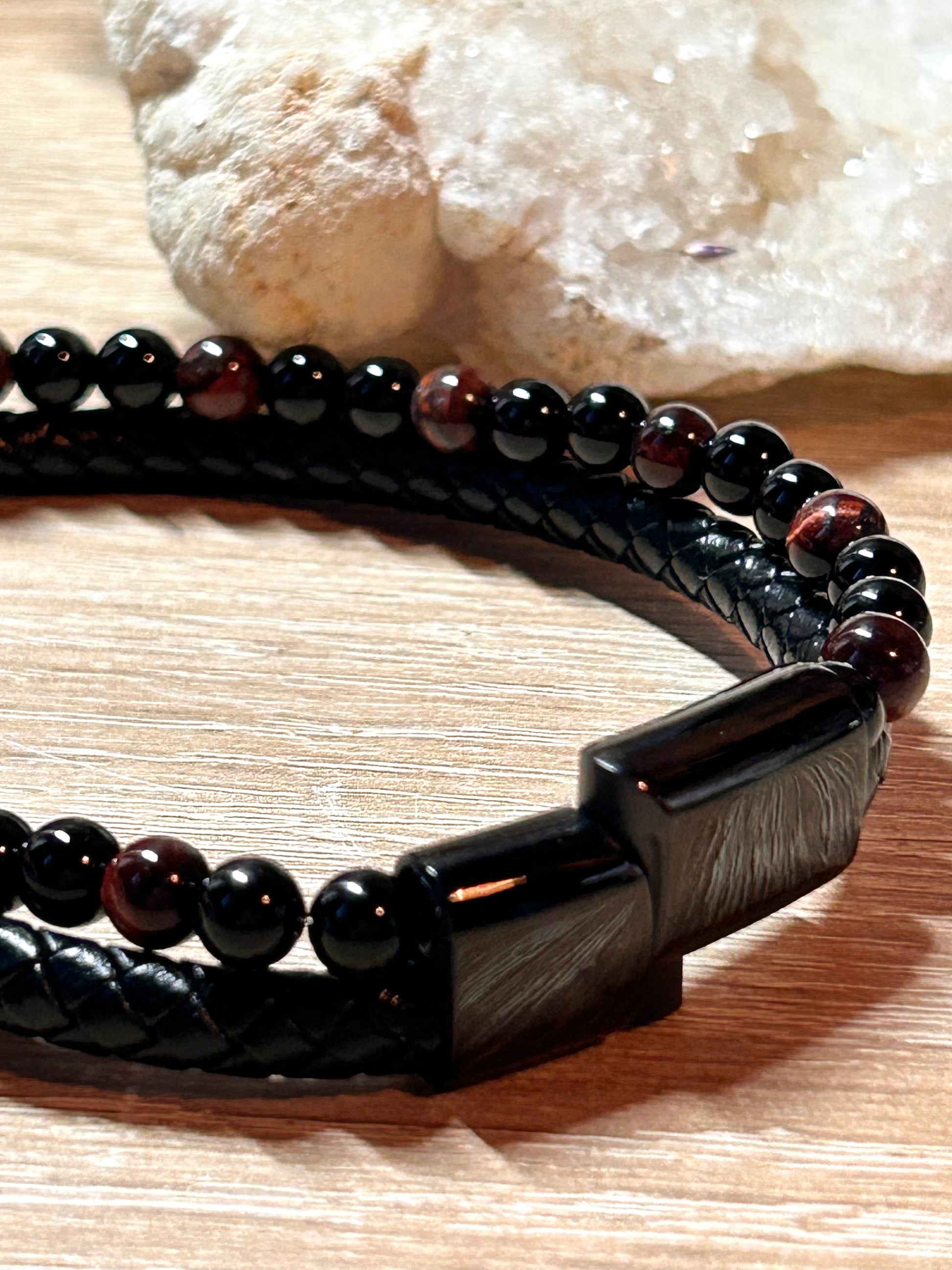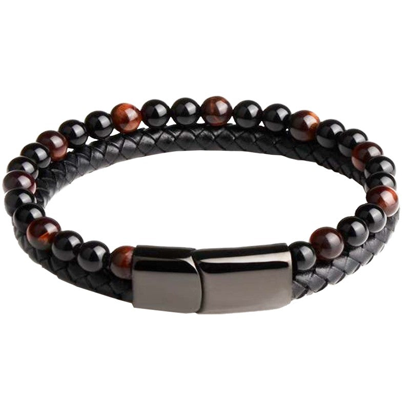 CUIR ET PERLES, FERMOIR EN ACIER INOXYDABLE BRACELET HOMME