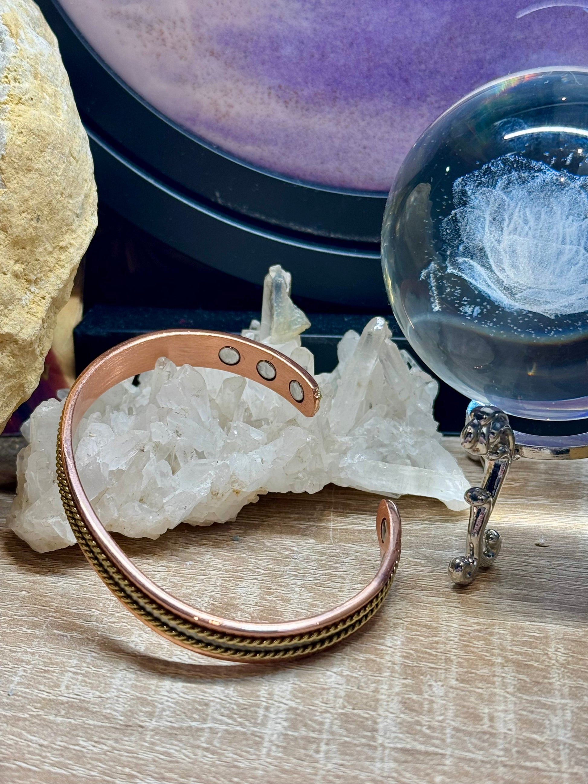 Le bracelet cuivre avec aimants apaise le stress, et rééquilibre les énergies, améliore la circulation sanguine.
