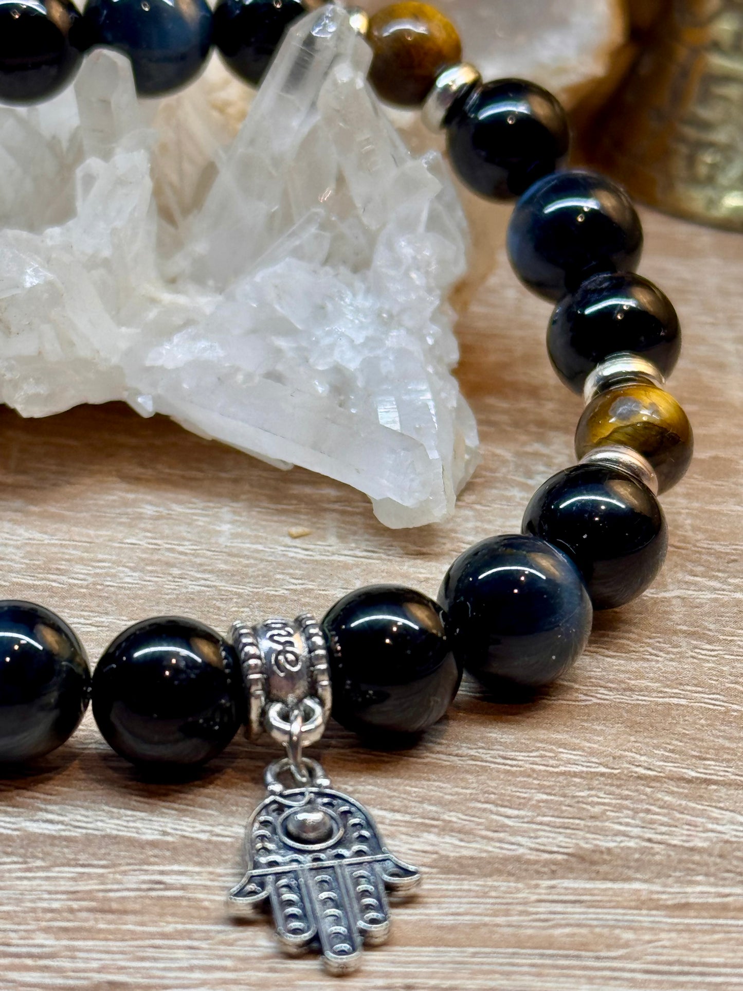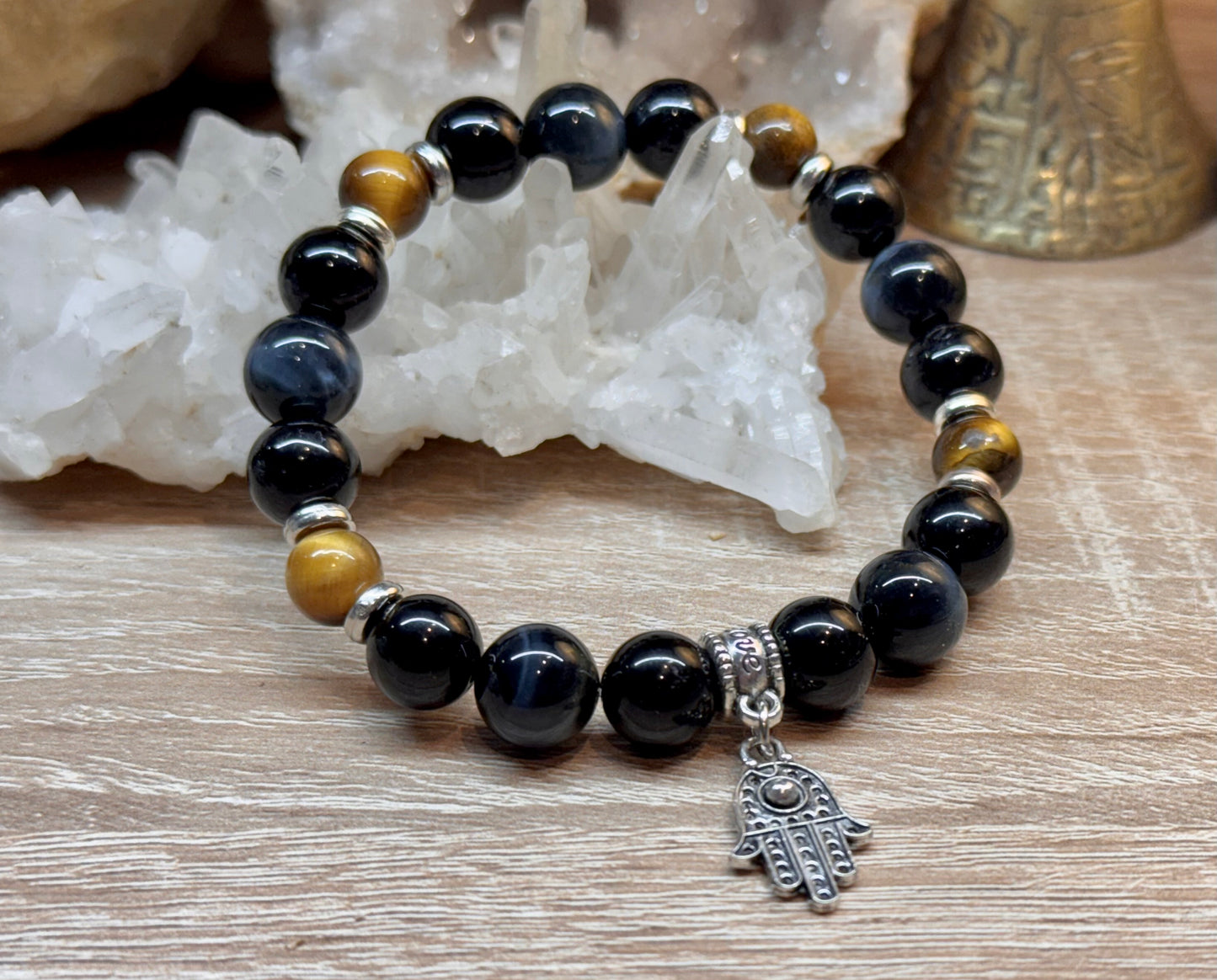 Bracelet Œil de faucon, Œil de tigre et Tourmaline "Tolérance, Dépassement des peurs, Ancrage"