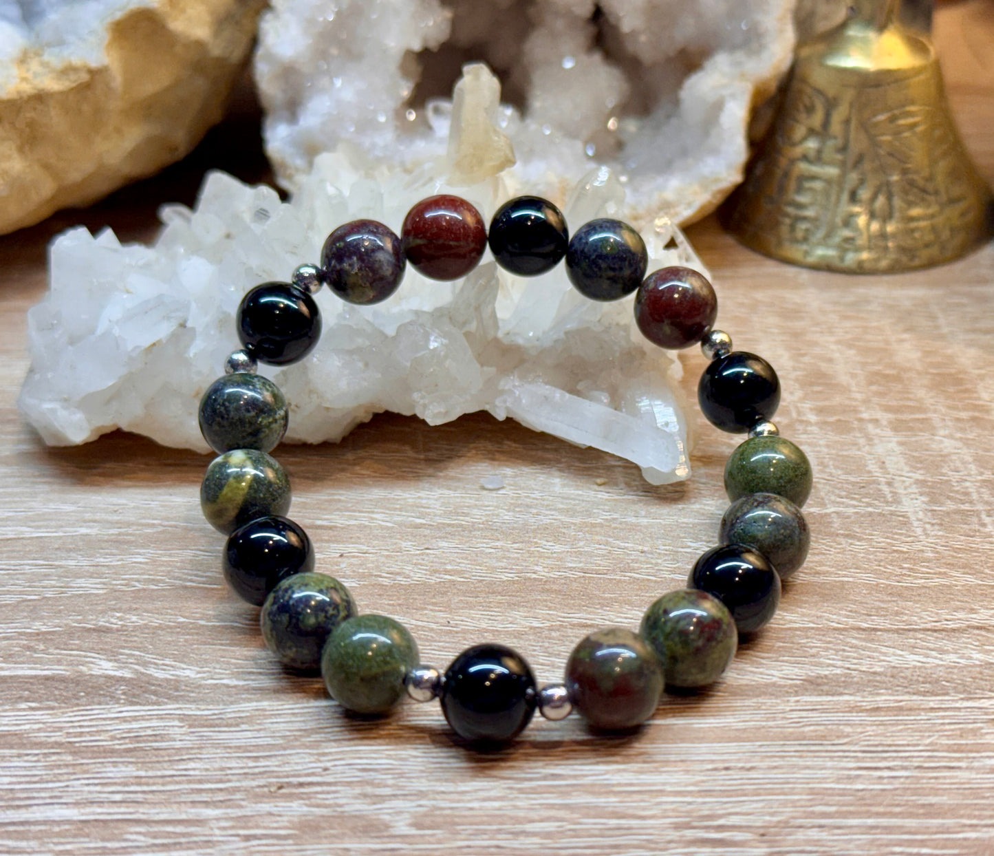 Plan spirituel : La dragon stone est une pierre qui aide à grandir spirituellement. Bonne pierre pour la méditation éveiller progressivement notre kundalini.