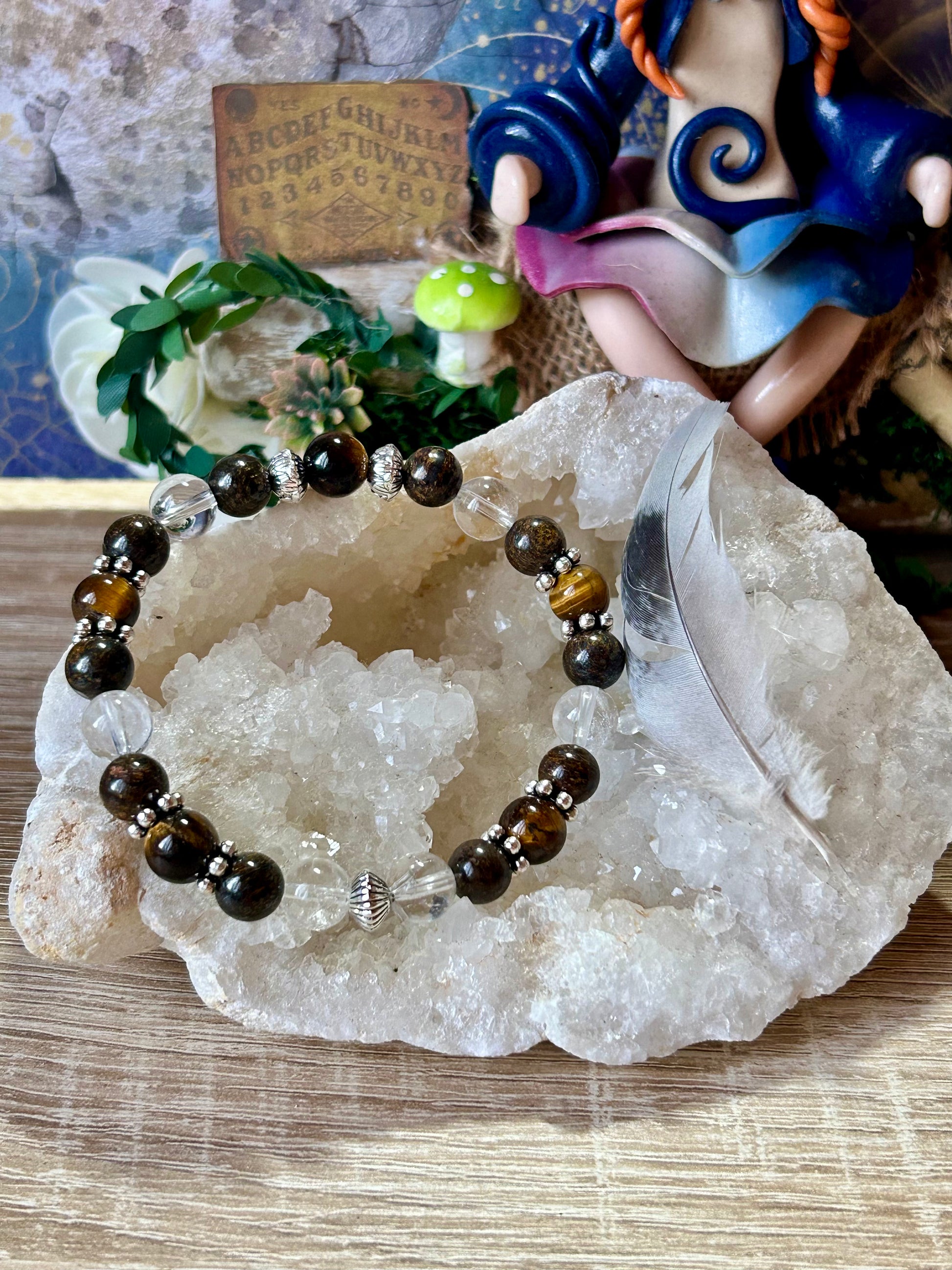 Plan spirituel : Elle a un effet miroir, elle renvoie les énergies négatives à son emmeteur et lui fait prendre conscience du mal qu’il fait subir à autrui. Pour les hypersensibles ou les personnes qui débordent d’empathie, l’œil de tigre aide à dissocier ses propres émotions de celles de son entourage.