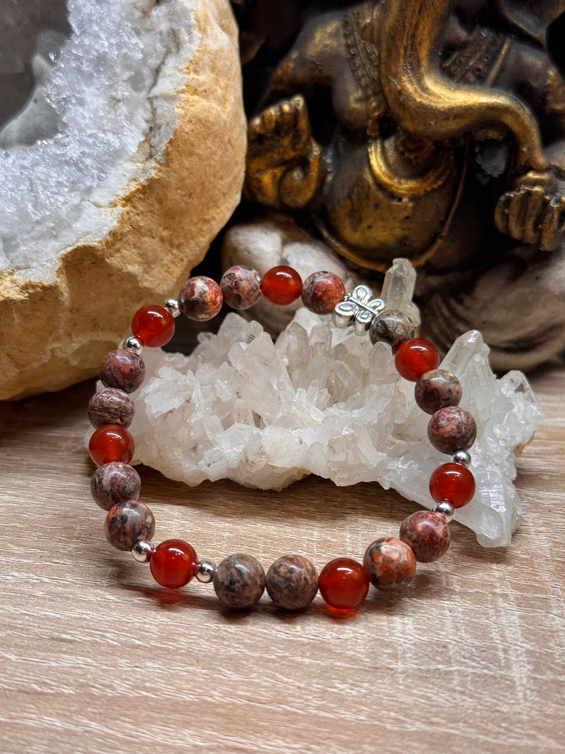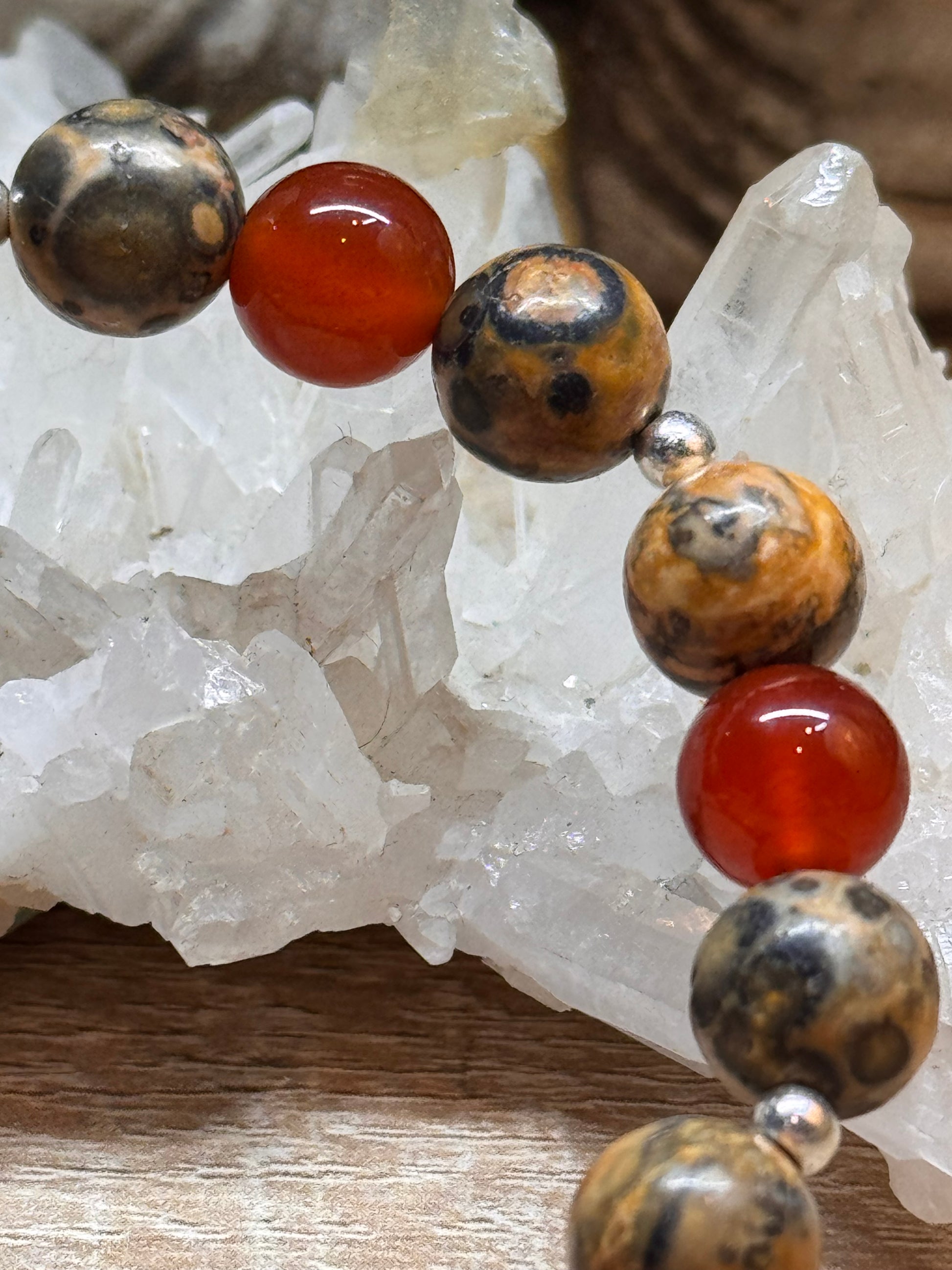 Plan émotionnel : Le jaspe léopard permet d’acquérir de la souplesse aussi bien physique que spirituelle, d’apprendre le sens de la discrétion et de la diplomatie. Elle aide à chasser la peur du ventre. Cette pierre facilite l’intégration aux groupes, il est très adaptée aux enfants et adolescents, notamment pour les aider à mieux s’intégrer au milieu scolaire.