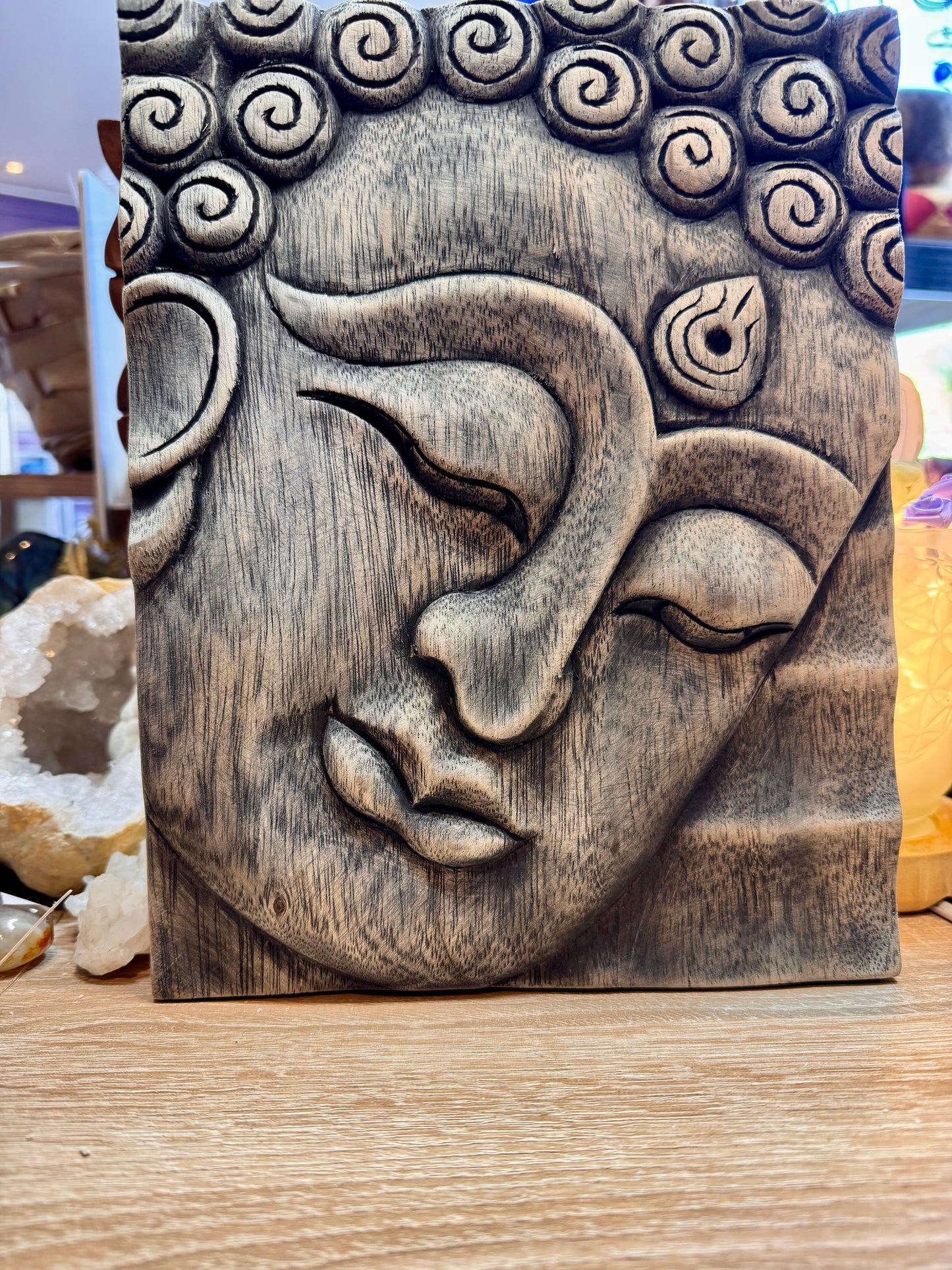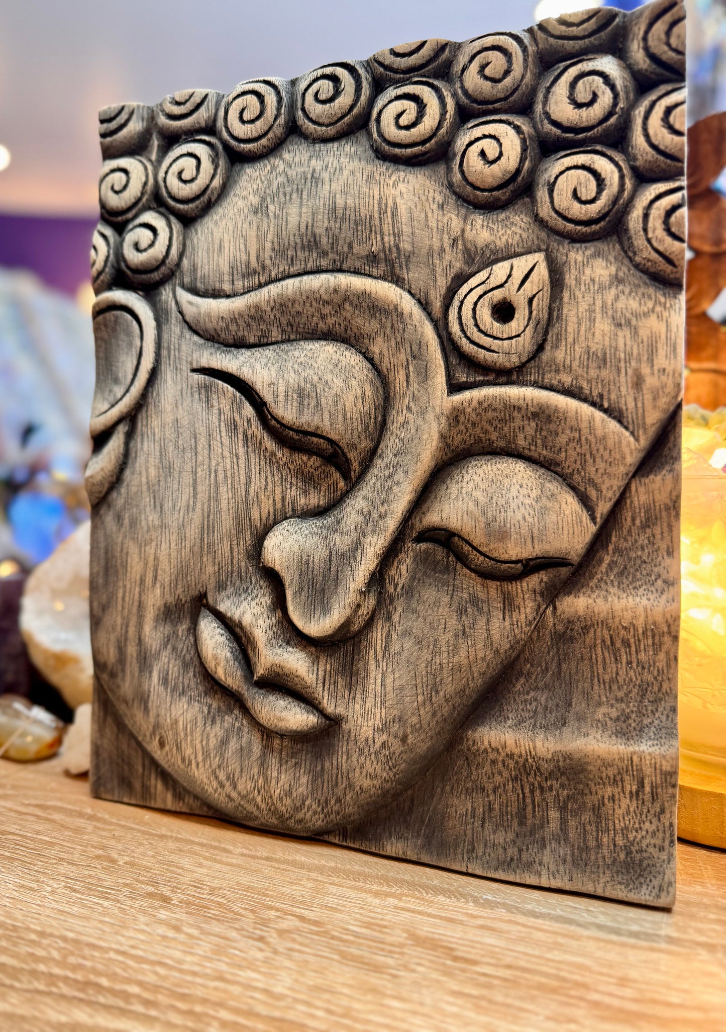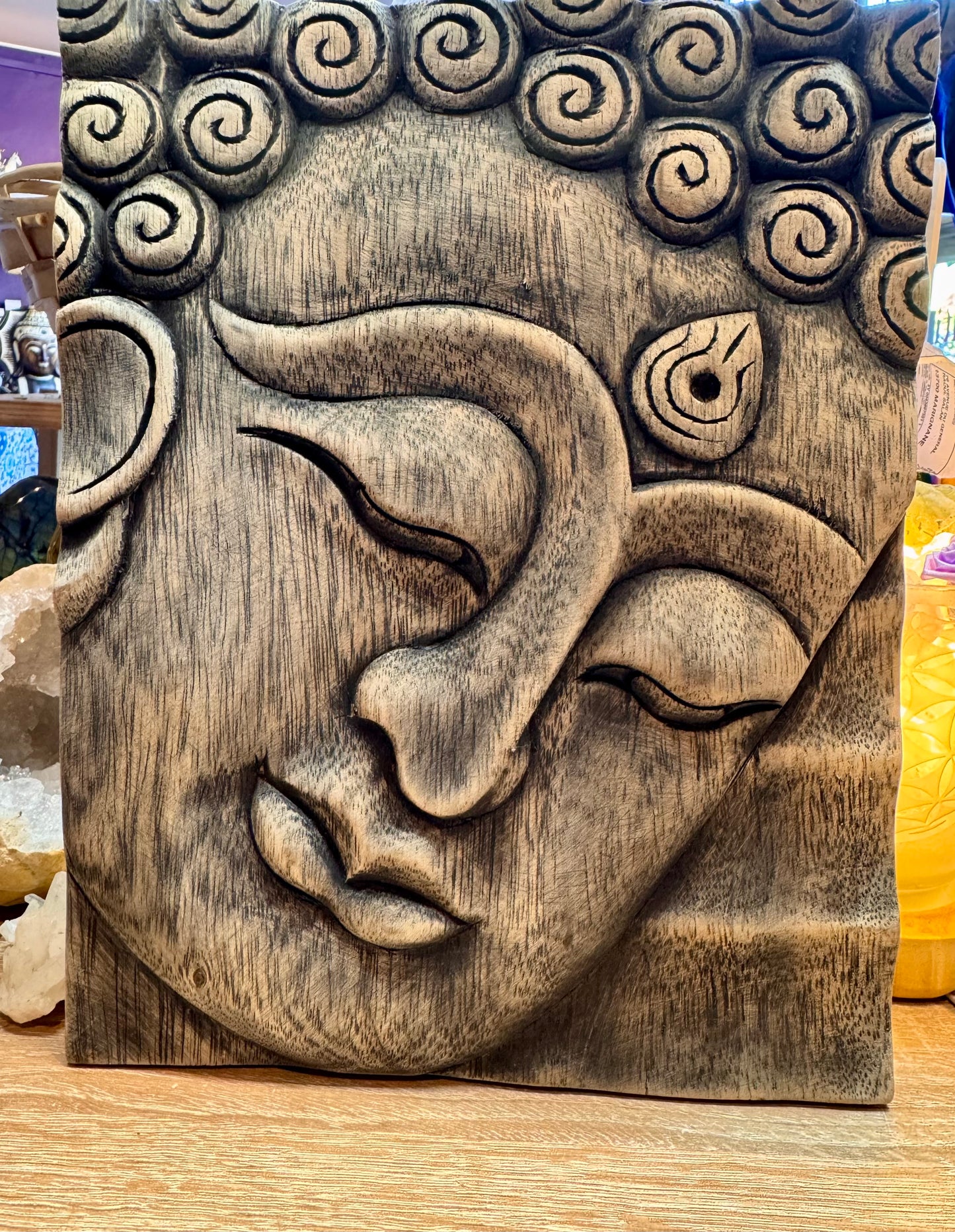 Cadre Bouddha en bois sculpté