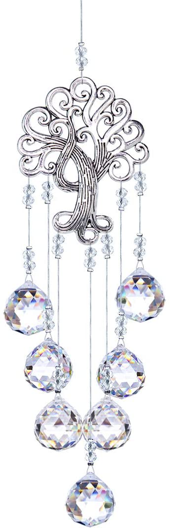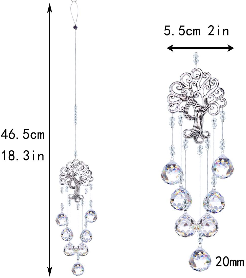Pendentif Arbre de Vie en métal, Prisme de Boule de Verre Suspendu