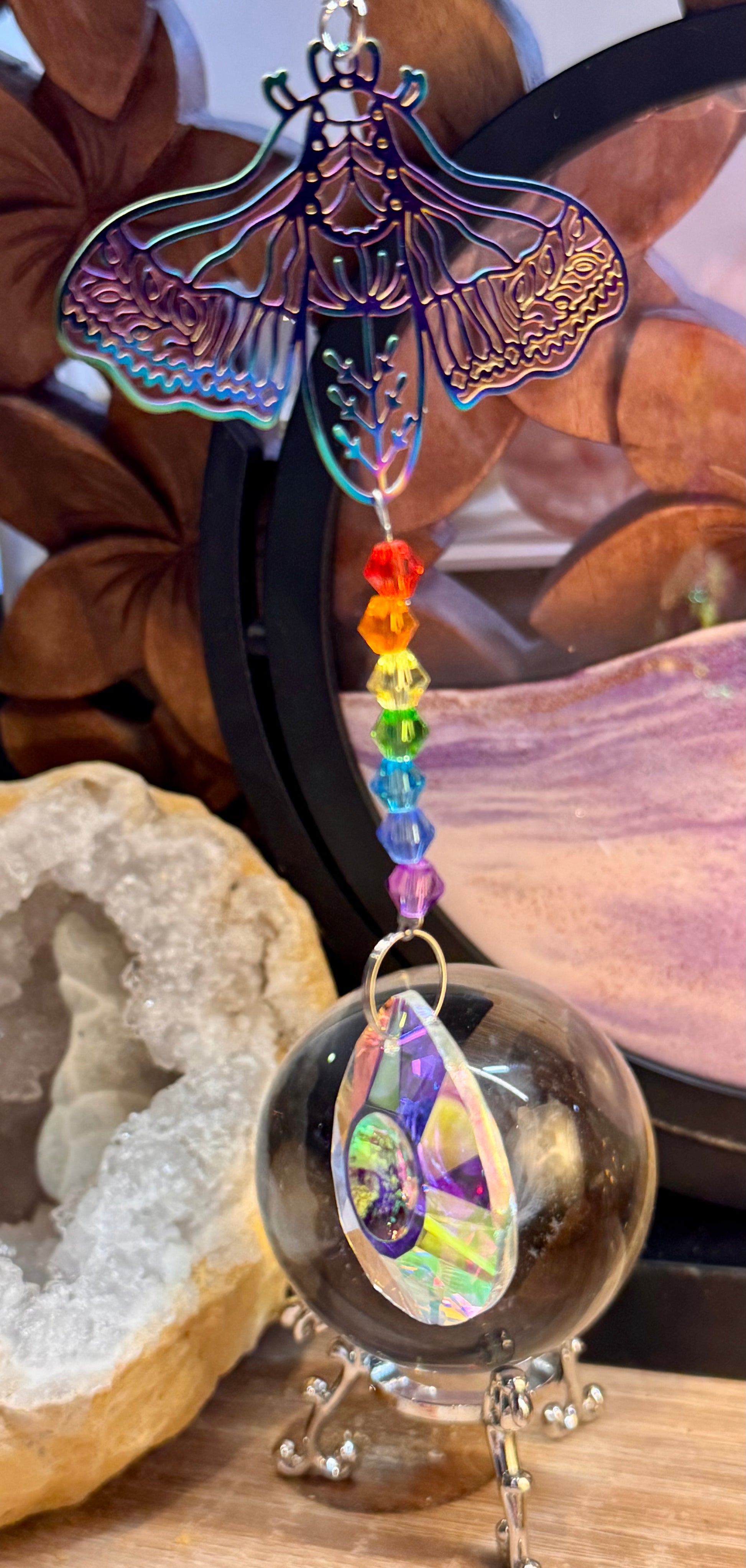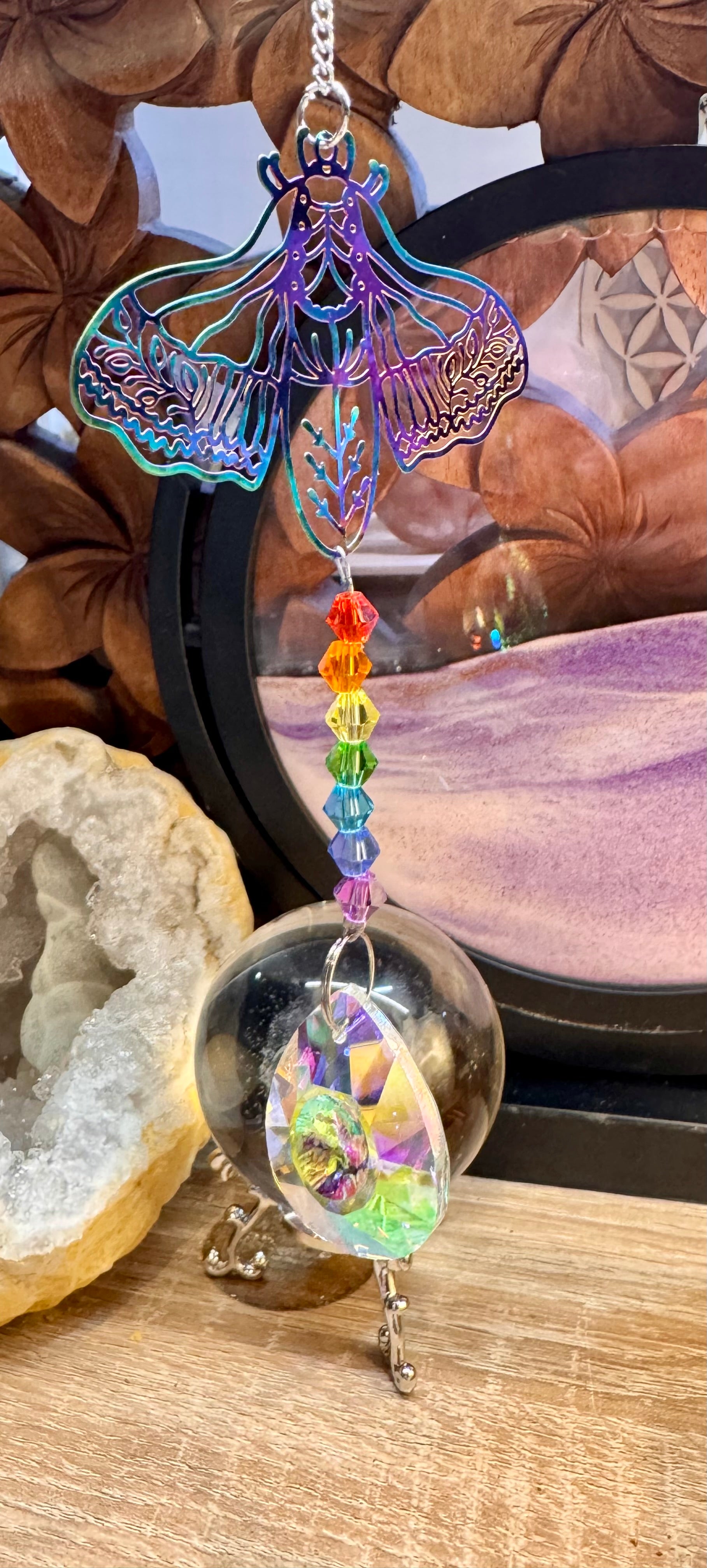 Longueur chaînette avec perles de verre 7 chakras et boule de cristal (verre K9) 7cm