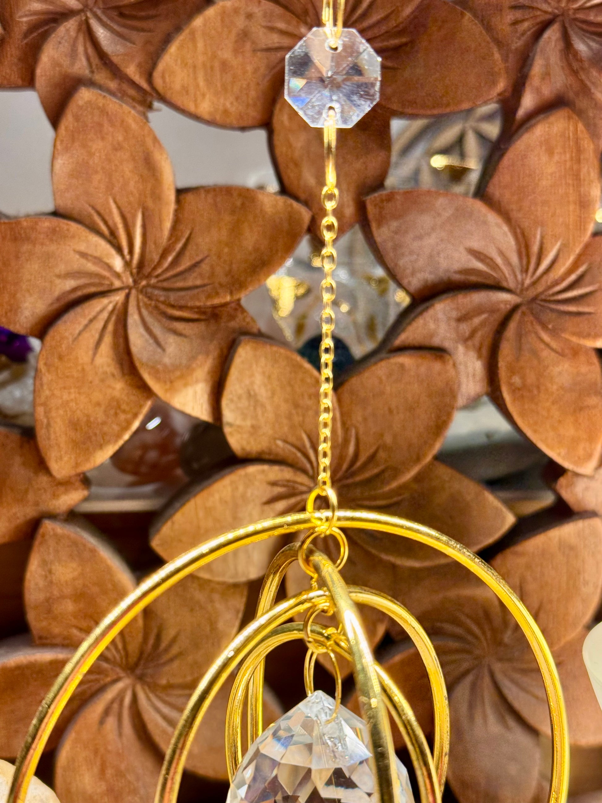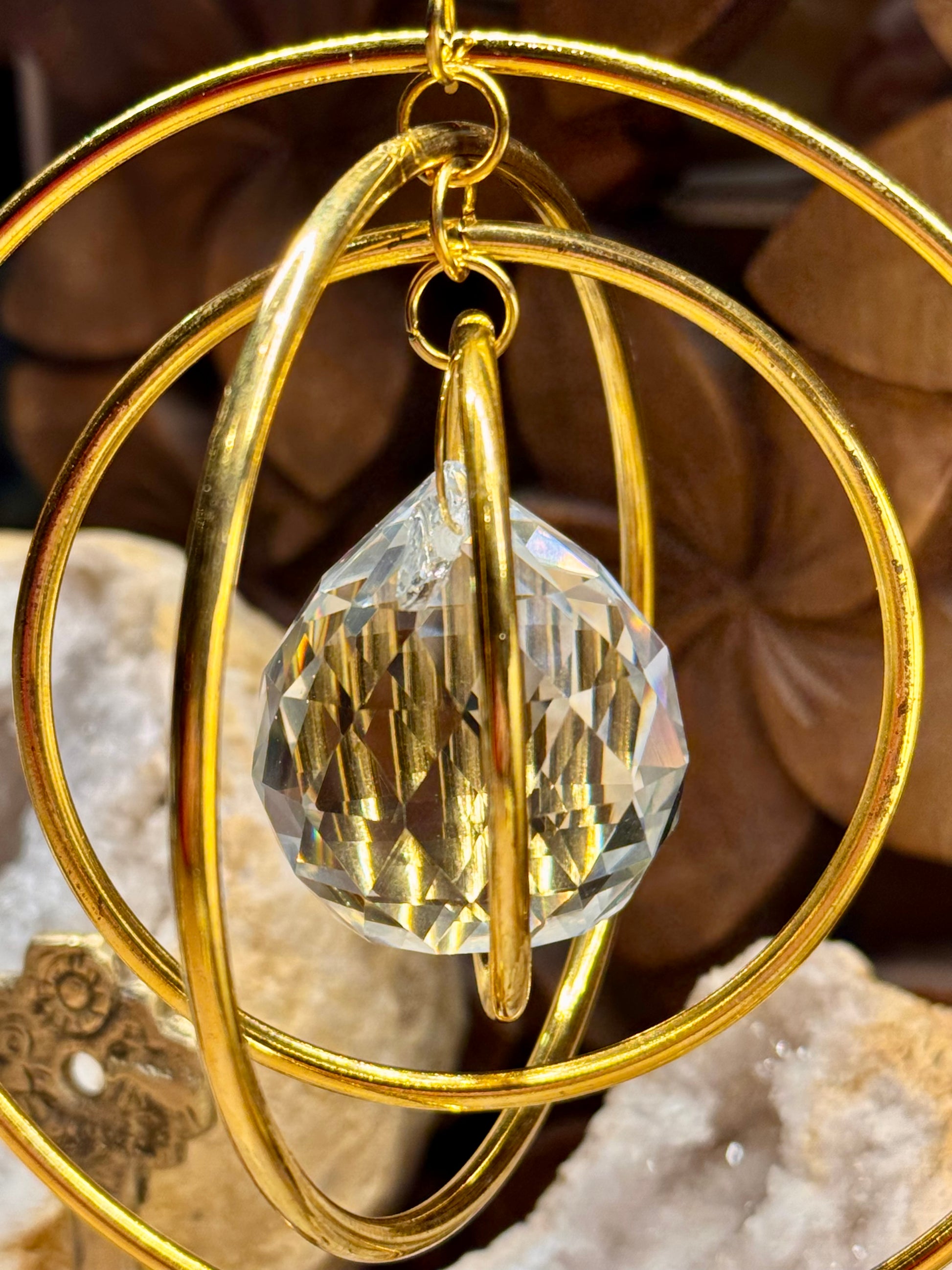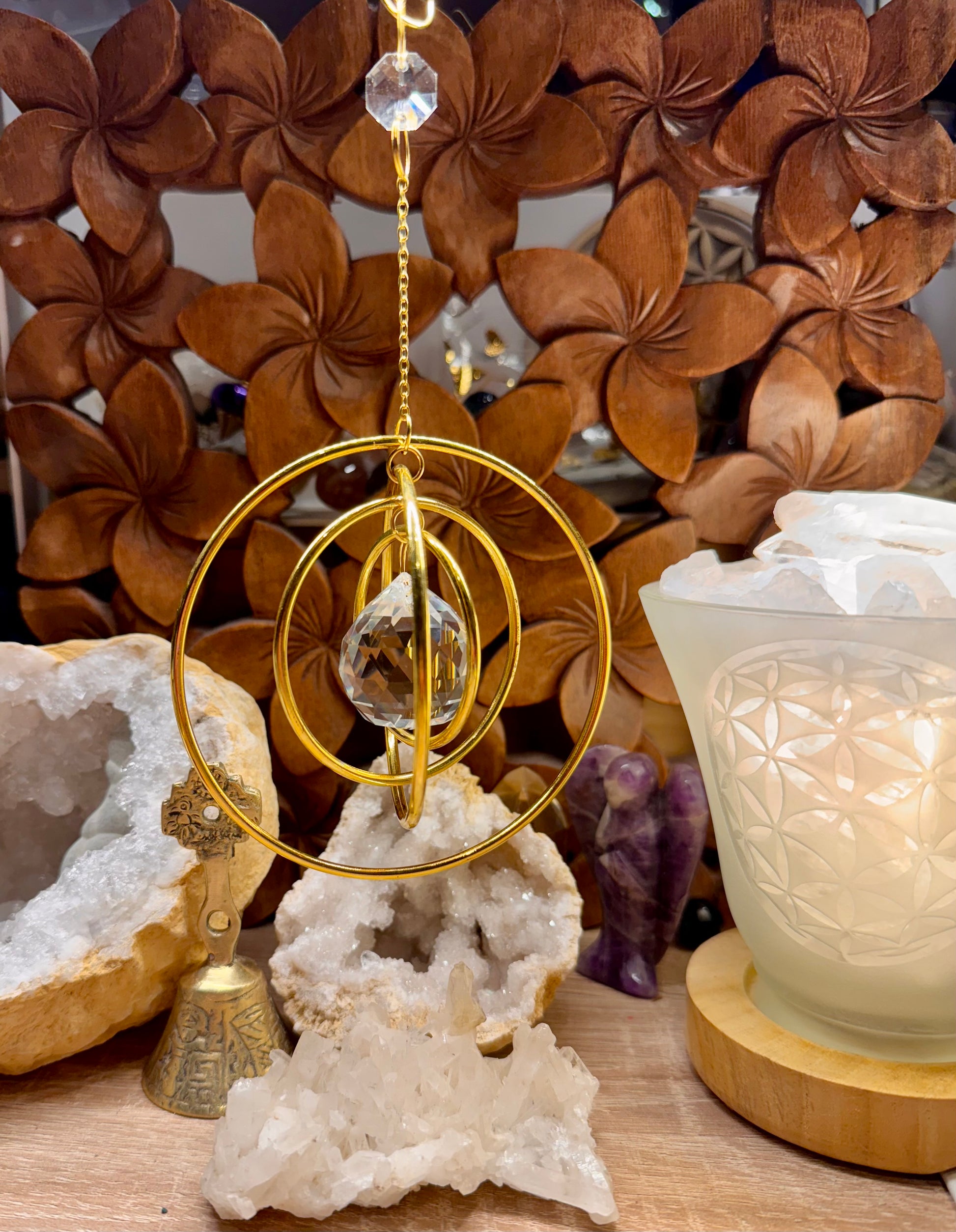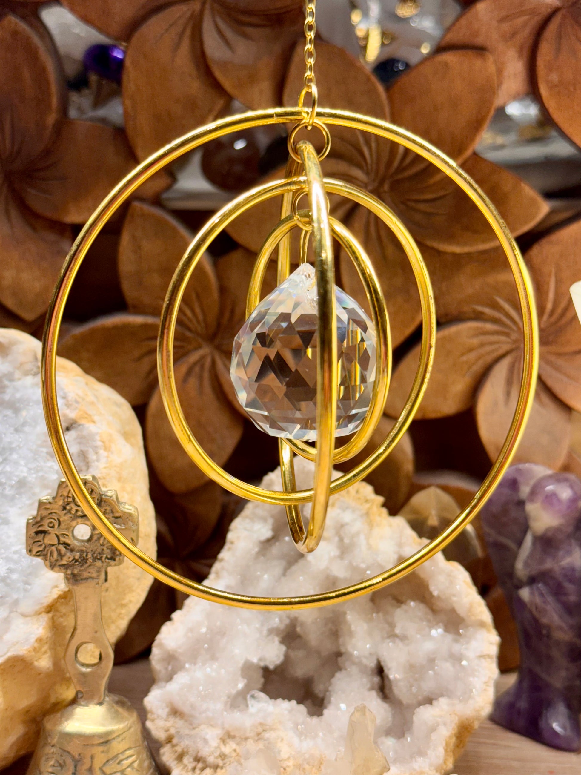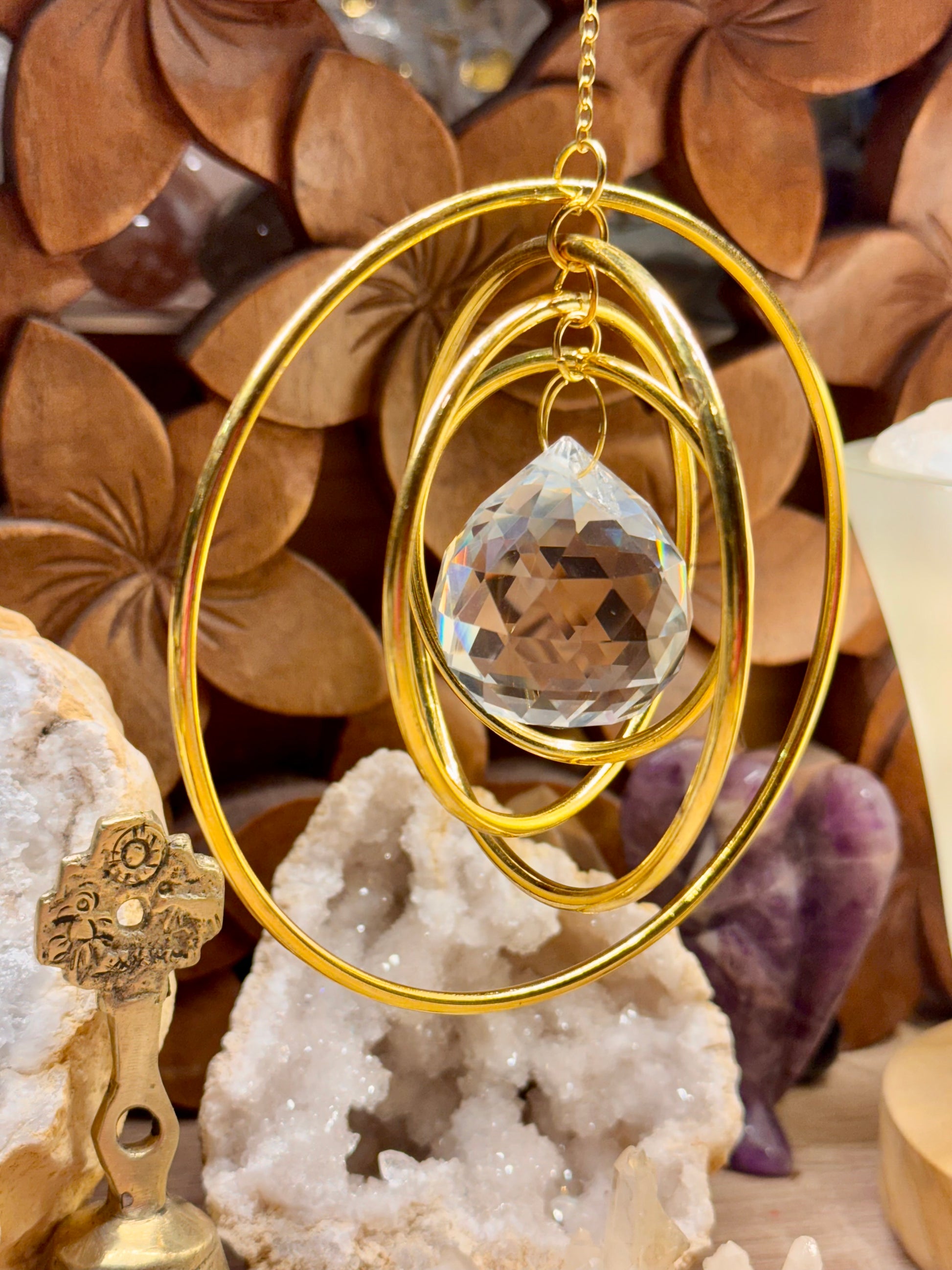 Magnifique pendentif arc-en-ciel – Combiné au romantisme des galaxies cosmiques, quatre anneaux rotatifs symbolisent les planètes cosmiques autour du soleil et signifient l'éternité de l'amour. Les prismes en cristal et les chaînes dorées en font un ornement de carillon éolien en verre.
