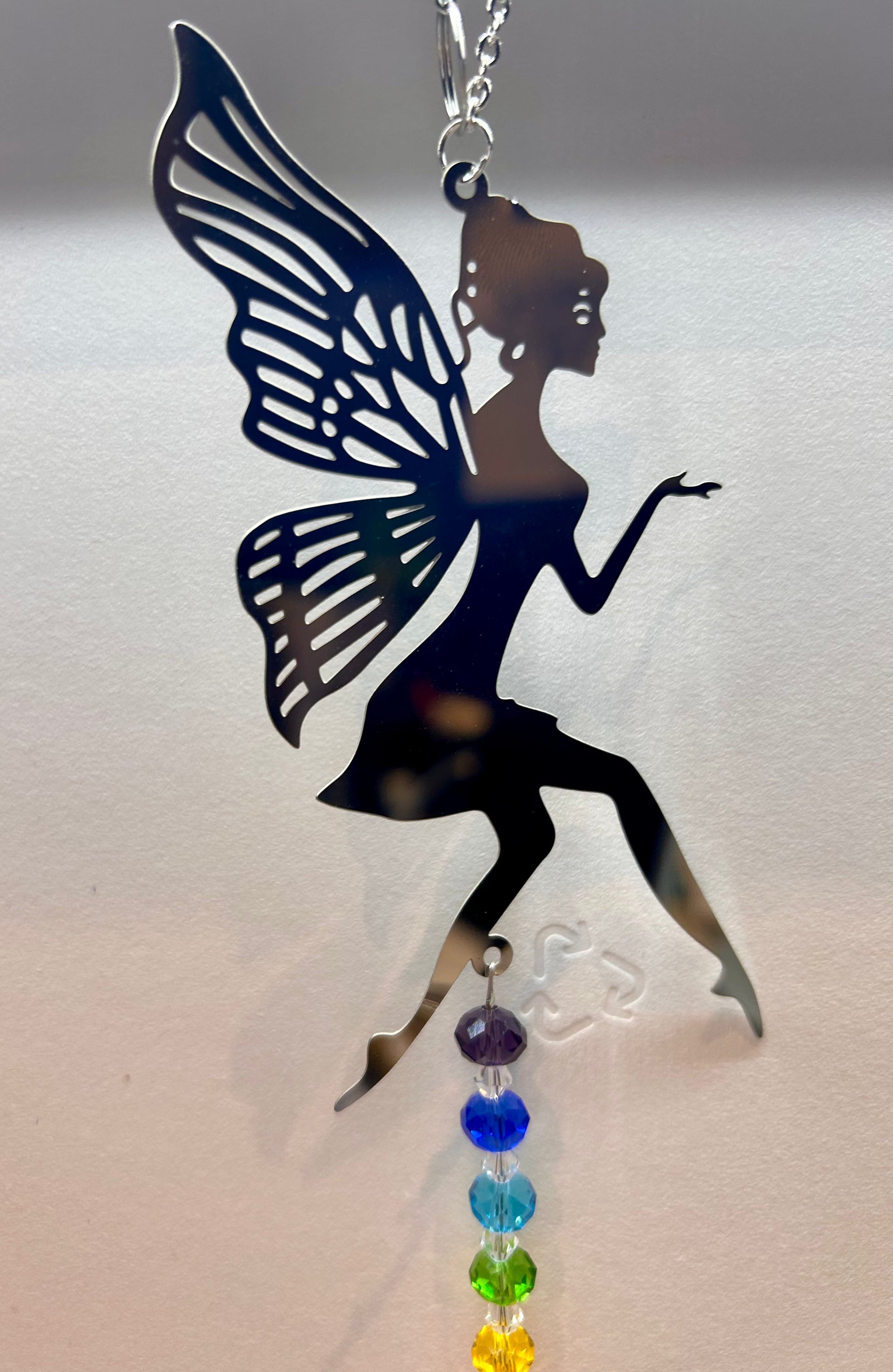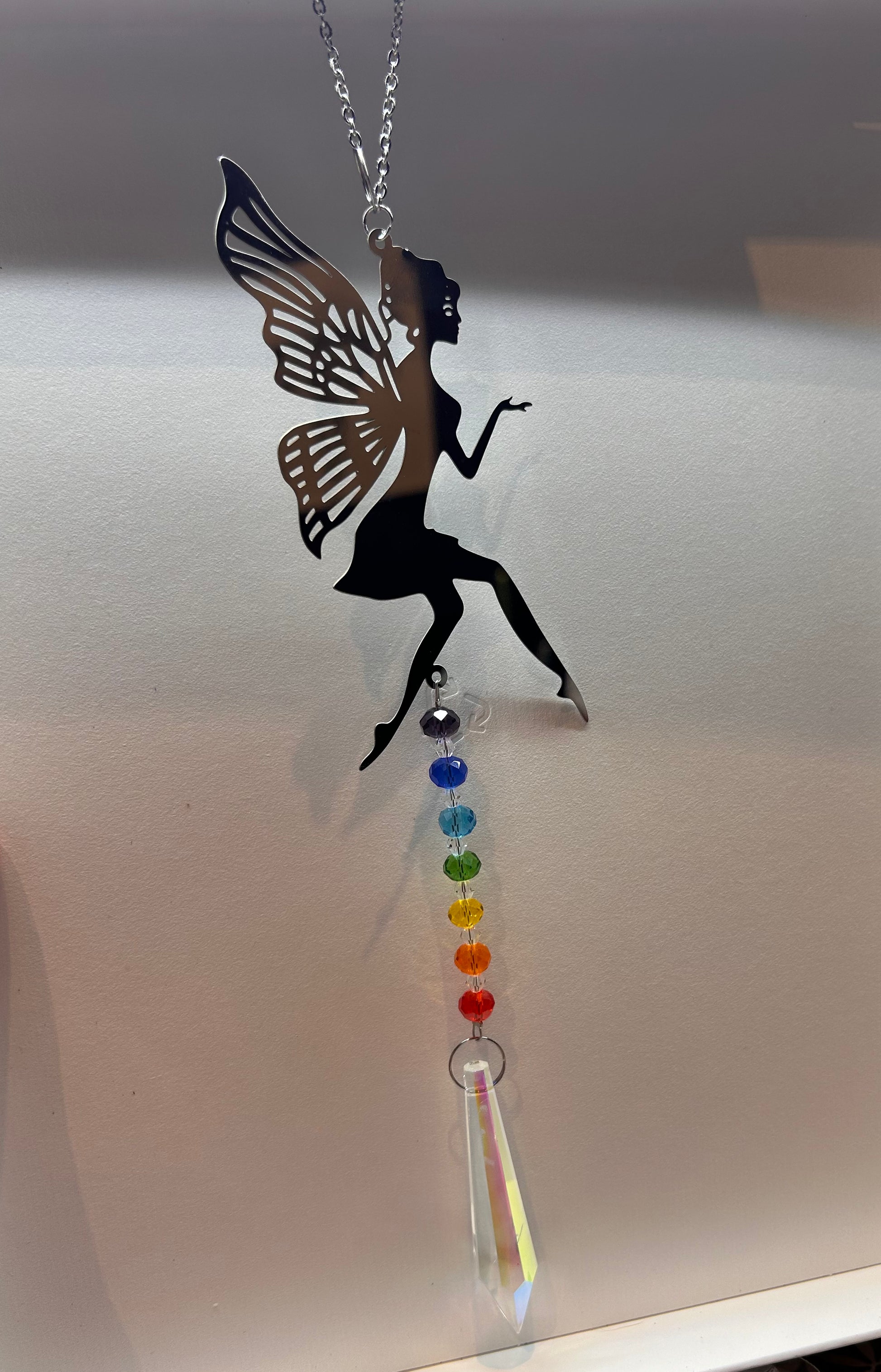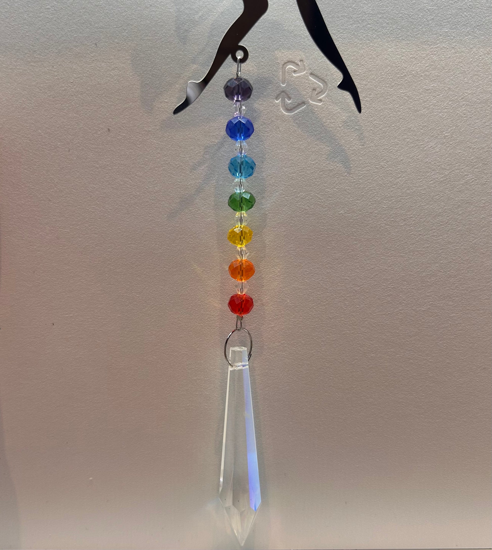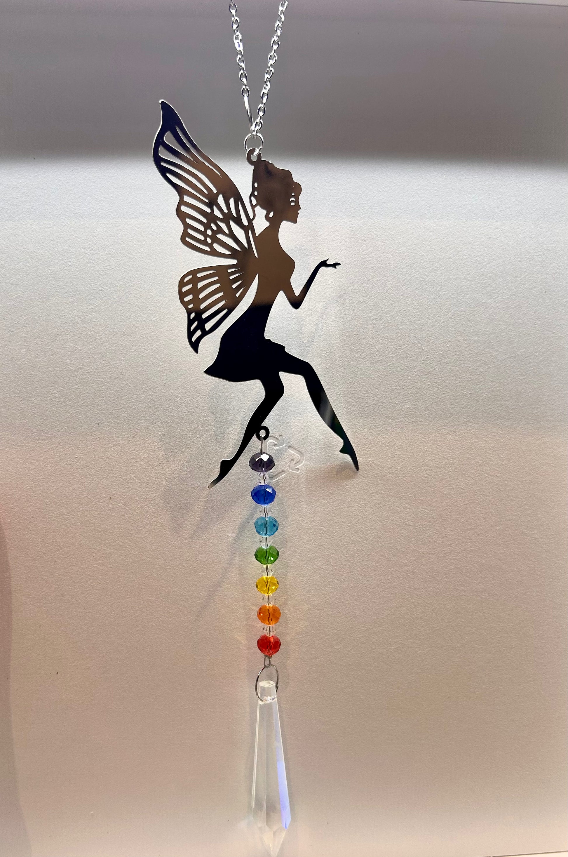 Longueur totale : fée, perles 7 chakras et pointe 22,5cm