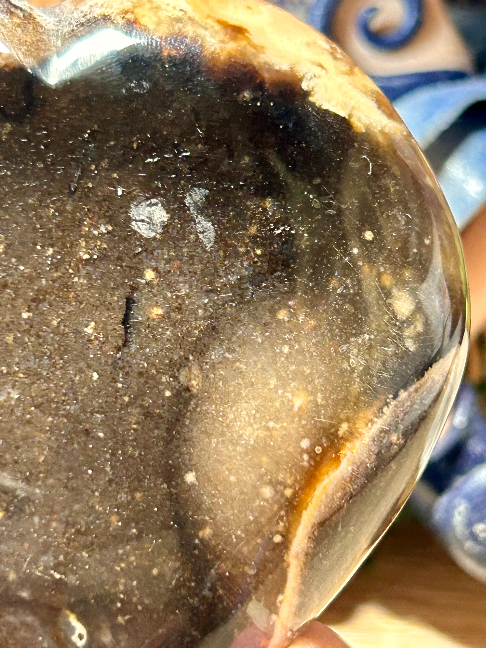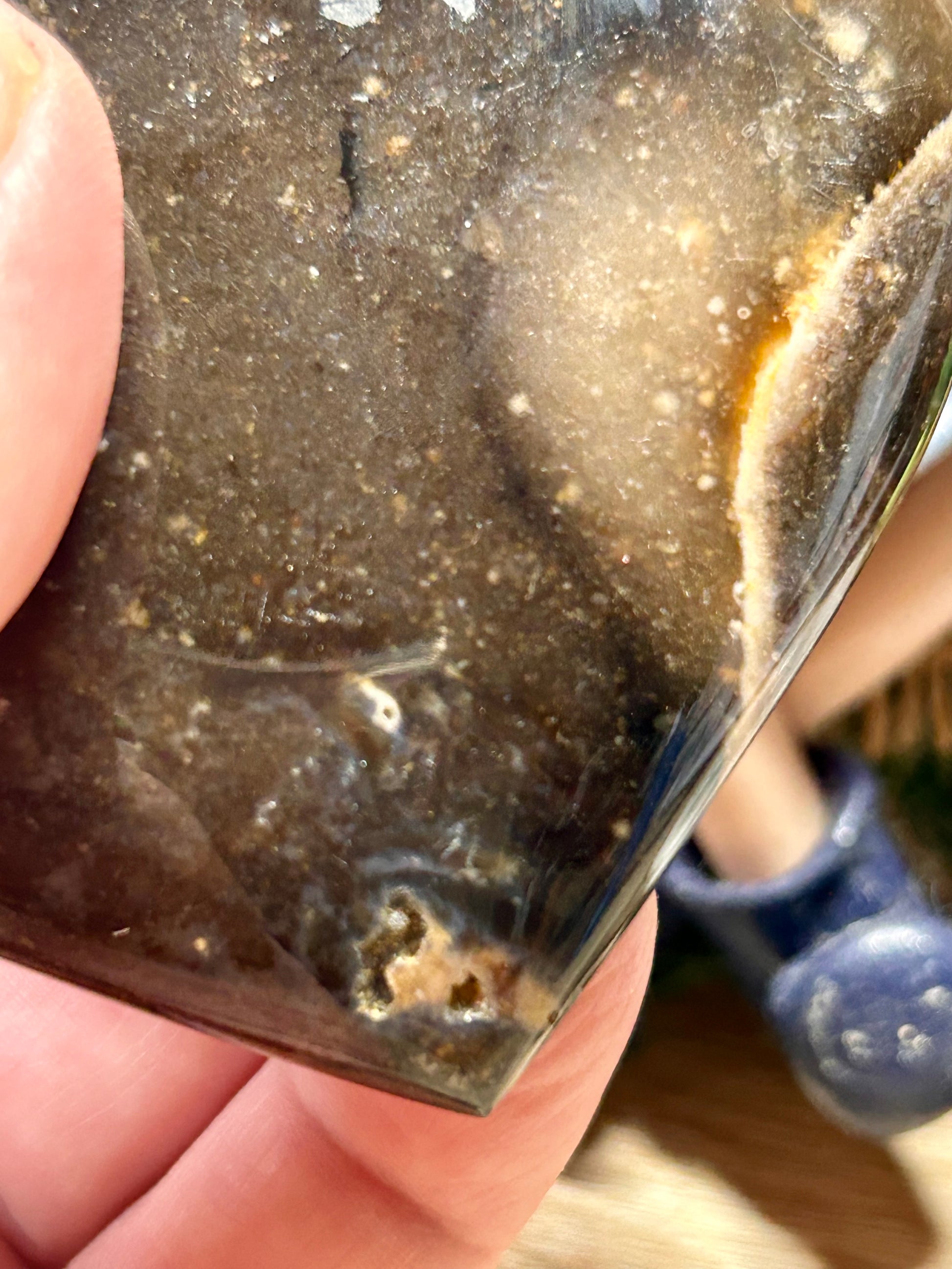 Prenez le temps de la sentir dans votre main, de sentir vos racines qui descendent jusqu'aux tréfonds de la Terre, la stabilité que ça vous donne, ainsi que cette assise, cette force verticale, cette densité terrestre dont vous avez besoin pour resté ancré. Directe et sans détour, avec bienveillance et puissance, l'opale noire vous aide aussi à vous sentir en sécurité et légitime d'exister.