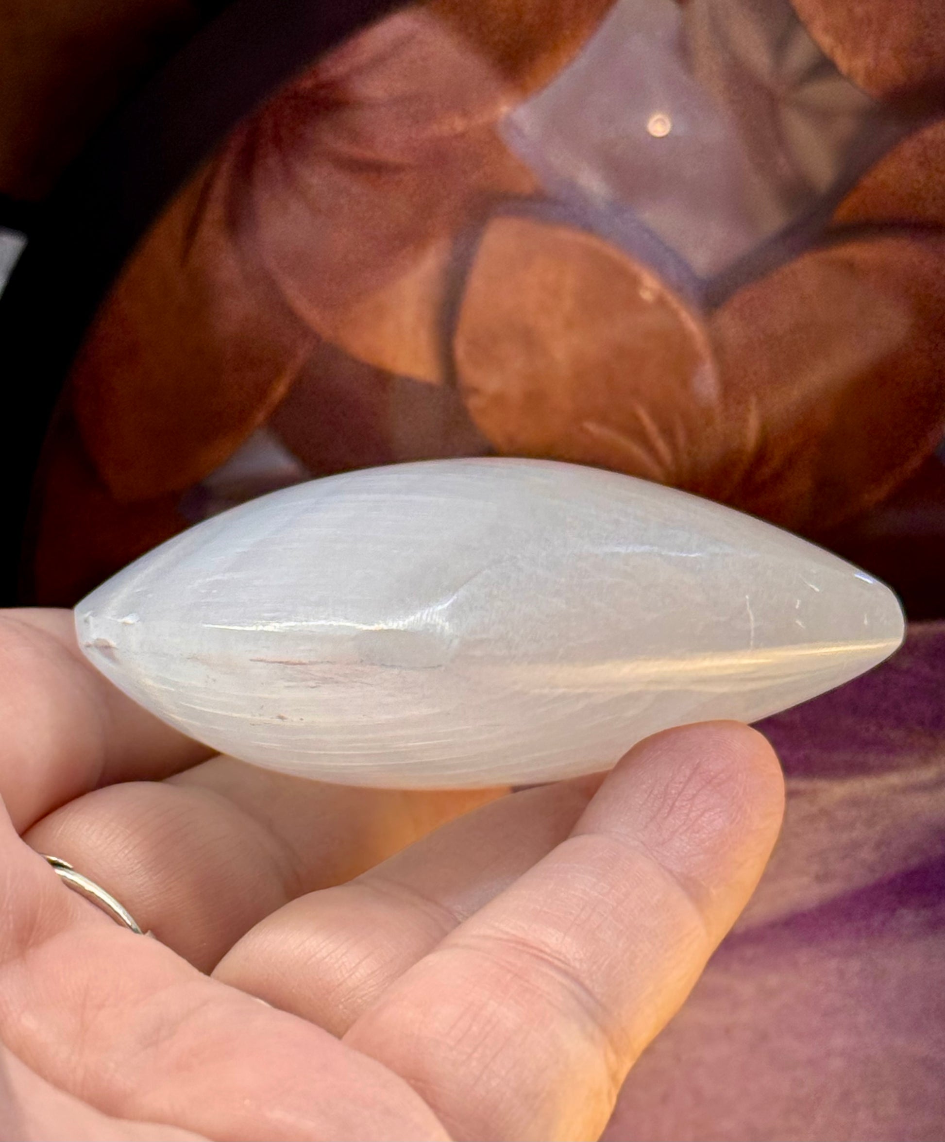 Plan spirituel : Une sélénite installée dans une maison apporte une ambiance sereine. Nettoie l’agitation et la colère dans un lieu. Placée à proximité d’un écran de télévision ou d’ordinateur elle absorbe la négativité. Elle aide à instaurer une sérénité intérieure propice à l’élévation de l’esprit et à la méditation.