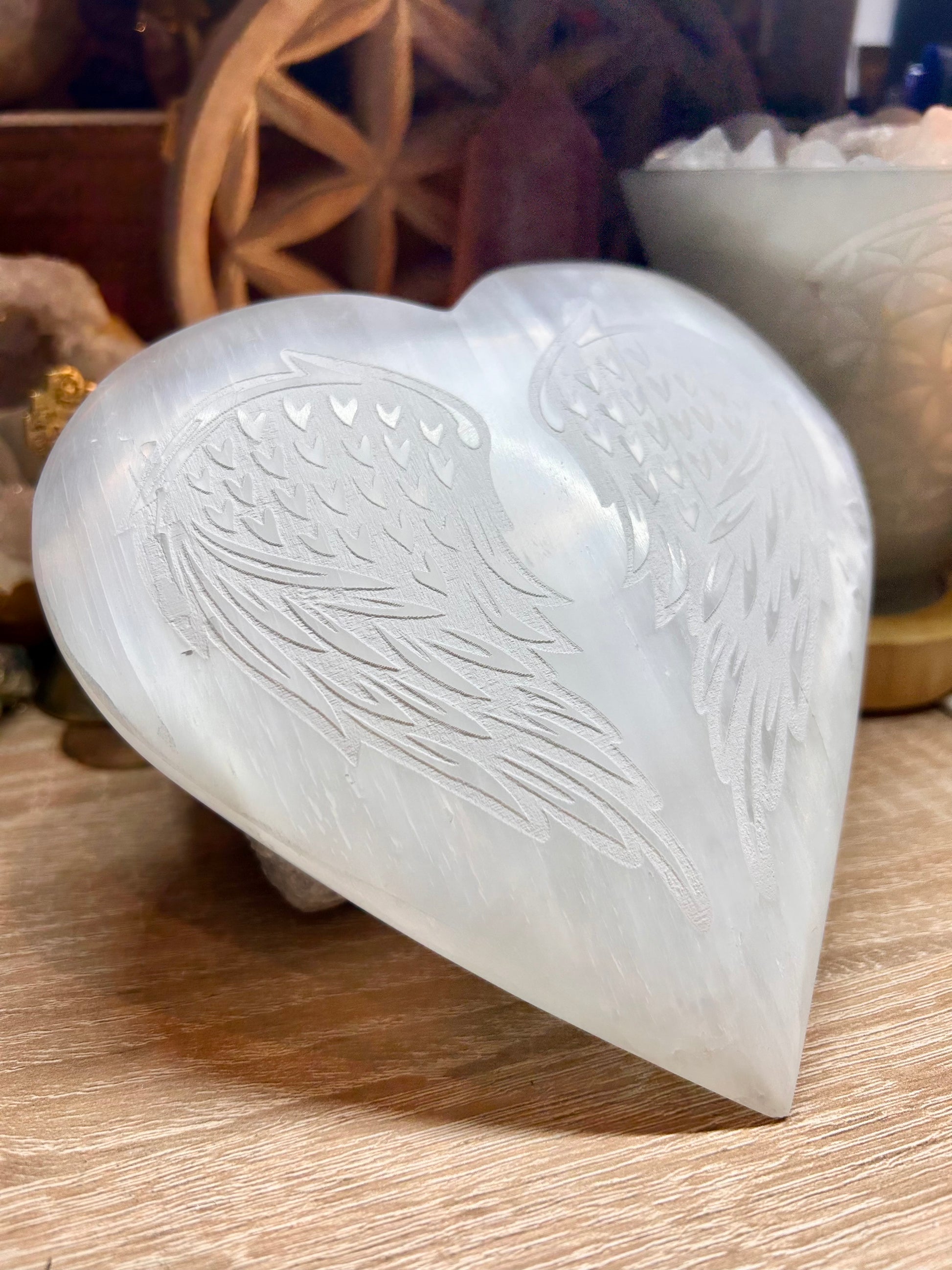 Plan émotionnel : Douce et féminine, la sélénite est une pierre Yin qui facilite le recentrage des chakras. Elle éclaircit les idées. Ce cristal aide à se détendre avant de dormir. Elle est très utile pour les femmes enceintes et les accompagne durant tout le processus en leur apportant bien-être et quiétude grâce à l’irradiation qu’elle émet. Elle est aussi bénéfique pour l’allaitement et pour calmer la fébrilité des enfants en jeune âge.