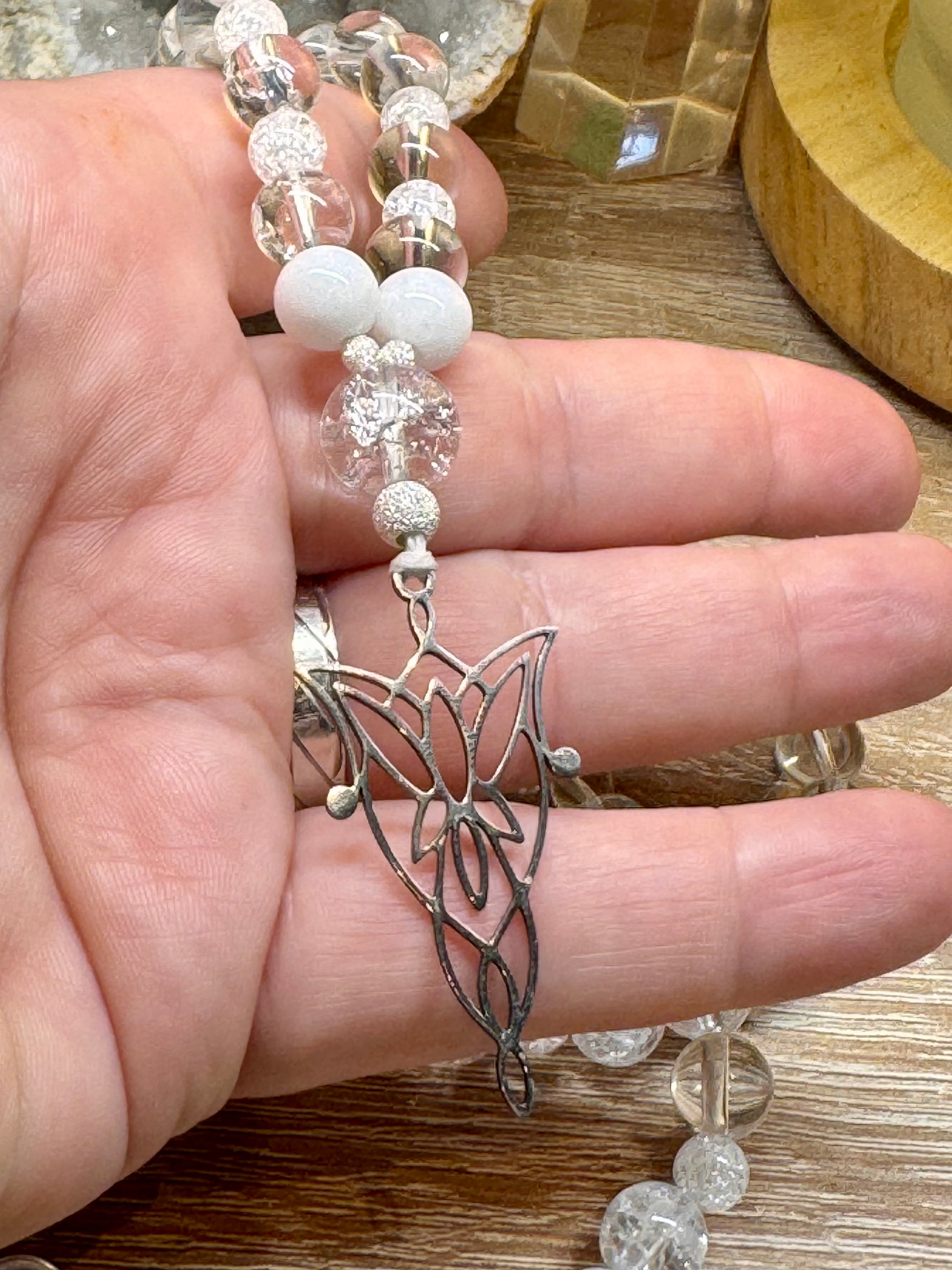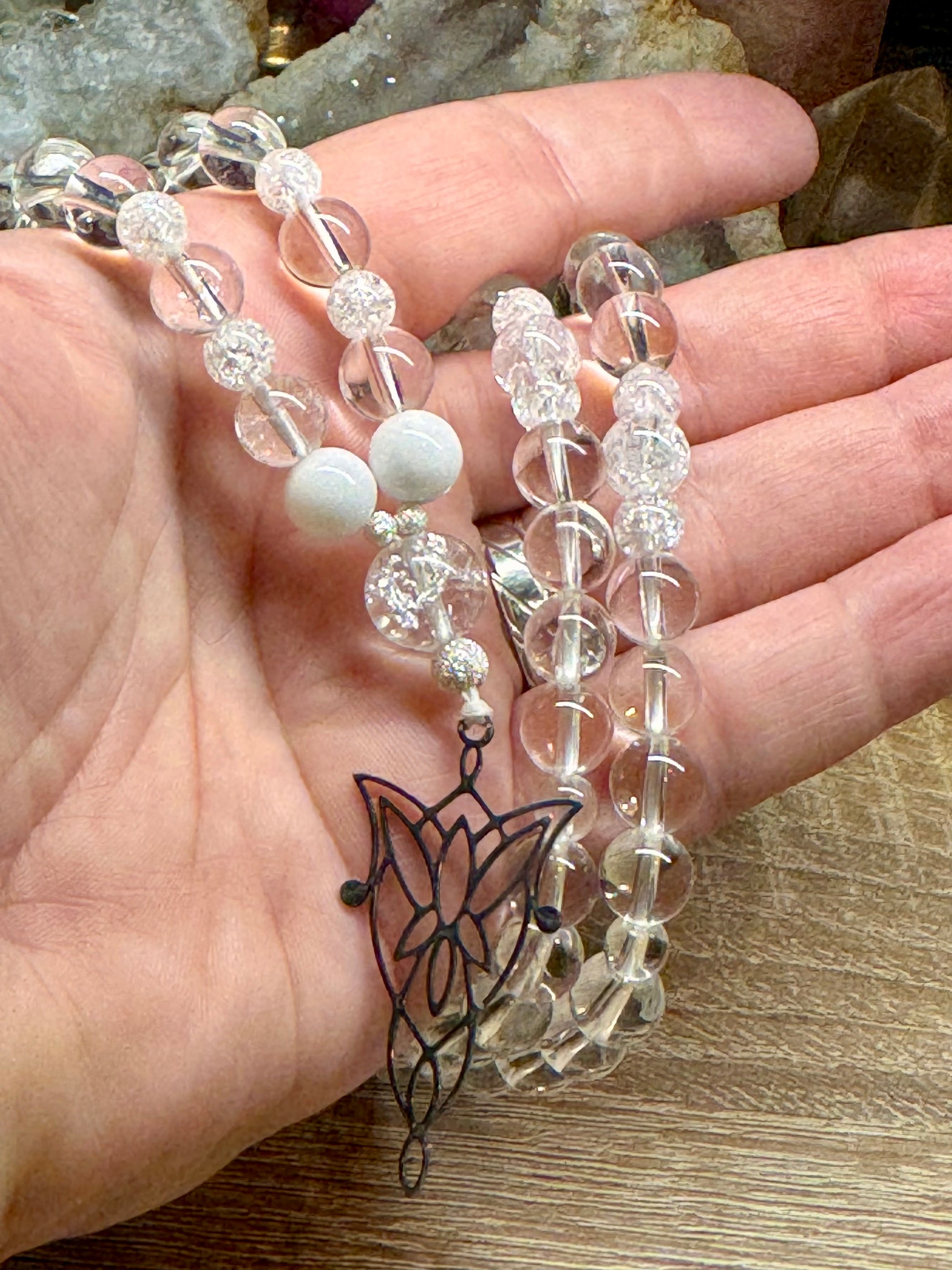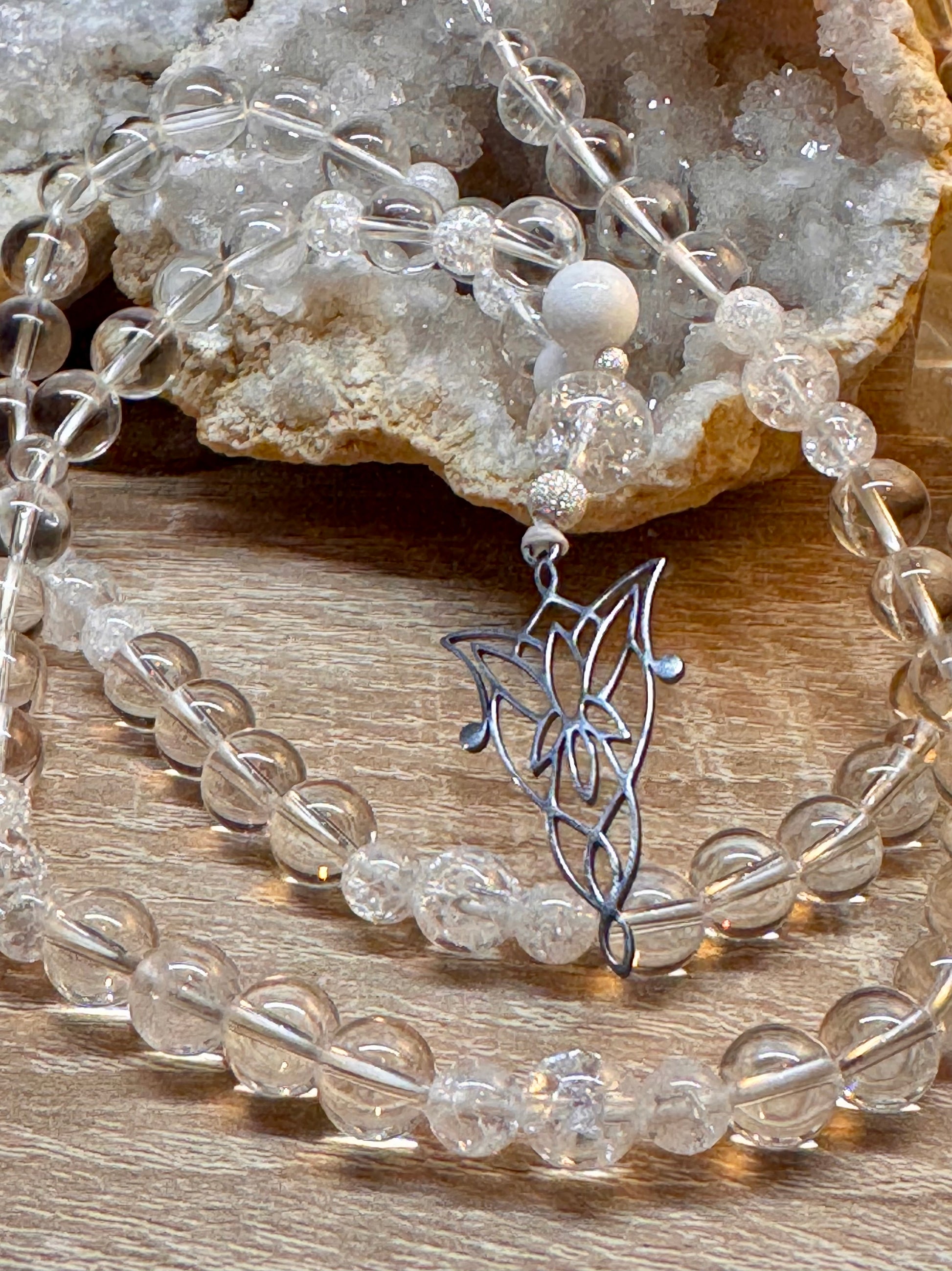 Collier cristal de roche / cristal de roche craquelé / quartz neige