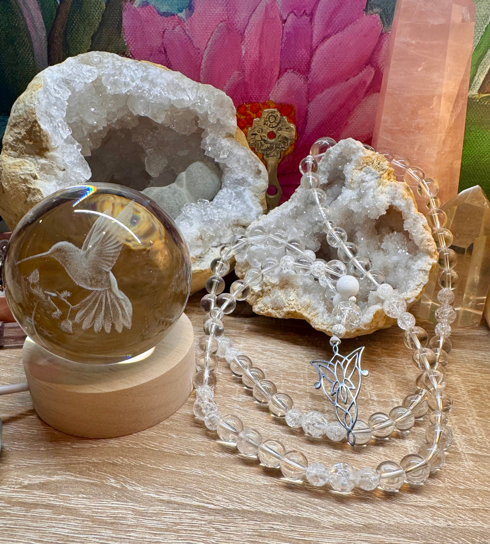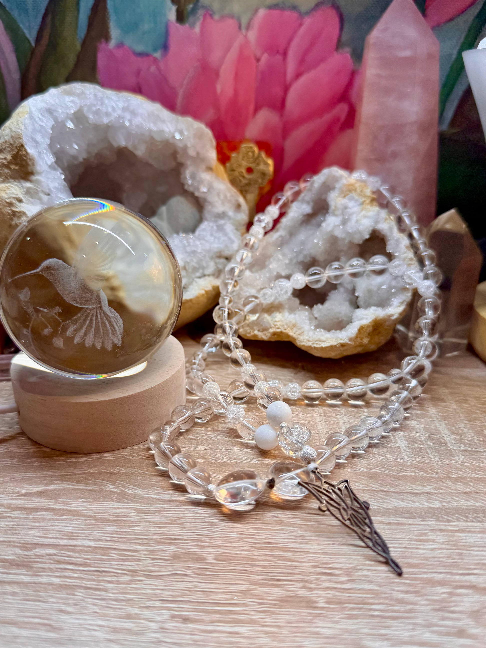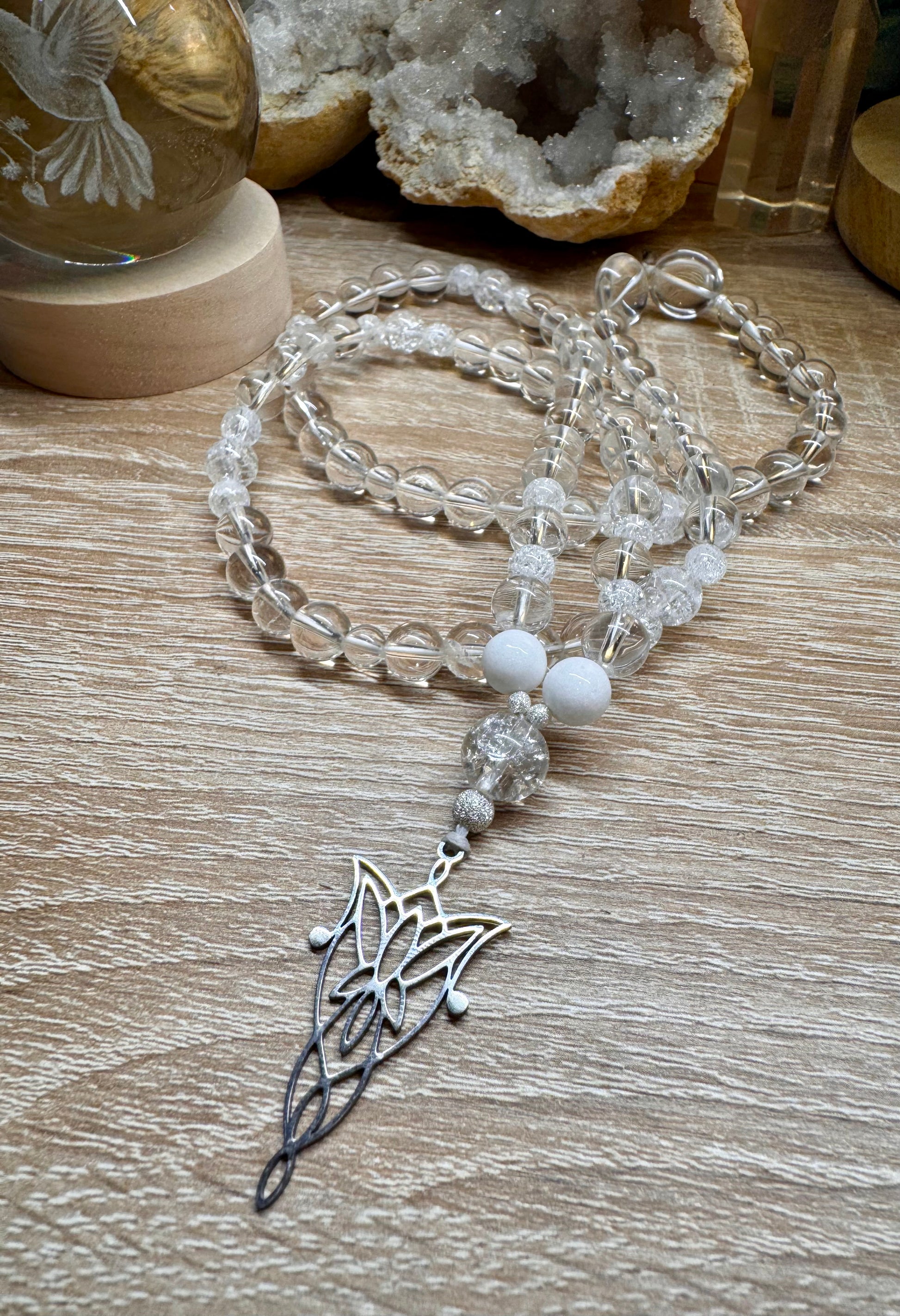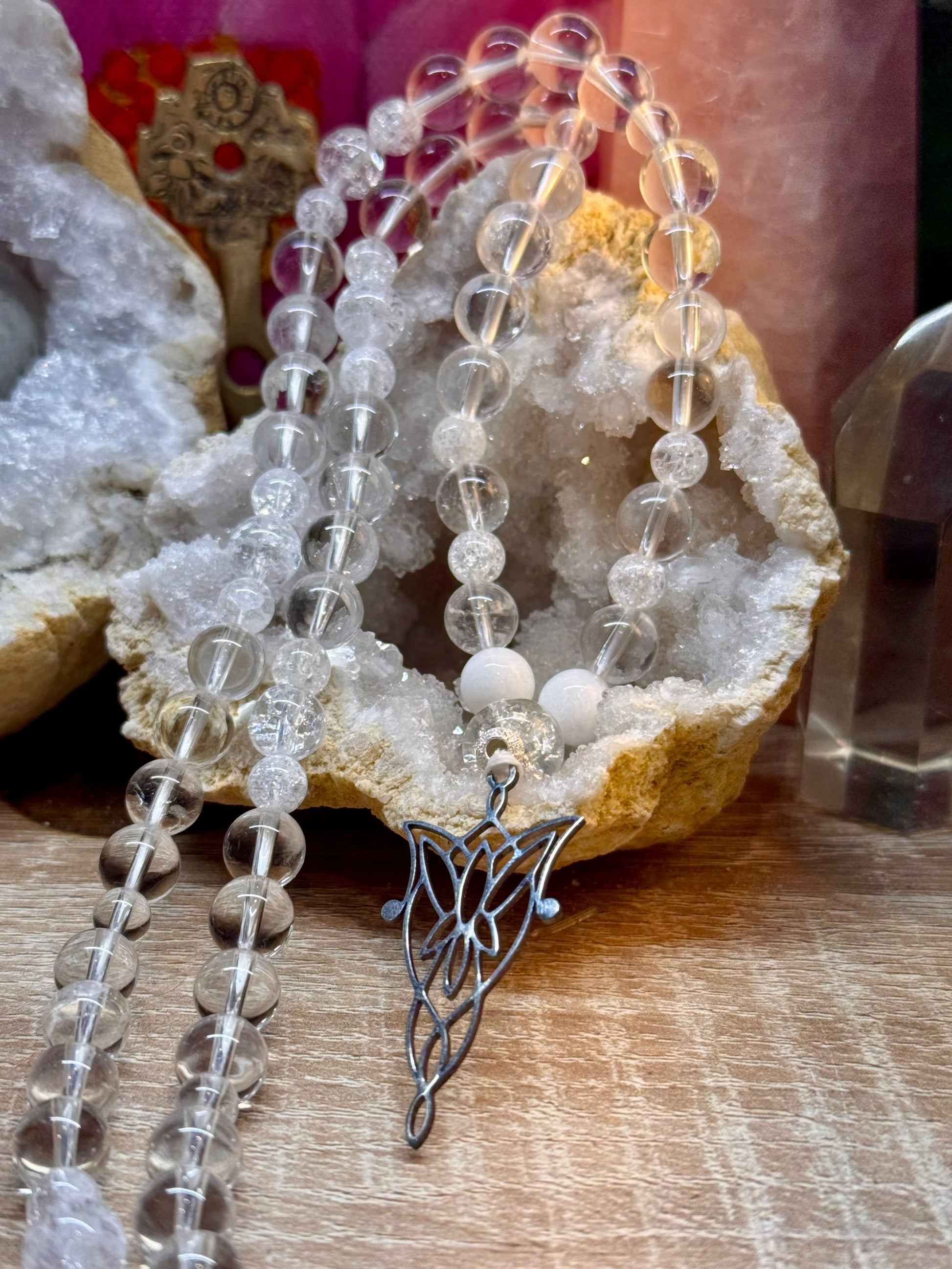 Collier cristal de roche / cristal de roche craquelé / quartz neige