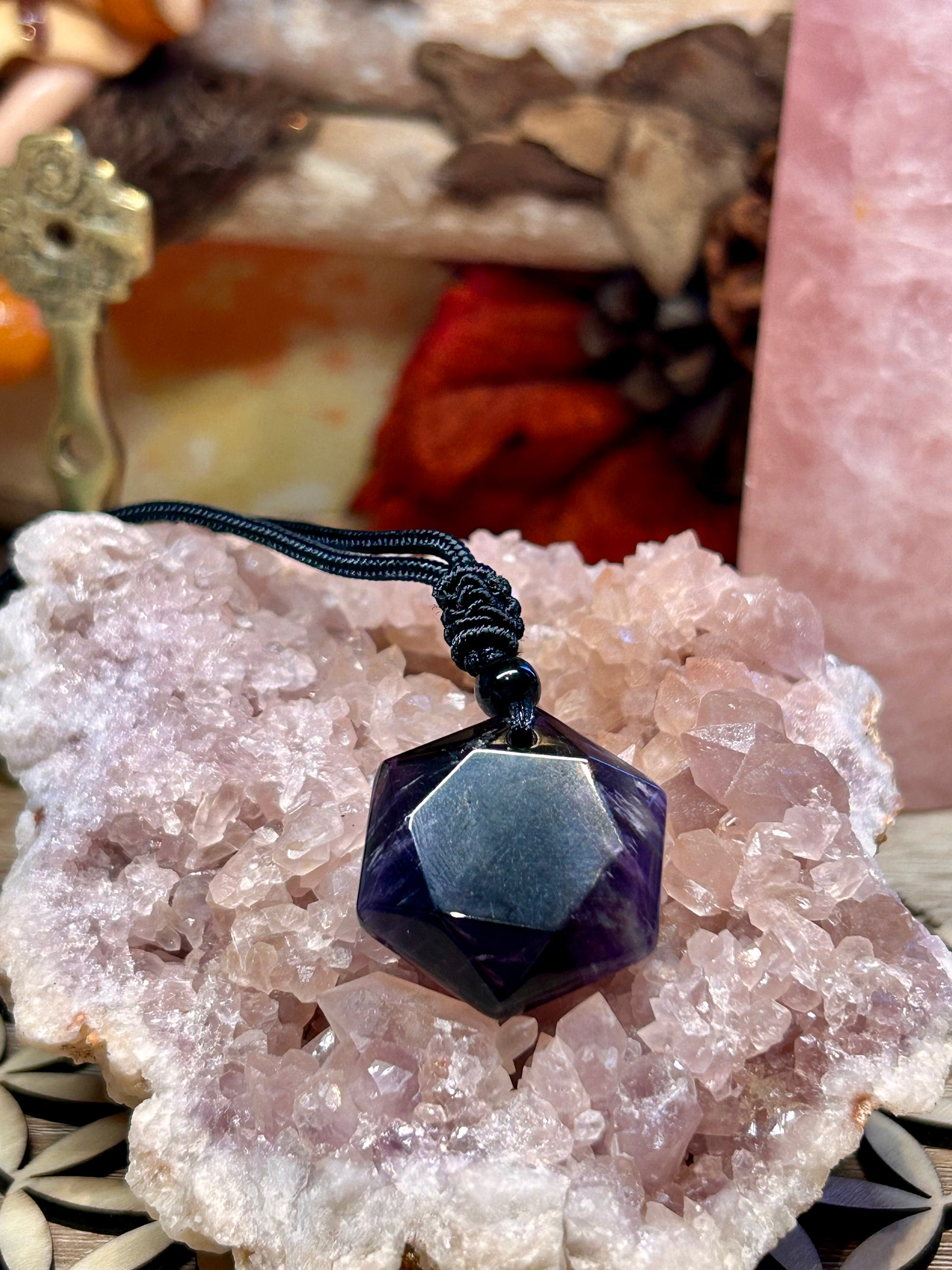 L’Améthyste, de son étymologie est la pierre qui préserve de l’ivresse, mais elle agit et nous protège de tous les excès (alcool, tabac, drogues, mais aussi dépendances psychologiques, obsessionelles, sexuelles). C’est une pierre qui a de nombreux bienfaits sur les problèmes d’addictions en général. Elle est un allié pour en sortir..
